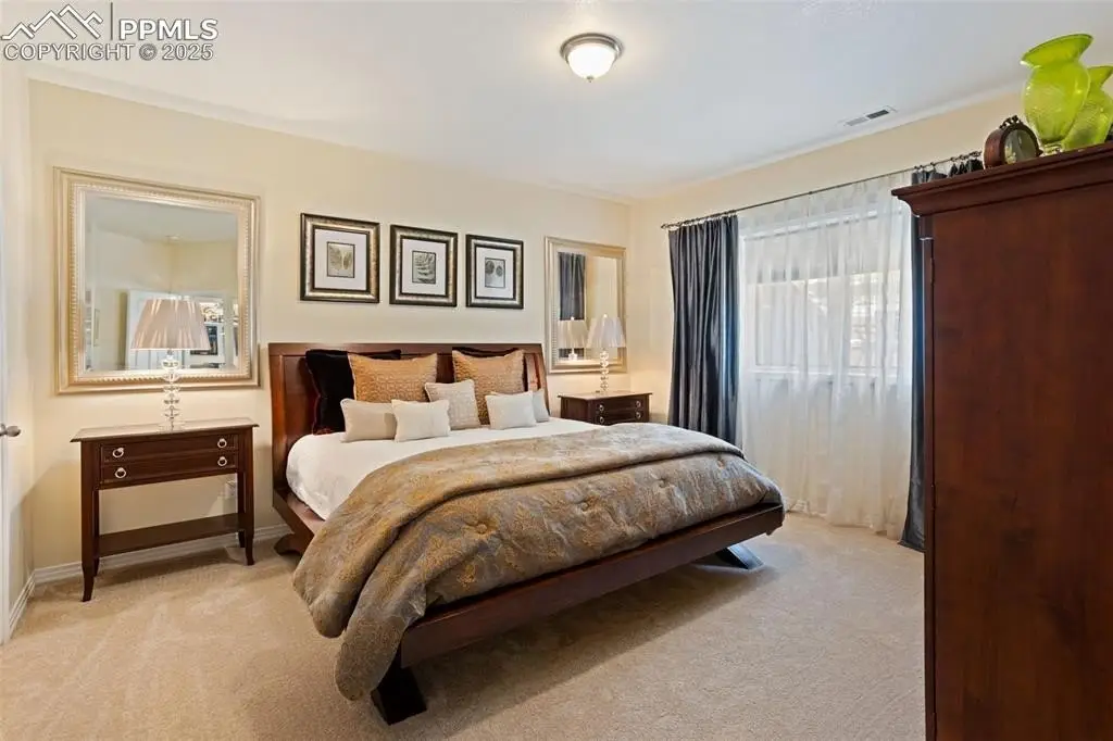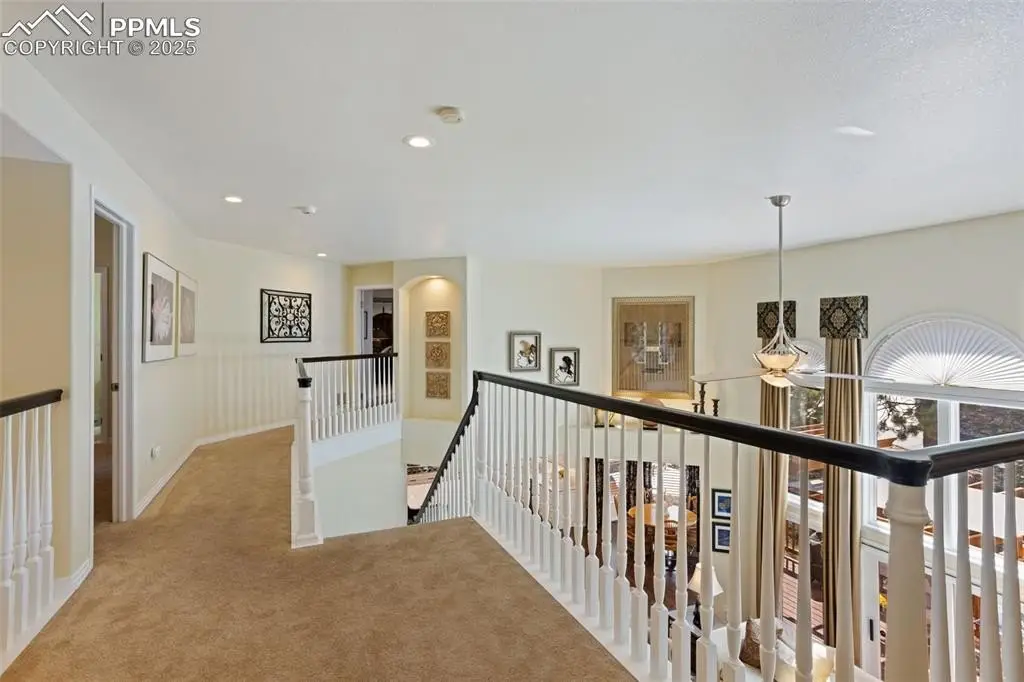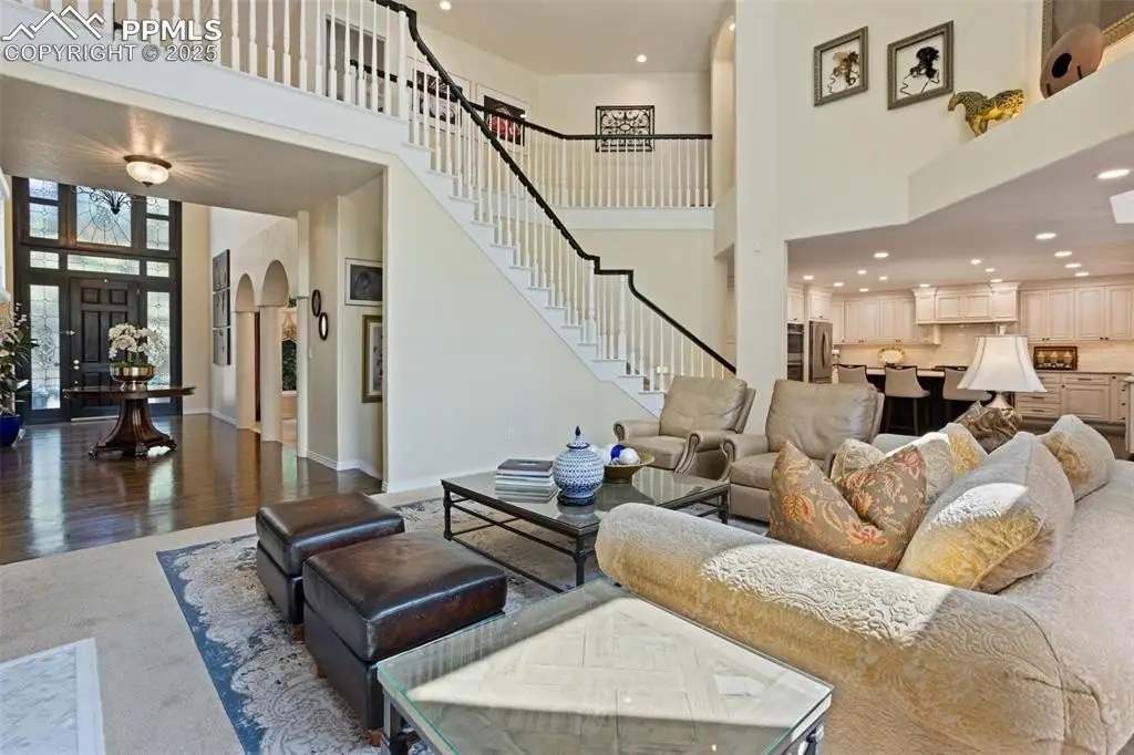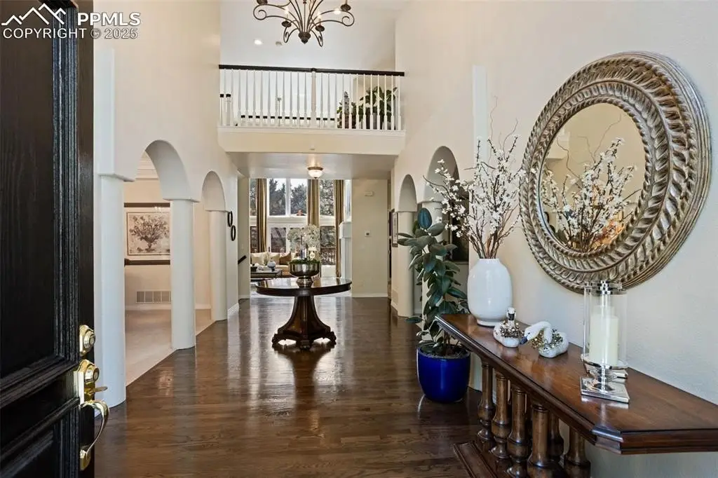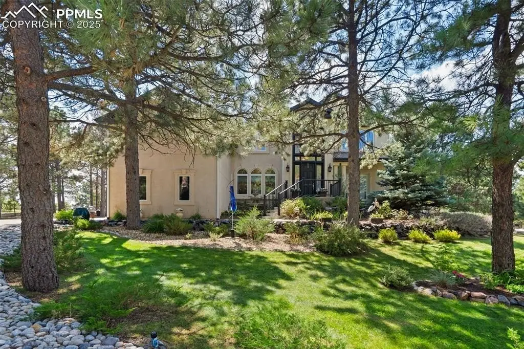 Impressive 2-Story Retreat on a private .76 Acre Lot! Welcome to this exceptional 2-story Woodmoor home, offering the perfect blend of luxury, privacy, and functionality. Nestled on a beautifully landscaped .76-acre treed lot, this residence showcases immaculate curb appeal and thoughtfully designed outdoor spaces, including two decks, a stand-alone entertaining deck, and a cozy fire pit area—all ideal for relaxing or hosting gatherings. Step inside to a majestic foyer with soaring ceilings and hardwood floors, setting the tone for the elegance throughout. The grand family room boasts floor-to-ceiling windows, flooding the space with natural light and serene views. The luxurious dining area flows seamlessly into the chef’s kitchen, which features an oversized uninterrupted island, stainless steel appliances, double ovens, a large gas range with custom hood, farm sink, quartz countertops, and decorative tile backsplash. The eat-in area walks out to a deck with a pergola, creating the perfect indoor-outdoor dining experience. A main-level office/bedroom adds flexibility, while the convenient garage entrance off the kitchen enhances everyday functionality. Upstairs, retreat to the primary suite, complete with a fully remodeled spa-inspired 5-piece bathroom and an enormous walk-in closet with custom built-ins. Three additional bedrooms and 2 full bathrooms complete the upper level. The finished basement expands your living space with a sprawling recreation room, pool table area, and access to a beautiful patio, perfect for entertaining. With central AC and countless updates, this home balances comfort and sophistication in every detail. Don’t miss this rare opportunity to own a private, beautifully appointed home designed for both grand entertaining and everyday living in Monument!