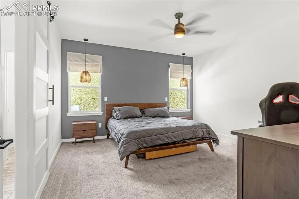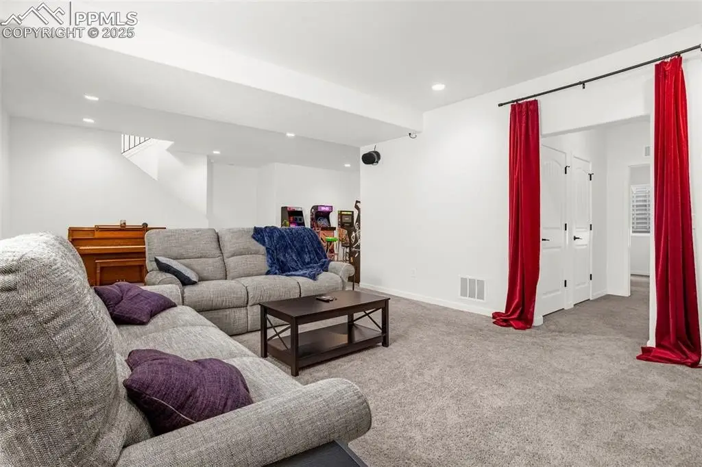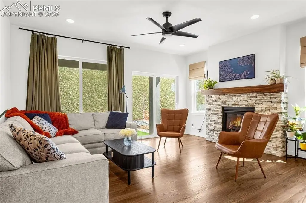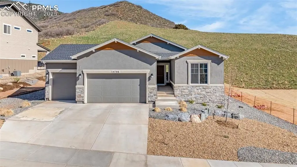 Welcome to this nearly new Sanibel II ranch-style home by Vantage Homes, located in the desirable Forest Lakes community. Built in July of 2024, this stunning property offers open-concept living with thoughtful upgrades added after construction for both comfort and style. The main level features a designer kitchen with an oversized island, abundant cabinetry, and seamless flow into the dining area and living room with a cozy fireplace. The upgraded laundry room includes a deep utility sink and custom cleaning pantry, and the main level also offers two bedrooms and two full bathrooms, including a spacious primary suite. The finished basement expands the living space with three additional bedrooms, a full bath, and a large rec room—perfect for entertaining, movie nights, or game tables. Post-construction upgrades include a built-in garage drop zone, elegant lighting fixtures, ceiling fans, central A/C, a hot tub with extended walkout patio, and a professionally landscaped yard with a smart irrigation system. Backing to open green space, the backyard offers privacy and a serene outdoor retreat. This home also enjoys the rare benefit of having only one neighbor, with the adjoining green space next door designated as open land that will not be built on. Forest Lakes residents enjoy private lake access, neighborhood hiking trails, and convenient I-25 access to Colorado Springs or Denver. Located in the top-rated Lewis-Palmer School District (D38), this home truly combines modern living, thoughtful design, and an unbeatable location.