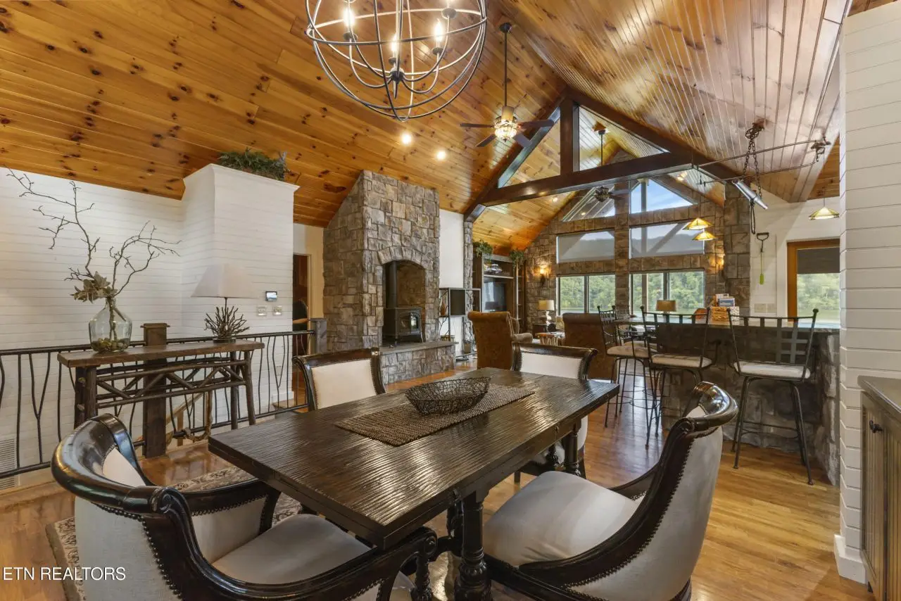 Welcome to 743 Jim Town Road - Nestled on the serene shores of Cherokee Lake, this one-of-a-kind retreat was masterfully crafted to be a true oasis. From the moment you enter, you're greeted by the warmth of natural textures and awe-inspiring lake views framed by soaring floor-to-ceiling windows. Exposed beams, intricate custom woodworking, built-ins throughout, and a wood stove fireplace create a sense of timeless comfort, elevated by modern ease like remote-controlled electric blinds. Step into the gourmet kitchen featuring chiseled, leathered granite, a Monogram series gas range, custom cabinetry, and a serving pantry complete with a sub-zero refrigerator, a refrigerator drawer and freezer drawer with ice machine, and walk in pantry, hidden by custom sliding doors. The main-level primary suite is a sanctuary with lake views that greet you each morning and a spa-like bathroom that invites you to slow down. Dual vanities, a walk-in shower with body jets, his-and-her closets, and a private dressing room complete the experience. Downstairs is ideal for guests, family, and playful escapes. A generous living area with a kitchenette/bar opens to a guest suite, a children's quarters fitted with custom bunk beds + a full bath, and a secret hideaway perfect for a playroom or bonus sleeping space. Step outside to discover your private lakefront lifestyle. Entertain on the screened porch or open-air deck. Unwind on the lower-level covered patio with a hot tub and gather around the stone fire pit under starlit skies. With 288' of pristine shoreline, your floating dock powered by solar energy, boat lift and jet ski port is waiting on you. A detached two-level garage provides generous space to house cars, toys, and gadgets. Other improvements include a back-up generator, newer roof (2021), and manicured landscaping. A home of this caliber is rarely offered and difficult to replicate. Every detail speaks to thoughtful design and expert craftsmanship. 743 Jim Town Road is truly a remarkable lakefront retreat - one that must be seen to be fully appreciated. Give me a call today to schedule a private tour.