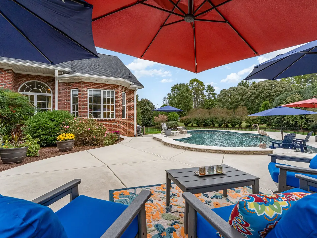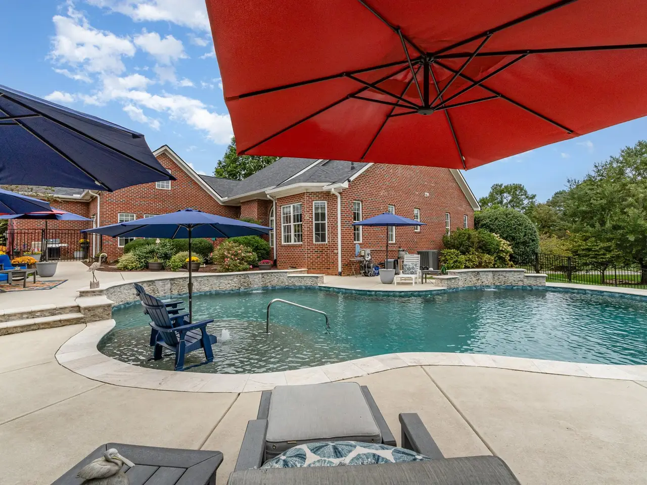 Discover your private Lake Norman retreat! This beautiful 4BR/2BA all-brick ranch sits on nearly 1.4 acres with peaceful lake views, a brand-new resort-style pool with waterfalls and lighting, and your own deeded boat slip just moments away. Designed for entertaining, the home features a bright open floor plan, soaring ceilings, floor to ceiling stone fireplace is oversized great room, relax in the sunroom overlooking the pool, and enjoy multiple patios for outdoor living. The kitchen shines with quartz countertops, a gas stove, walk-in pantry, and sunny breakfast nook. The primary suite offers a spa-like bath with dual closets, soaking tub, and oversized shower. Enjoy quiet mornings watching deer roam your garden or evenings by the pool under the soft glow of landscape lighting. With two upstairs bonus rooms for future expansion, this home combines everyday comfort with endless possibilities.Experience lake living at its best space, privacy, and style all in one. Call today to schedule your private showing. Homes like this rarely come available in this sought-after Lake Norman community!