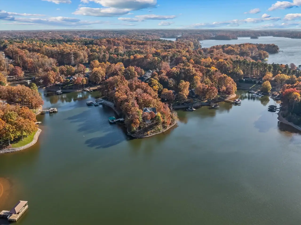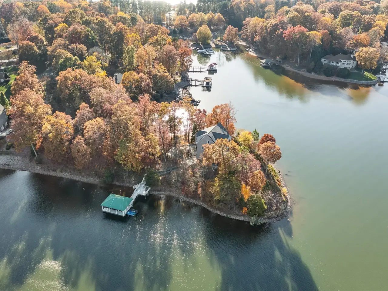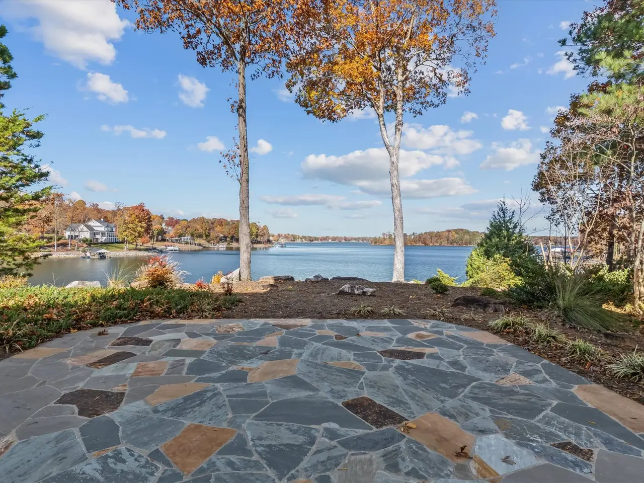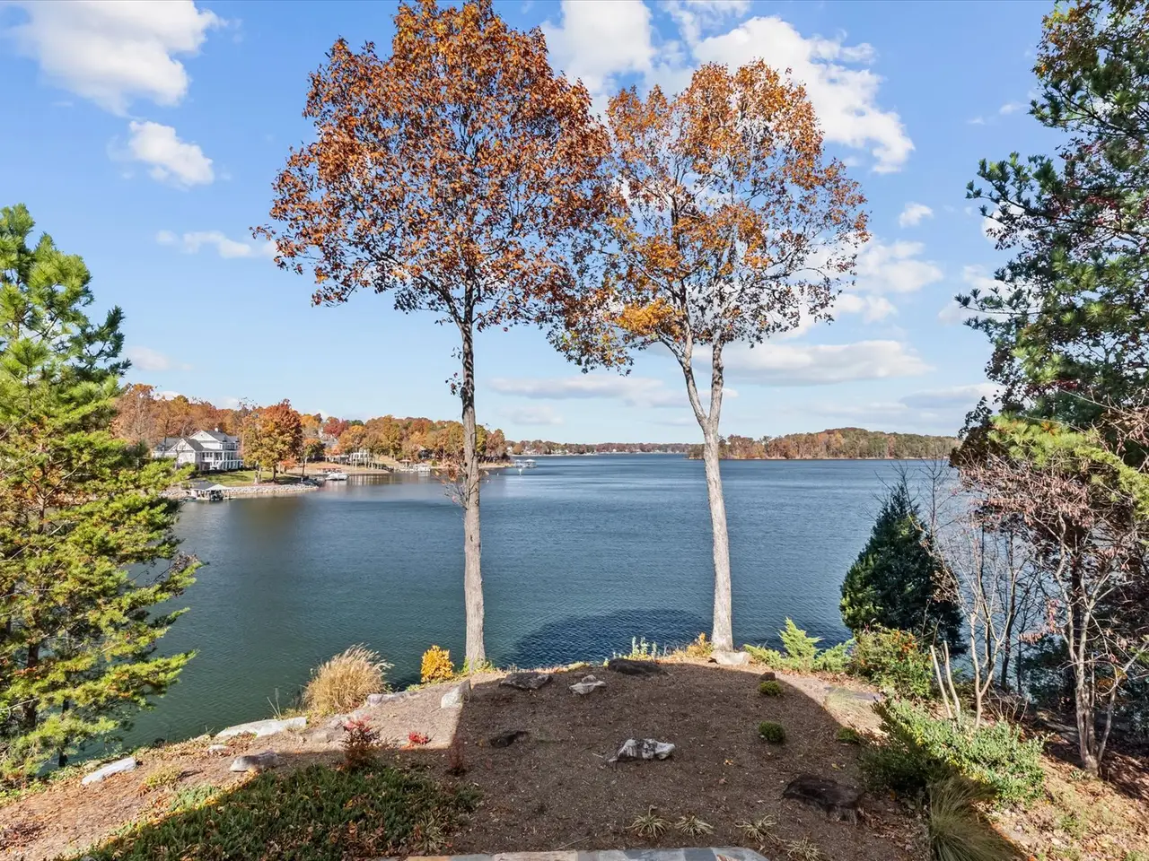 Discover unparalleled privacy and natural splendor on Lake Norman! Boasting an exceptional 875 feet of pristine waterfront shoreline on over 1.5 private acres, this property is a true gem offering views and seclusion that are unparalleled. A private natural sanctuary, the land itself is a nature lover's paradise. Nestled under a mature canopy of hardwood trees where vibrant colors and wildlife abounds with Osprey and Herons, it is a birdwatcher's dream. The unique, manicured landscape features exquisite rock boulders, beautiful fountains, and an artificial waterfall whose soothing sounds flow into the lake, enhancing the tranquil experience. The deep-water cove is large and protected, providing ideal conditions for floating and swimming while offering an unobstructed view north towards the main channel. The mid-lake location provides easy access to both the northern and southern ends of Lake Norman, as well as a short ride to popular waterfront restaurants and bars. The custom, full brick home complements its setting with quality and thoughtful design. Inside, you'll find an abundance of natural light, with not a stitch of carpet - only luxurious tile and hardwoods throughout. The home features Pella windows and doors, amazing rear flagstone patio and covered porches, perfect for taking in the stunning views. The open concept living space features split ensuite bedrooms on the main level, an additional bedroom on the second, and a magnificent primary suite retreat spanning the entire floor. This private haven includes a spa-like bath, a huge custom walk-in closet, an office, and its own private porch. The kitchen is fully equipped with a pull-up eating bar, a center prep island, roll-out cabinets, granite countertops, a tile backsplash, and stainless steel appliances. Practical additions include a two-car detached garage offering endless opportunities for the "handyman at heart," complete with unfinished storage space above (accessible by stairs). All three HVAC systems were replaced in May of 2023. Ideal primary home or secondary lake home, it can be offered furnished if desired. Come and experience your own piece of land and lake paradise.