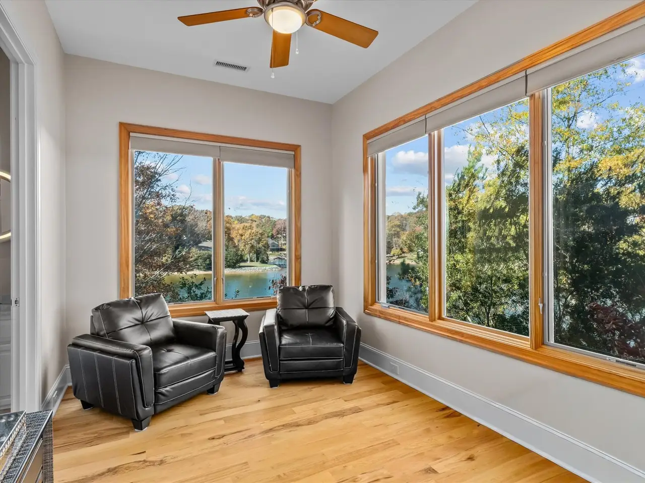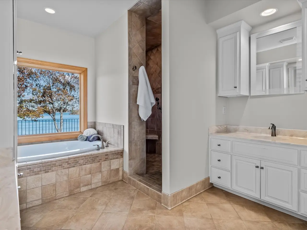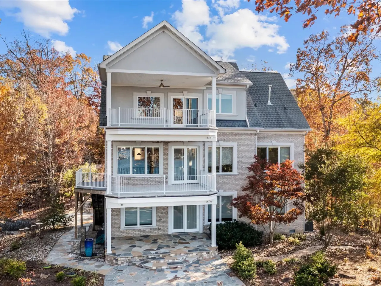 Discover unparalleled privacy and natural splendor on Lake Norman! Boasting an exceptional 875 feet of pristine waterfront shoreline on over 1.5 private acres, this property is a true gem offering views and seclusion that are unparalleled. A private natural sanctuary, the land itself is a nature lover's paradise. Nestled under a mature canopy of hardwood trees where vibrant colors and wildlife abounds with Osprey and Herons, it is a birdwatcher's dream. The unique, manicured landscape features exquisite rock boulders, beautiful fountains, and an artificial waterfall whose soothing sounds flow into the lake, enhancing the tranquil experience. The deep-water cove is large and protected, providing ideal conditions for floating and swimming while offering an unobstructed view north towards the main channel. The mid-lake location provides easy access to both the northern and southern ends of Lake Norman, as well as a short ride to popular waterfront restaurants and bars. The custom, full brick home complements its setting with quality and thoughtful design. Inside, you'll find an abundance of natural light, with not a stitch of carpet - only luxurious tile and hardwoods throughout. The home features Pella windows and doors, amazing rear flagstone patio and covered porches, perfect for taking in the stunning views. The open concept living space features split ensuite bedrooms on the main level, an additional bedroom on the second, and a magnificent primary suite retreat spanning the entire floor. This private haven includes a spa-like bath, a huge custom walk-in closet, an office, and its own private porch. The kitchen is fully equipped with a pull-up eating bar, a center prep island, roll-out cabinets, granite countertops, a tile backsplash, and stainless steel appliances. Practical additions include a two-car detached garage offering endless opportunities for the "handyman at heart," complete with unfinished storage space above (accessible by stairs). All three HVAC systems were replaced in May of 2023. Ideal primary home or secondary lake home, it can be offered furnished if desired. Come and experience your own piece of land and lake paradise.