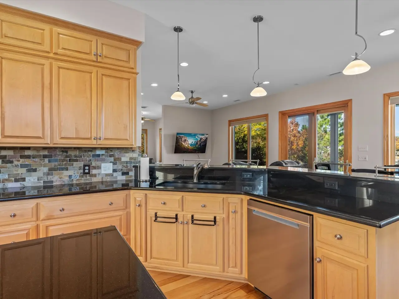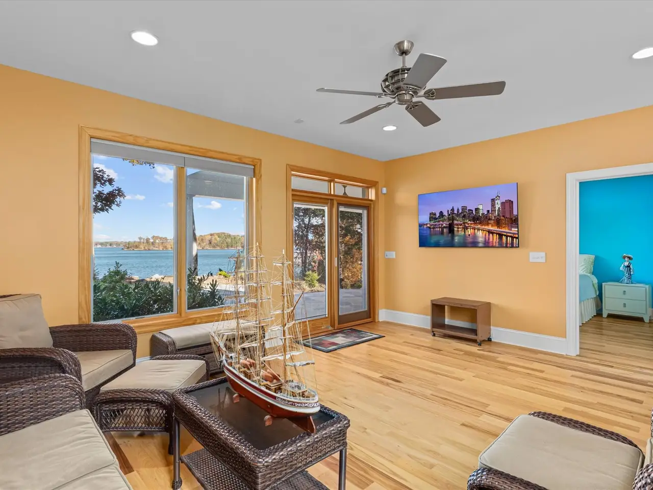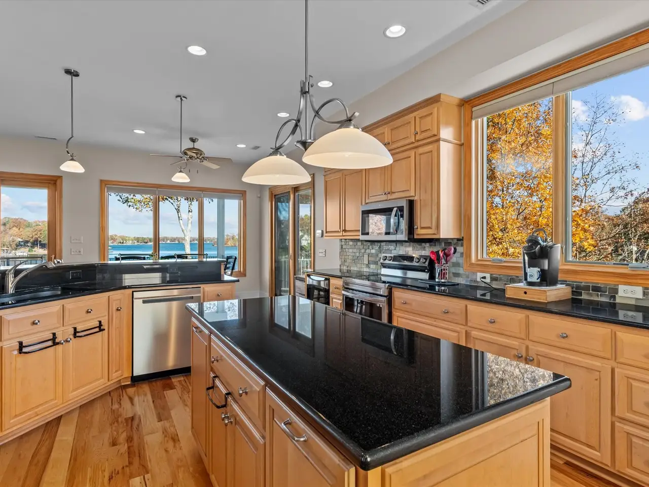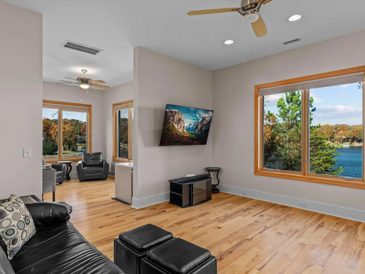 Discover unparalleled privacy and natural splendor on Lake Norman! Boasting an exceptional 875 feet of pristine waterfront shoreline on over 1.5 private acres, this property is a true gem offering views and seclusion that are unparalleled. A private natural sanctuary, the land itself is a nature lover's paradise. Nestled under a mature canopy of hardwood trees where vibrant colors and wildlife abounds with Osprey and Herons, it is a birdwatcher's dream. The unique, manicured landscape features exquisite rock boulders, beautiful fountains, and an artificial waterfall whose soothing sounds flow into the lake, enhancing the tranquil experience. The deep-water cove is large and protected, providing ideal conditions for floating and swimming while offering an unobstructed view north towards the main channel. The mid-lake location provides easy access to both the northern and southern ends of Lake Norman, as well as a short ride to popular waterfront restaurants and bars. The custom, full brick home complements its setting with quality and thoughtful design. Inside, you'll find an abundance of natural light, with not a stitch of carpet - only luxurious tile and hardwoods throughout. The home features Pella windows and doors, amazing rear flagstone patio and covered porches, perfect for taking in the stunning views. The open concept living space features split ensuite bedrooms on the main level, an additional bedroom on the second, and a magnificent primary suite retreat spanning the entire floor. This private haven includes a spa-like bath, a huge custom walk-in closet, an office, and its own private porch. The kitchen is fully equipped with a pull-up eating bar, a center prep island, roll-out cabinets, granite countertops, a tile backsplash, and stainless steel appliances. Practical additions include a two-car detached garage offering endless opportunities for the "handyman at heart," complete with unfinished storage space above (accessible by stairs). All three HVAC systems were replaced in May of 2023. Ideal primary home or secondary lake home, it can be offered furnished if desired. Come and experience your own piece of land and lake paradise.