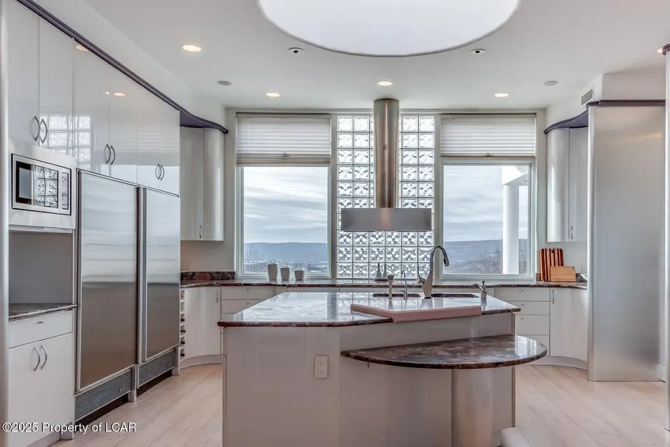 This striking three-story, 7000+ square foot residence is thoughtfully situated in a serene 2+ acre setting and architecturally designed to provide both privacy and spectacular views. Impressive bronze doors and a soaring two-story wall of windows set the tone. Glass, plaster and steel sculpt unique living areas throughout the spacious light filled home. The exceptional kitchen features one of several large cylindrical skylights. A remarkably engineered spiral staircase winds to the bedrooms, a large gallery and an adjacent office area with expansive granite countertops. An elevator is conveniently located at the north end of the hallways. Multiple balconies extend the living space and offer additional views of Glenmaura golf course and exquisite vistas. The residence and pool area are surrounded by mature landscaping, natural stone and native rock walls. The home is quietly magnificent.