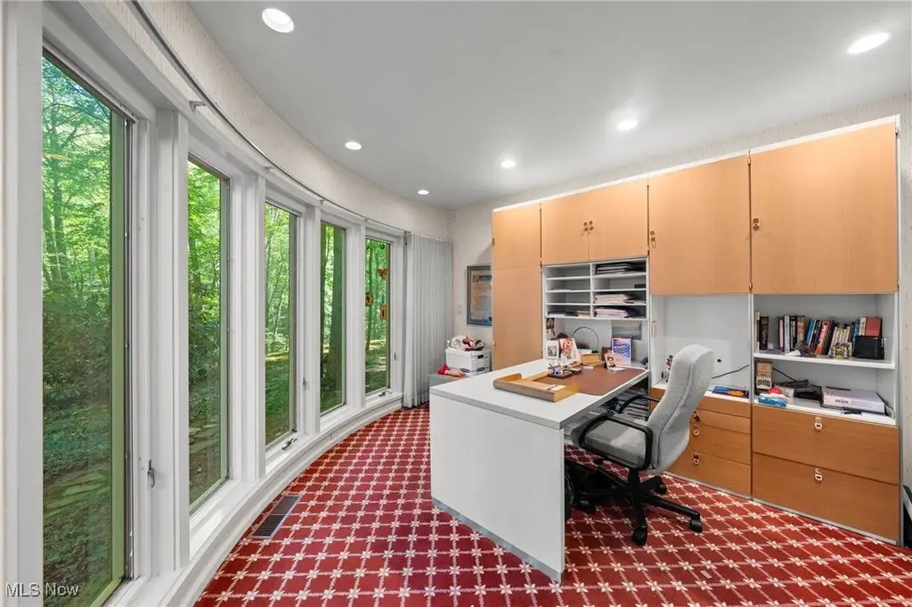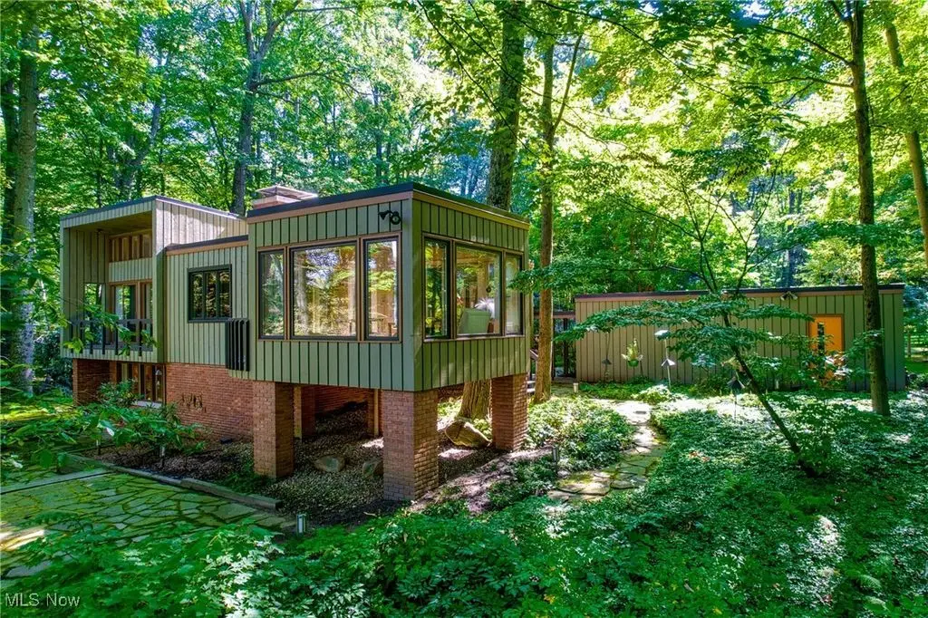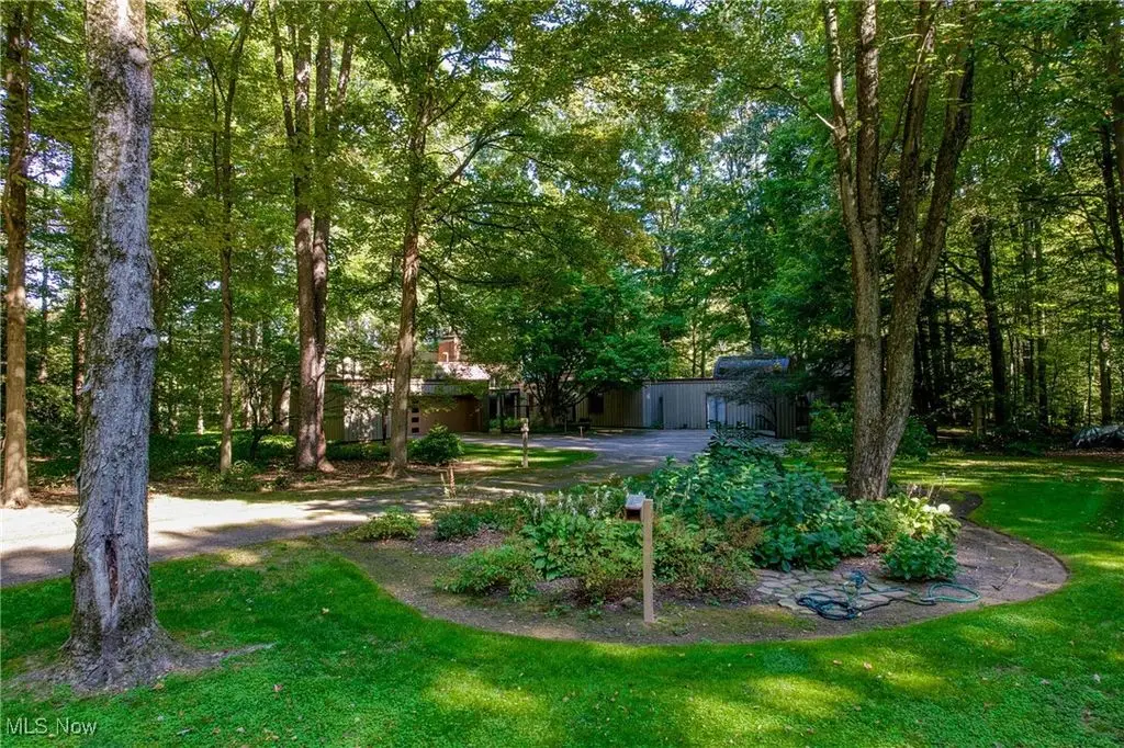 This is a unique and remarkable home located on the most breathtaking 7+ acre site offering total privacy in a wooded wonderland! The mid-century modern design is truly spectacular and the house is perfect for someone looking for an expansive floor plan coupled with the desire to showcase their artwork. This house blends into the natural setting perfectly and every room takes advantage of the glorious views and exceptional natural beauty! A gallery entry foyer sets the stage for this home and a few steps up lead to the main living area which flows seamlessly! Entertain in the fabulous great room, grand formal dining room, or relax in the glass walled den! There is even a finished walkout lower level family room with walk-in wet bar which is an additional and exciting living space. There are 3 bedrooms off of the main gallery which lead to the most luxurious owner's suite. This incredible wing features a gorgeous bedroom, two separate bathroom areas, an attached glass walled spa area, and two walk-in dressing rooms. Located on the cul de sac with a long private driveway, this is truly one of the most unique and special homes in Chagrin Falls!