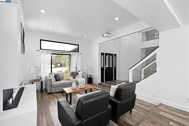 Nestled in a cul-de-sac within the NW quadrant of Morgan Hill. This updated home offers luxury, comfort, and style. Step inside to soaring ceilings and a custom glass staircase that sets the tone for this contemporary showpiece. The open floor plan features, a beautifully remodeled fireplace in the formal living room, with an adjacent formal dining area. Family room and kitchen are a true standout, equipped with Sub-Zero and Wolf appliances, porcelain countertops, full backsplash, and modern shaker cabinetry. Family room views of yard through sleek stacking doors that seamlessly blend indoor and outdoor living. 1 bedroom and a full bath located downstairs, the layout is ideal for guests or multi-generational living. Upstairs, you'll find three spacious bedrooms and two full baths. The primary suite includes a fireplace, walk-in closet, and a spa-inspired bath with a jetted tub surrounded by windows—ideal for relaxation. Enjoy year-round outdoor living in the beautifully landscaped backyard featuring a large covered patio, expansive lawn, custom planter boxes for gardening, and ample space for entertaining. Newer roof, New windows, water softener, Owned Solar System for energy efficiency. Just minutes to charming Downtown Morgan Hill, parks, and award-wining schools.