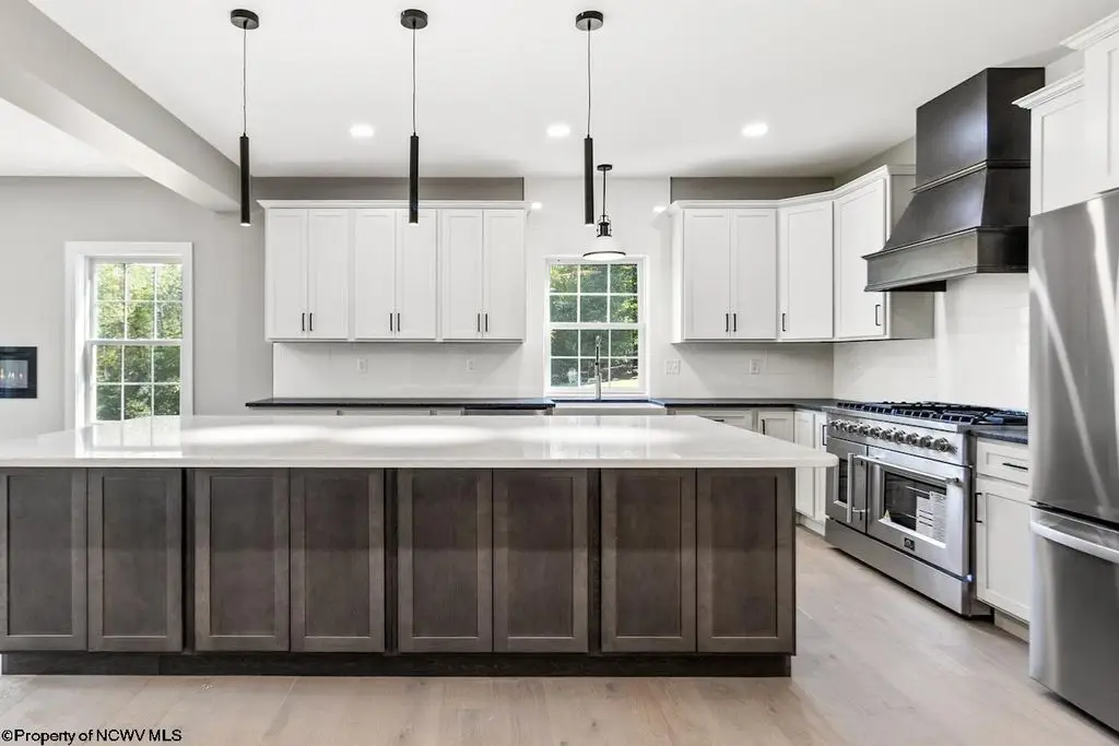 Perfectly positioned at the end of a quiet road overlooking the HOA ponds and adjacent greenspace. Stunning kitchen features an expansive center island, a two-toned designer color scheme, quartz and leathered granite counters, a 48-inch eight-burner range with griddle and an oversized pantry. Enjoy the open layout, dual laundry rooms, and a luxurious main-floor primary suite with a freestanding tub and full tile shower. Upstairs includes three guest rooms and a loft. Additional highlights include a three-car garage, covered Trex deck with gas hook-up, hardwired security system and an ultra-spacious finished W/O basement offering endless possibilities.