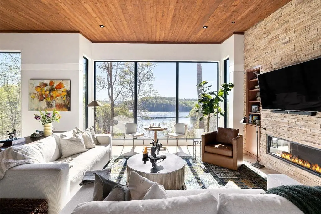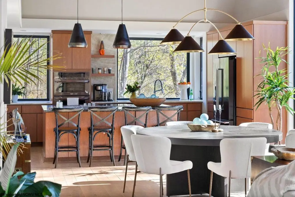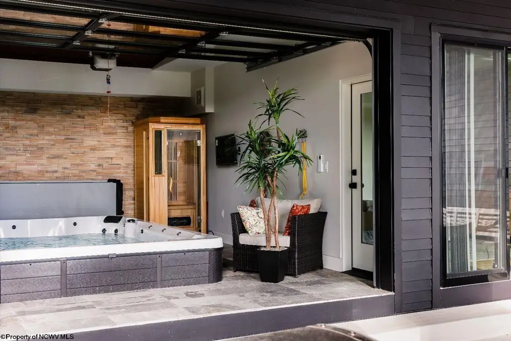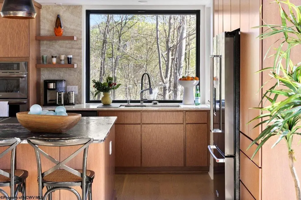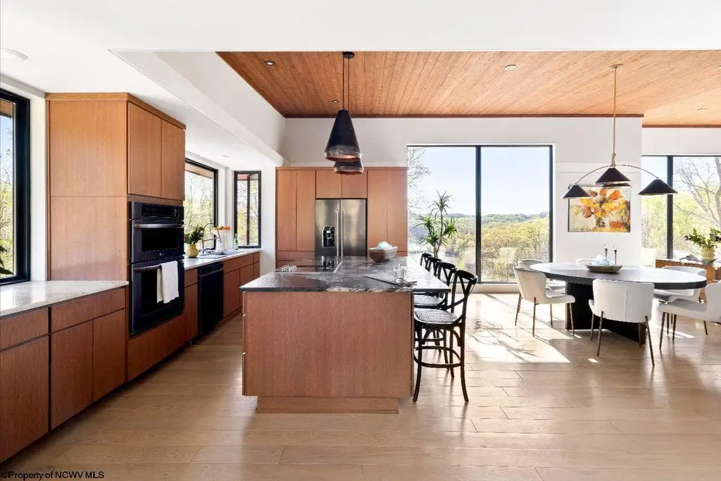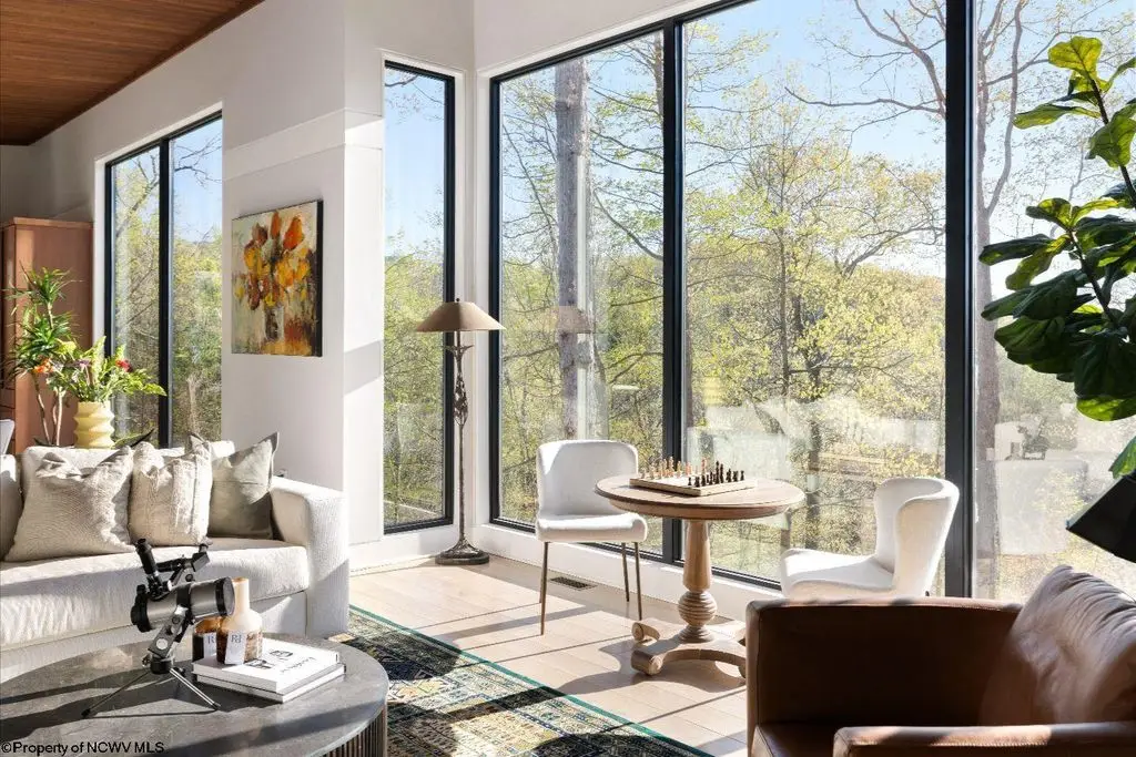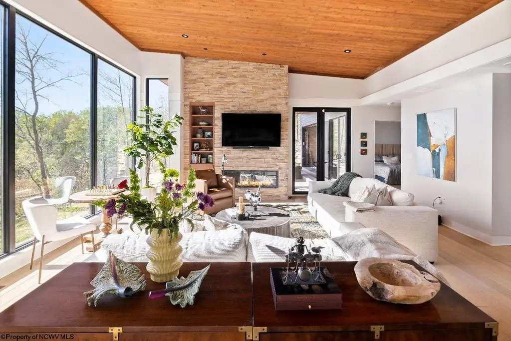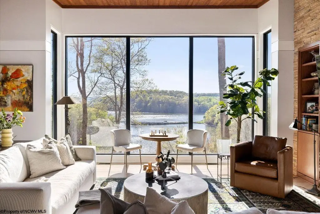 Enjoy resort-style living with tranquil, panoramic views of Cheat Lake and the Coopers Rock mountains. Built in harmony with the landscape, this architectural Gem makes use of stone and wood in a striking design that brings the outside in. The open-concept great room includes a modern, floor-to- ceiling stone fireplace, an ample dining area and a cook's kitchen appointed with Brazilian quartz surfaces, a substantial island, sleek custom cabinetry and built-in appliances. The wood ceiling exudes warmth and extends to the covered patio, which overlooks the lake and connects with the great room through a pair of glass doors. A luxurious retreat, the primary bedroom suite benefits from a wall of glass opening to the patio and direct access to a fabulous personal spa complete with sauna and Cal Spas swim spa. An all-glass overhead door encloses or opens the area for year- round enjoyment. Complete with generous accommodations for guests, additional amenities include solar panels, a pet washing station and a lower-level game room. Encompassing 1.84 +/- acres of partially wooded land, the property features an upper-level 35 x 75 multi-sport graded and landscaped area. For boating enthusiasts, one boat slip conveys with the property. Nearby recreational opportunities include kayaking, hiking, biking, golf, tennis and pickleball. This standout residence was designed by acclaimed architect Justin Cipriani, who has completed notable projects in Colorado and California. His awards include Best of Houzz Winner, 2020-2024, and Pittsburgh Magazine's Best Architect.