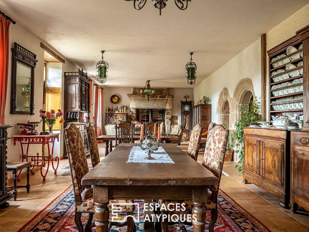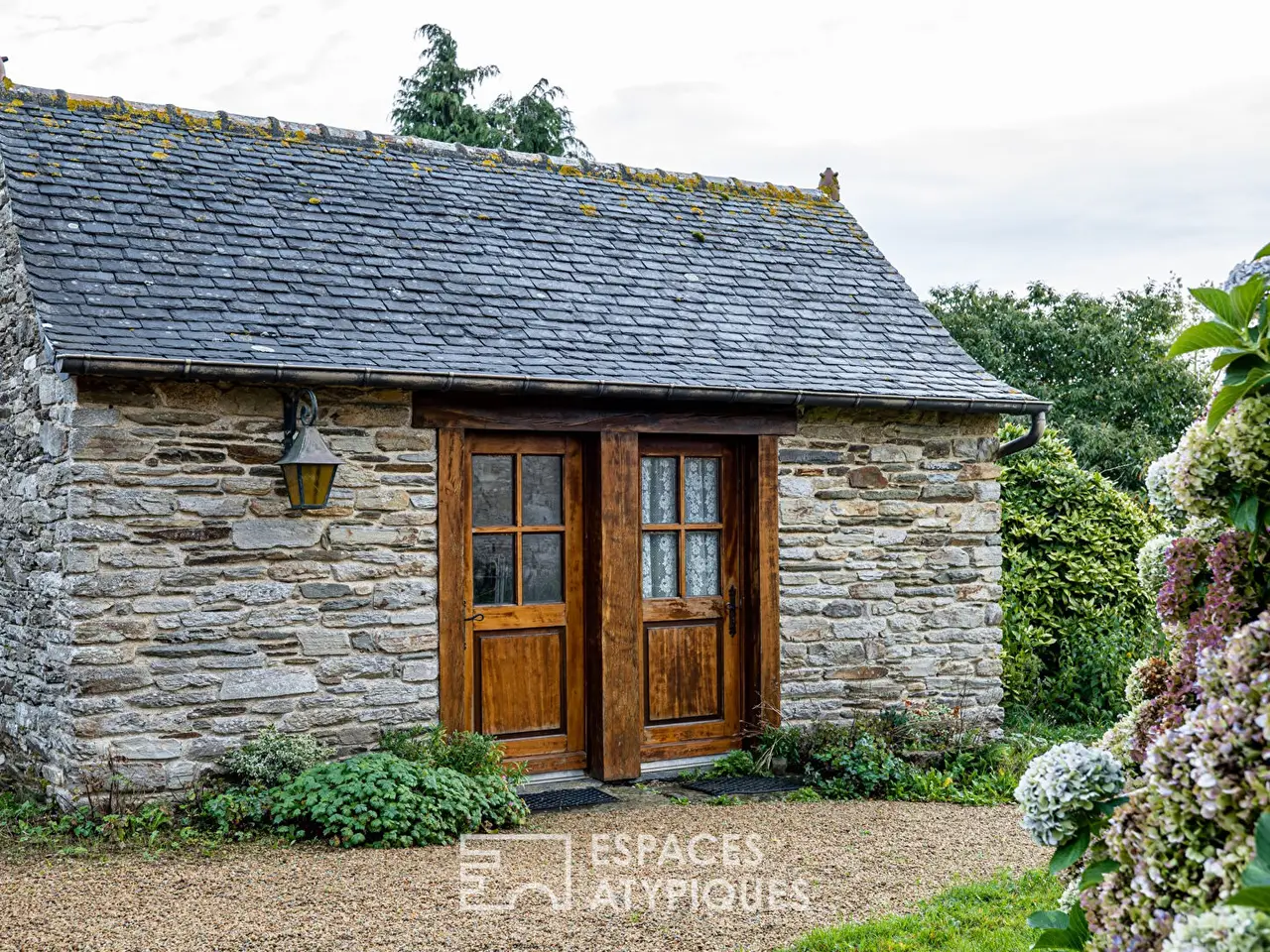 A unique place full of history, this elegant Breton manor, made of schist stone, nestles in a small hamlet of character, a true haven of peace, 10 minutes from the town of Morlaix and only 15 minutes from the beaches. The property offers a sumptuous manor with its 5 guest rooms, accompanied by 4 independent gites of character, one of which is adapted for people with reduced mobility. Immediately usable, these gites represent a strong rental potential. Below the property, two residential houses generate a stable annual income of EUR13,800. This true architectural gem of 794 m2, and built on a beautiful park of 17,000 m2, nicely planted with deciduous trees and fruit trees. For lovers of old stones and curious about space and greenery, this property seduces with its old-world charm and surprises with its preserved character. The bucolic garden, with its pond, its restored washhouse, its three wells, is just as remarkable both for the diversity of the trees it showcases and for its preserved side, with several spaces dedicated to rest and relaxation. Tastefully renovated, respecting the authenticity with its square tower, its beautiful local slate roofs, its pedimented dormers, its ridge finials, this property offers beautiful amenities. Many period features such as the many monumental fireplaces, the sublime spiral staircase in pink granite, the arched doors, the large slate slabs, bread oven, give this property a timeless character. On the north side, the manor has kept its 16th century architecture intact. The south side, meanwhile, reveals its facade reworked in 1861, and displays a beautiful Malouiniere appearance with its high windows. Deploying all its assets over a surface area of 360 m2, on three levels, the manor presents all the charm and robustness of the era where the thickness of the walls or the height under the ceiling have volumes outside the standard. The main entrance is covered with large slabs of schist, the living spaces are discovered at first glance: a majestic living room composed of a vast dining room, a living room with its stove, with direct access to the park, for moments of peace and quiet. For the greatest pleasure of the eyes, but also in terms of insulation and acoustics, the walls are coated with lime-hemp. In continuity, the kitchen declines the softness to maintain the family spirit. Its GAUDIN piano cooker, will delight epicureans in search of culinary pleasures. By a sumptuous spiral staircase in pink granite, the night area accommodates seven bedrooms with private bathrooms. A large hangar in perfect condition of 150 m2, a laundry room complete the services of this atypical property. The manor with its lodgings in its bucolic park, exudes an atmosphere full of tranquility and serenity which invites contemplation. Lovers of old stones and noble materials will find in this place a source of inspiration for their projects: tables, guest rooms, reception venues or for an accommodation project. ENERGY CLASS: E / CLIMATE CLASS: B Estimated average amount of annual energy expenditure for standard use, established from energy prices for the year 2022: between EUR1,280 and EUR1,780. REF. 1535EAF Additional information * 30 rooms * 21 bedrooms * 16 shower rooms * Floor : 4 * Outdoor space : 17000 SQM * Parking : 11 parking spaces * Property tax : 4 989 € Energy Performance Certificate Primary energy consumption e : 281 kWh/m2.an High performance housing