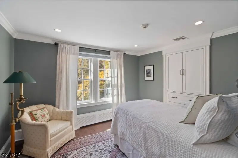 Welcome to classic Town and Country living in Morris Township's beautiful Washington Valley. Originally built in 1887 and thoughtfully expanded over the years, this home blends timeless farmhouse character with the comfort and function today's lifestyle demands.The moment you step inside, the warmth of the house hits you, sunlight pouring in, views from every angle, and that unmistakable "weekend at a country inn feeling. The kitchen features a large wood-topped island, timeless cabinetry, high-end appliances, and a cozy breakfast nook. The main house offers four bedrooms, and above the heated garage, you'll find a separate bedroom and full bath ideal for a private guest suite, home office, or creative studio.Throughout the home, you'll find wide-plank floors, beamed ceilings, detailed moldings, and all the charm you'd expect from a vintage farmhouse. Recent upgrades bring it firmly into the modern age: a high-efficiency Navien boiler, smart-home alerts, updated security system, automatic main water shutoff, and a whole-house natural-gas generator. Even a wine storage room! Nearly every rear window frames sweeping lawns, mature trees, and a serene stream that leads to a large pond perfect for quiet mornings on the dock or casting a line in the afternoon. A bluestone patio with a two-sided fireplace completes the outdoor experience. All this, just under a five-mile jaunt to downtown Morristown's dining, shopping, and Midtown Direct train.Timeless character, one-of-a-kind setting.