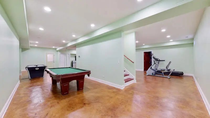 Welcome to this stately custom brick home, where timeless craftsmanship meets modern comfort. A dramatic two-story foyer with custom chandelier sets the impressive tone, opening to an exceptional floor plan designed for everyday living and effortless entertaining. The spacious living and dining rooms flow into a stunning family room featuring vaulted ceilings, a cozy gas fireplace, and direct access to the outdoor entertaining space. At the heart of the home is the chef's kitchen, complete with custom white cabinetry, quartz countertops, stainless steel appliances, a center island with breakfast bar, and a convenient butler's pantry. Perfect for hosting or enjoying a quiet morning coffee, this space is both beautiful and highly functional. The first-floor primary suite offers a luxurious private retreat with dual walk-in closets and a spa-inspired ensuite with double vanities, a soaking tub, and an oversized shower. A second main-level bedroom adds ideal flexibility for guests, a home office, or playroom. Upstairs, three generously sized bedrooms each offer their own updated ensuite bath, walk-in closet, and access to additional storage. The fully finished basement enhances your living space with a large recreation room, home theater, and a private bedroom with full bath-perfect for teens, in-laws, or long-term guests. Outside, enjoy an oversized lot complete with a patio and basketball court, plus a two-car attached garage and an additional detached two-car garage. Ideally located near top-rated schools, shopping, dining, and more, this exceptional home truly has it all.