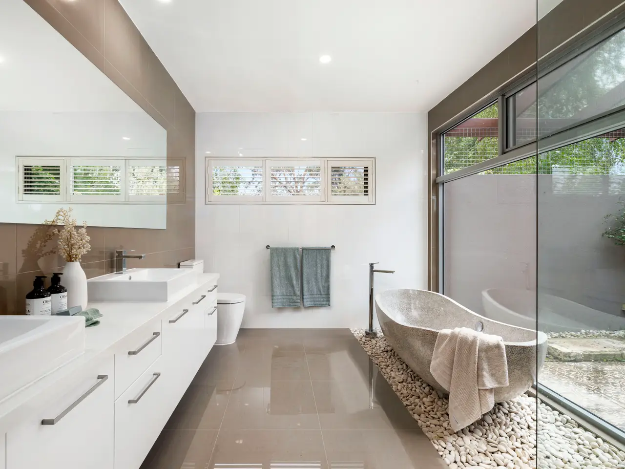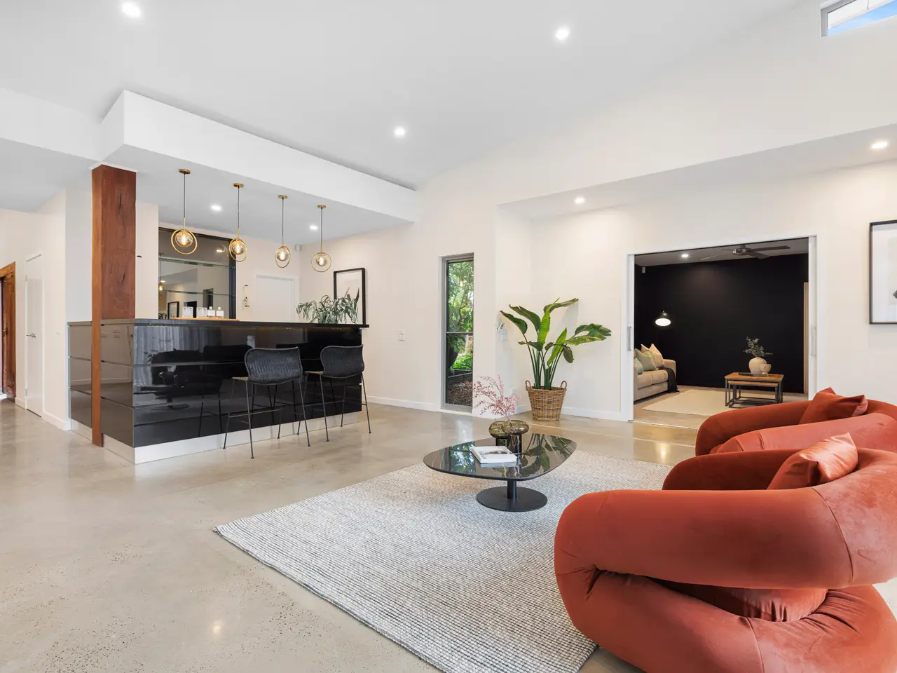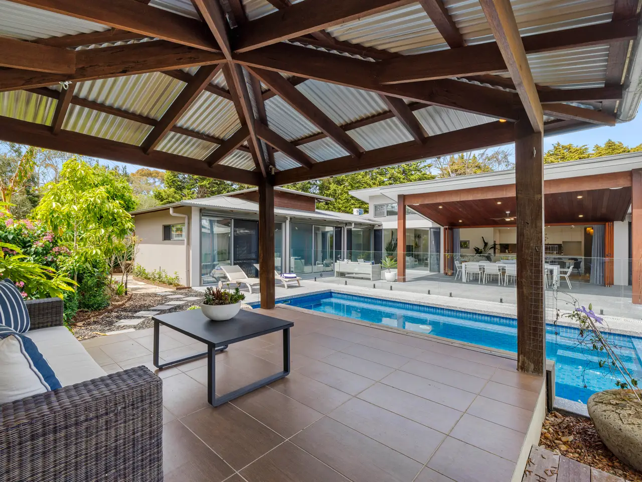 ~ Come and experience the lifestyle at 1 Cameron Way, Mt Eliza Saturday 8th November, 2-2:45pm, champagne and cheese tasting on arrival~ A masterfully executed blend of contemporary architecture and resort-style living, this exceptional c2011 residence showcases the very best of modern luxury. Distinguished by its environmentally conscious design, the home's deliberate north-facing orientation harnesses optimal natural light, while the thoughtful architecture works seamlessly with the site's natural conditions-evidence of the meticulous planning that defines this exceptional residence. The home's statement façade, rendered in sophisticated neutral tones and feature stone, sits beautifully within its leafy surroundings. Set back from the street via a private driveway, the substantial 1,937sqm (approx.) grounds reveal a landscape of genuine distinction. The recent professionally landscape designed gardens are a highlight in themselves: beautifully composed with specimen Japanese maples, ornamental pears, and layered subtropical plantings that evoke the tranquility of a serene retreat. Enter to discover gleaming polished concrete floors and an impressive sense of scale, as six-metre ceilings soar overhead and draw the eye toward the stunning centrepiece: a solar and gas-heated in-ground pool with integrated spa, beautifully appointed poolside pavilion, and sweeping entertaining terrace finished in newly laid premium polished concrete. The pool area has been enhanced with a new pump system and elegant waterfall feature, while frameless glass balustrades ensure uninterrupted views across the manicured landscaped gardens. The home's pavilion-inspired layout creates an effortless connection between indoors and out. Living spaces flow seamlessly through newly installed timber bi-fold doors to the magnificent alfresco area, where a timber Skillion ceiling and integrated fan provide comfortable shelter for entertaining on the grandest scale. This impressive outdoor space, with its generous polished concrete surface, becomes the natural gathering point for summer entertaining by the pool or relaxed evening occasions under the stars. The gourmet kitchen features Caesarstone benchtops throughout, centred around a substantial island bench with integrated sink and dishwasher, complemented by premium new Smeg built-in oven and convection microwave. A stylish wet bar with expansive wine storage sits adjacent, perfect for effortless hosting. The open-plan dining area and lounge, warmed by a new contemporary gas fireplace, connect to a separate rumpus and fully fitted theatre room, creating versatile spaces for family life and entertainment. The accommodation is thoughtfully zoned for privacy and functionality. The luxurious master suite occupies its own private wing, complete with walk-in robe, stone-appointed ensuite featuring double vanity, and a striking terrazzo bathtub positioned to overlook a secluded courtyard. Separately zoned, three additional generous bedrooms are serviced by a well-appointed family bathroom with separate powder room. A dedicated home office provides a quiet workspace, while a substantial laundry with rear access completes the practical layout. Recent substantial investment in premium infrastructure and finishes sets this property apart. A new hydronic underfloor heating system with contemporary boiler delivers luxurious warmth throughout the cooler months. A comprehensive automated irrigation system, recently installed throughout, ensures the gardens maintain their immaculate presentation year-round whilst expansive newly laid exposed aggregate pathways wind through garden rooms complementing this landscaped masterpiece. Energy-efficient LED lighting has been installed throughout, while comprehensive Crimsafe security screens and doors provide robust protection without compromising aesthetics. Security is further enhanced by a cutting-edge alarm system featuring night-time facial recognition capability, with access controlled via beautifully crafted custom wrought iron feature gates that make a striking first impression. Further appointments include reverse-cycle air conditioning, ceiling fans, plantation shutters, strategically placed highlight and louvre windows for natural ventilation, and a heavy-duty in-ground water tank. The double lock-up garage provides secure internal access and ample storage. Positioned among the Peninsula's most prestigious addresses, this exceptional property sits moments from Peninsula Grammar School and Toorak College, the boutique shops and cafes of Mount Eliza Village, and the pristine coastline of Moondah Beach. More than just a residence, this is a carefully crafted sanctuary offering year-round luxury living in one of the region's most sought-after locations.