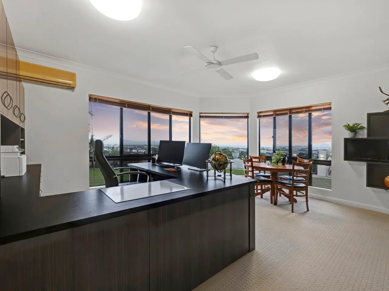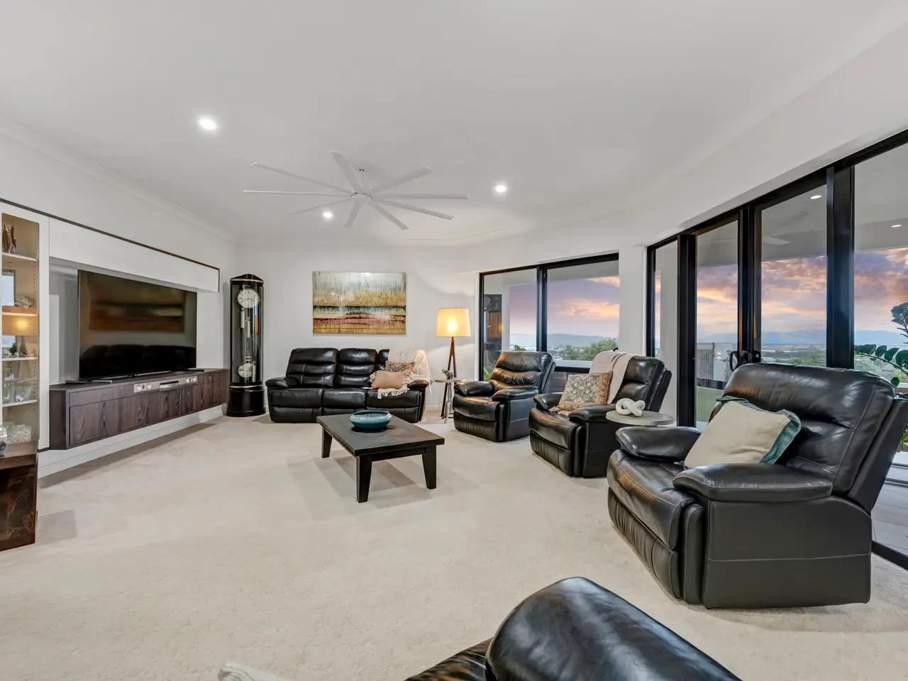 Tucked away high on Mount Louisa's exclusive ridgeline, Villa Portofino is a landmark residence - one that effortlessly blends architectural prestige with warm, liveable luxury. From the moment you arrive, this 646m² home evokes a sense of timeless sophistication, where every room has been designed to frame the breathtaking natural beauty that surrounds it. Set across an expansive 4,168m² estate and embracing some of the most spectacular views in Townsville - from Castle Hill and the glistening Coral Sea to Magnetic Island and the twinkling city lights - this is a home that doesn't just impress, it captivates. It invites you to slow down, breathe deeply, and live fully. Whether entertaining guests in the indoor/outdoor dining areas, billiards room, enjoying a movie night in the private cinema, or simply waking to golden sunrises in the master suite wrapped in glass, Villa Portofino offers a lifestyle of indulgence, privacy, and extraordinary comfort. It's a home that honours craftsmanship and quality while celebrating the daily rituals of family, connection, and serenity. With multiple internal and external living zones, this is a rare opportunity for families, professionals, or multi-generational households who seek both grand scale and complete functionality. The second block, with its orchard-style gardens, huge shed, and self-sufficient features, further elevates this as an estate of genuine distinction. Property Highlights: Unrivalled Panoramic Views from every bedroom and living zone - Castle Hill, Magnetic Island, and city lights in full display. Award-Winning Kitchen with handcrafted timber finishes, generous butler's pantry, and timeless appeal Elegant Living & Entertaining Areas including formal dining, two spacious lounges, a full-sized billiards/pool room, and a fully equipped home theatre with authentic cinema carpet Grand Entry Foyer welcoming guests into a home of scale and style Executive Home Office with private access, perfect for running a business or working remotely in peace with perfect views Master Retreat with floor-to-ceiling glass on three sides, generous ensuite with double shower and vanities, and a massive walk-in robe Three Additional King-Sized Bedrooms all opening onto the top balcony to capture breezes and views Teenagers' Retreat (upstairs lounge) with kitchenette and lounge space - ideal for growing families or independent guests Sewing Room upstairs, easily used as a nursery, studio, or additional office Designer Laundry featuring built-in ironing station, laundry chute, folding benches, wall-mounted clothesline, and custom cabinetry Extensive Garaging with a double lock-up garage (drive-through to rear) and additional tool room/workshop with roller door access Security Features include Crimsafe screens, 5-point phone/intercom/doorbell system, security cameras, solar power, and driveway lighting Solar Power and 3 Phase power to the house and shed Bonus Second Allotment: A hidden sanctuary of its own, the second block is fully gated and accessed via a timber staircase. Designed as a functional farmstead, it includes: - An array of fruit trees, raised veggie gardens, and a chicken coop - Private cubby house for the kids, complete with its own sweeping views - A massive shed with kitchenette, bathroom (requires completion), storage room, and space for tools, toys, or even conversion to a creative studio or retreat This is more than a home - it's a private estate, a sanctuary, and a statement in one of Townsville's most coveted locations. With the current owners now downsizing, this exceptional property is ready to begin its next chapter. Disclaimer: All information provided in this listing is gathered from sources we believe to be reliable; however, we cannot guarantee its accuracy. Interested parties are advised to conduct their own independent research, inspections, and due diligence to verify the details and ensure the property meets their requirements. We accept no liability for any errors, omissions, or discrepancies. Additionally, photographs may have been digitally enhanced for marketing purposes to improve presentation and showcase the property's potential. Features, boundaries, and conditions should be independently confirmed before making any purchasing decisions.