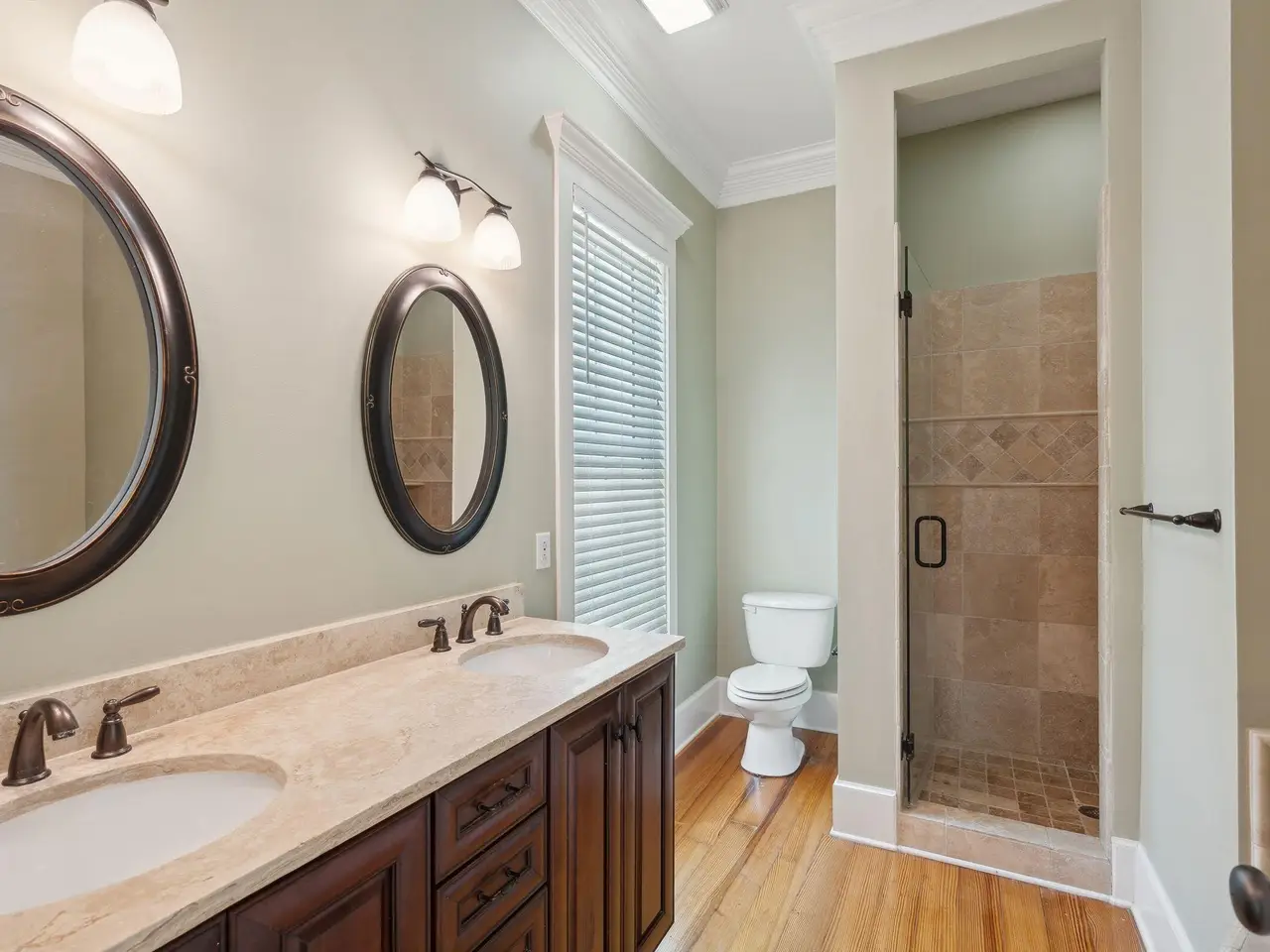 Welcome to 41 Jane Jacobs, located in I'On, one of Charleston's most desirable neighborhoods. Upon entering this charming home, you are greeted by the cozy family room, complete with a built-in surround sound system and fireplace. Beautiful pine wood flooring throughout. The kitchen features custom-built glass-paned cabinets with built-in lighting, a central island for extra countertop space, and stainless-steel JennAir appliances. The primary bedroom is conveniently located on the main floor, offering dual walk-in closets and a private en-suite bathroom with a jacuzzi tub and a walk-in shower. There is an additional bedroom on the first floor that can be used as a guest room, office, or study. Upstairs features two bedrooms, both with extra-large closets with ample storage space. One of the upstairs bedrooms features a hidden door in the closet that leads to an unfinished space over the primary bedroom. The detached one-car garage includes a spacious unfinished room above that can easily be finished and turned into a charming carriage house or a fantastic guest suite.