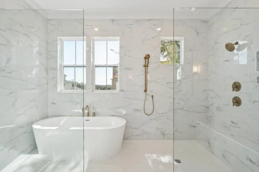• Dual vanities and soaking tub in primary suite