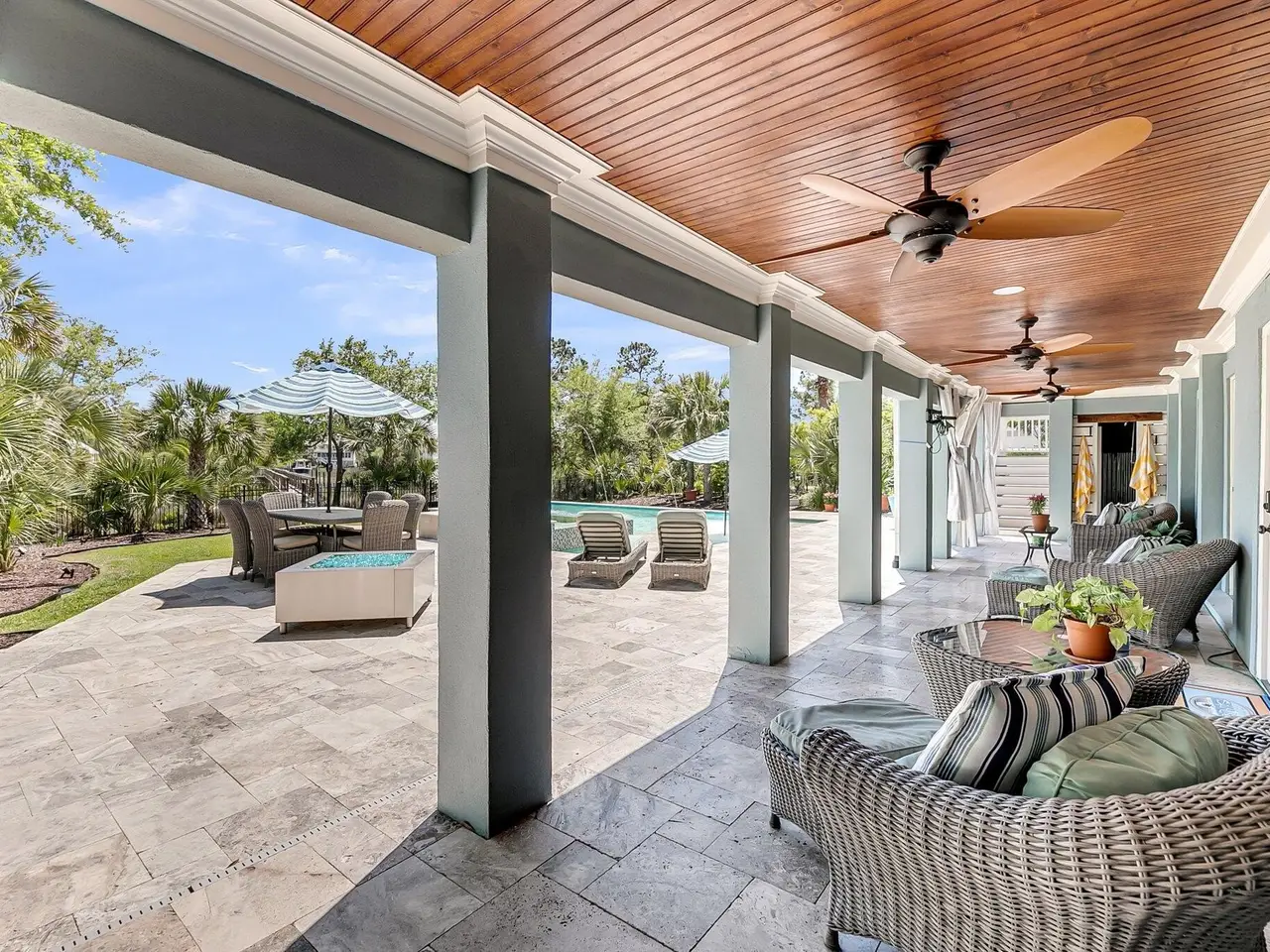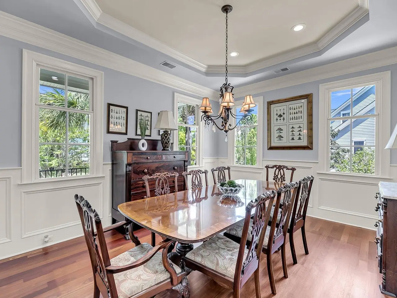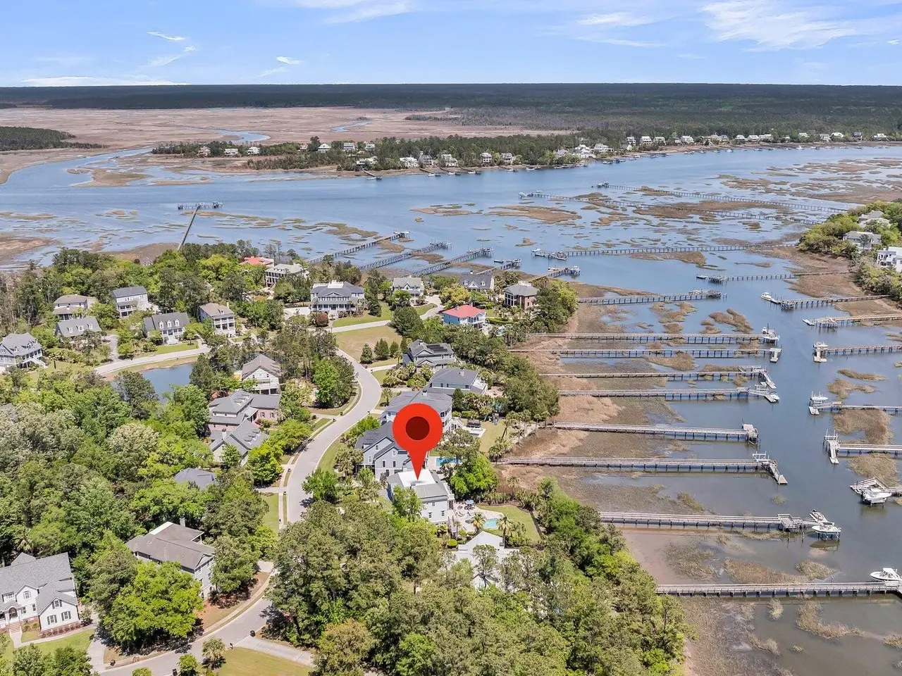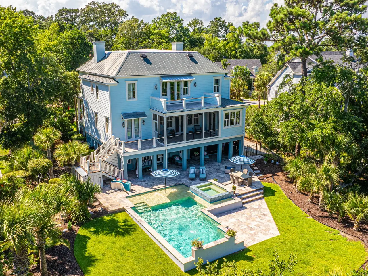 If you've been dreaming of panoramic waterfront views framed by swaying palms and a sparkling saltwater pool with spa, this custom designed Lowcountry retreat is your dream come true. From the moment you arrive, you're welcomed by a grand double staircase encircling a signature palm tree and custom-welded wrought iron railings. Gas lanterns frame a stunning solid mahogany entry door, setting the tone for the elegance and craftsmanship found throughout the home. Thoughtfully designed to capture the beauty of its setting, the open-concept main floor flows effortlessly from a dramatic double-story foyer into the great room, kitchen, breakfast area, and spacious primary suite--all opening to a large, screened porch with breathtaking views of the water and pool. A Butler's Pantry leads tothe formal dining room, and a walk-in laundry, pantry, and powder room complete the main living level. The great room features a coffered 10' ceiling, a gas fireplace with custom built-ins, and a wall of windows and French doors bringing the outdoors in. The gourmet kitchen boasts a large island, custom cabinetry, and premium Jenn-Air appliances including a 48" refrigerator, 6-burner gas cooktop, and beverage cooler. Enjoy waking every morning to a serene waterfront sunrise view from the expansive primary suite, complete with dual walk-in closets, a soaking tub, separate vanities, and a luxurious walk-in shower. Upstairs, four oversized bedrooms (two with ensuite baths, two with a shared Jack and Jill bath), a second laundry room, and a versatile bonus room with a private sun deck offer comfort and flexibility for family and guests. Outside, paradise awaits. The heated and cooled saltwater pool with integrated spa, sun shelf, fountains, and water features is a showstopper. The spacious patio invites sunbathing, entertaining, and peaceful relaxation, all while overlooking your private dock with boat lift and floater, perfect for swimming, fishing, or exploring the waterways by boat! The ground level offers a finished suite with full bath, large living area, second 48" refrigerator, additional storage closet, a walk-in storage room, enclosed workshop, and 3-car garage. Park West Amenities, paved walking paths throughout the community, 3 primary to middle schools, and a Mount Pleasant Recreation complex offer the perfect setting for families! Located in the heart of the Lowcountry, this home is a rare opportunity to own a waterfront sanctuary that seamlessly blends casual elegance, generous space, and the best of indoor-outdoor living!