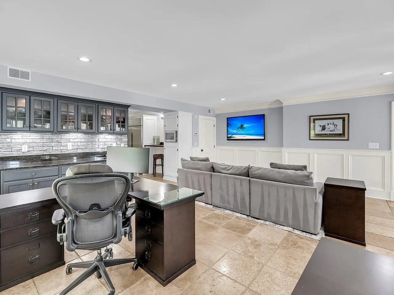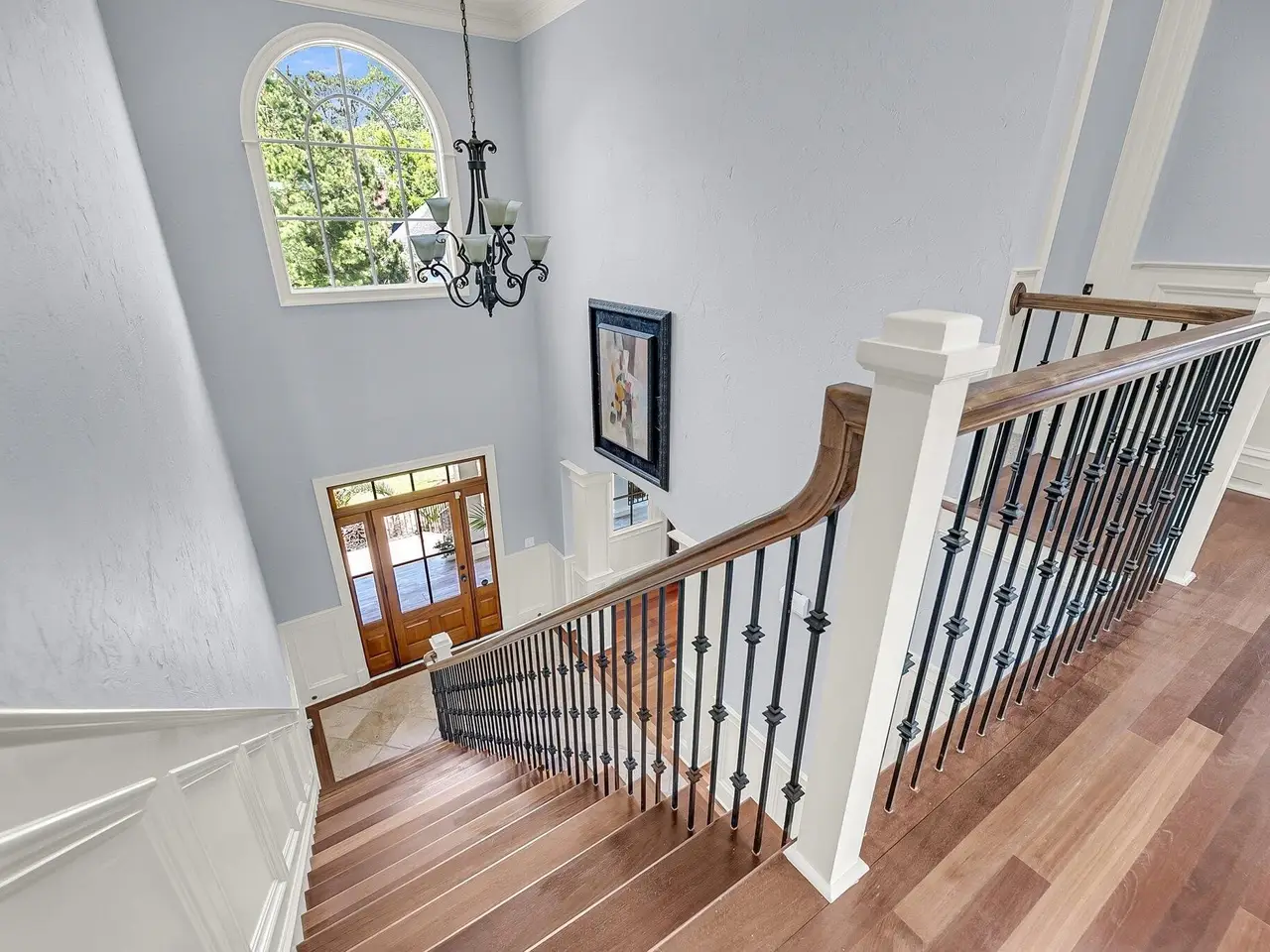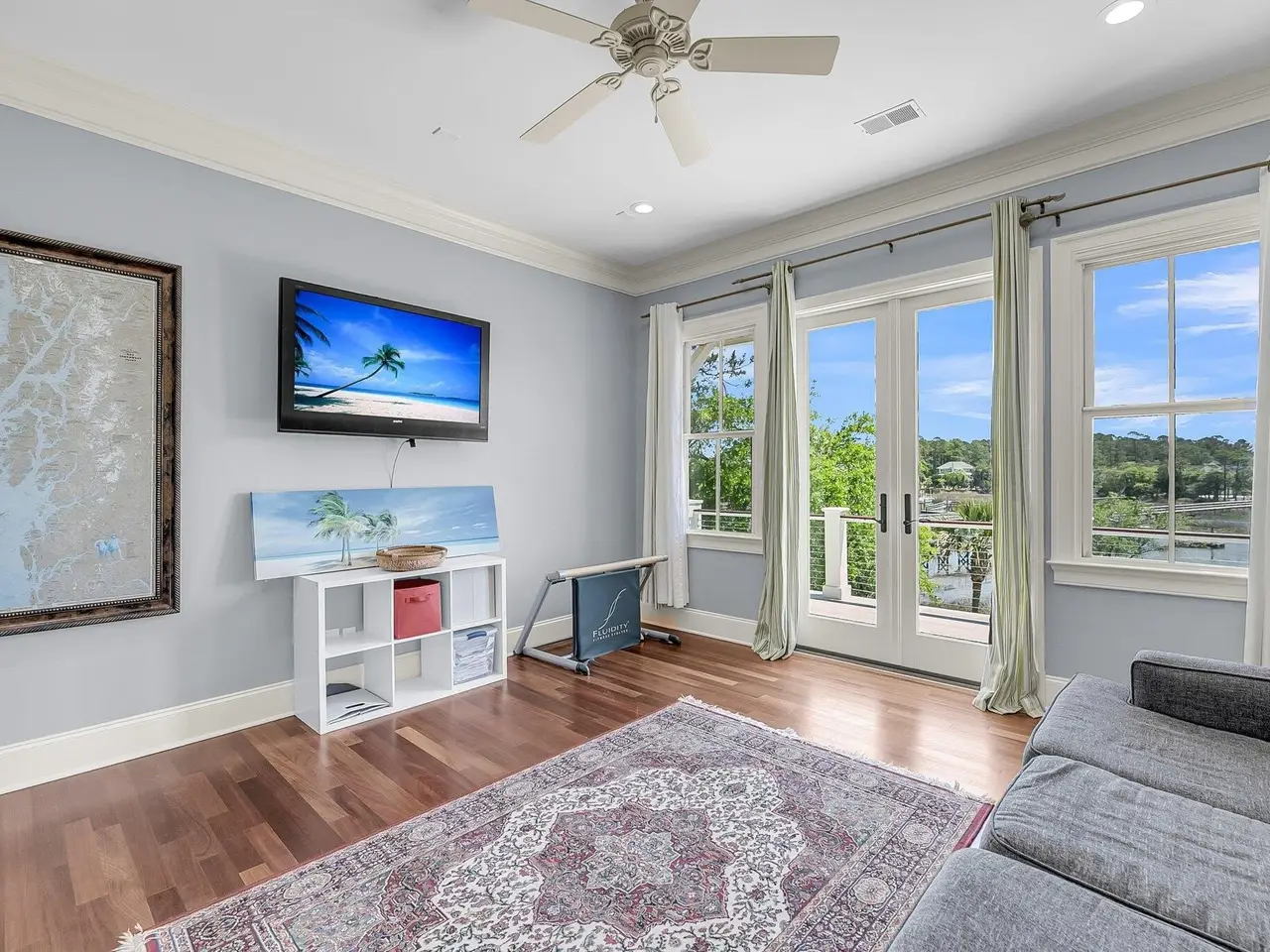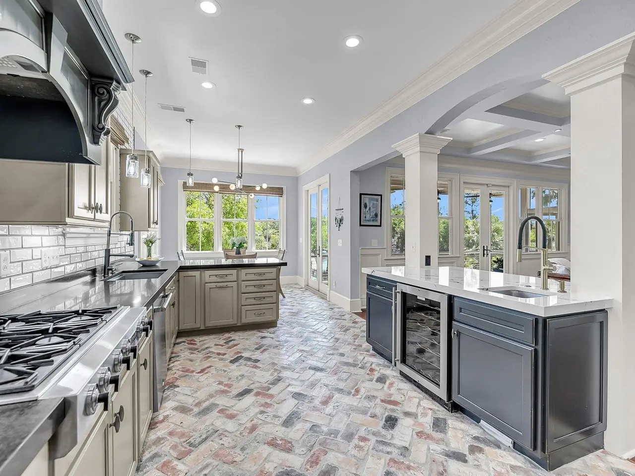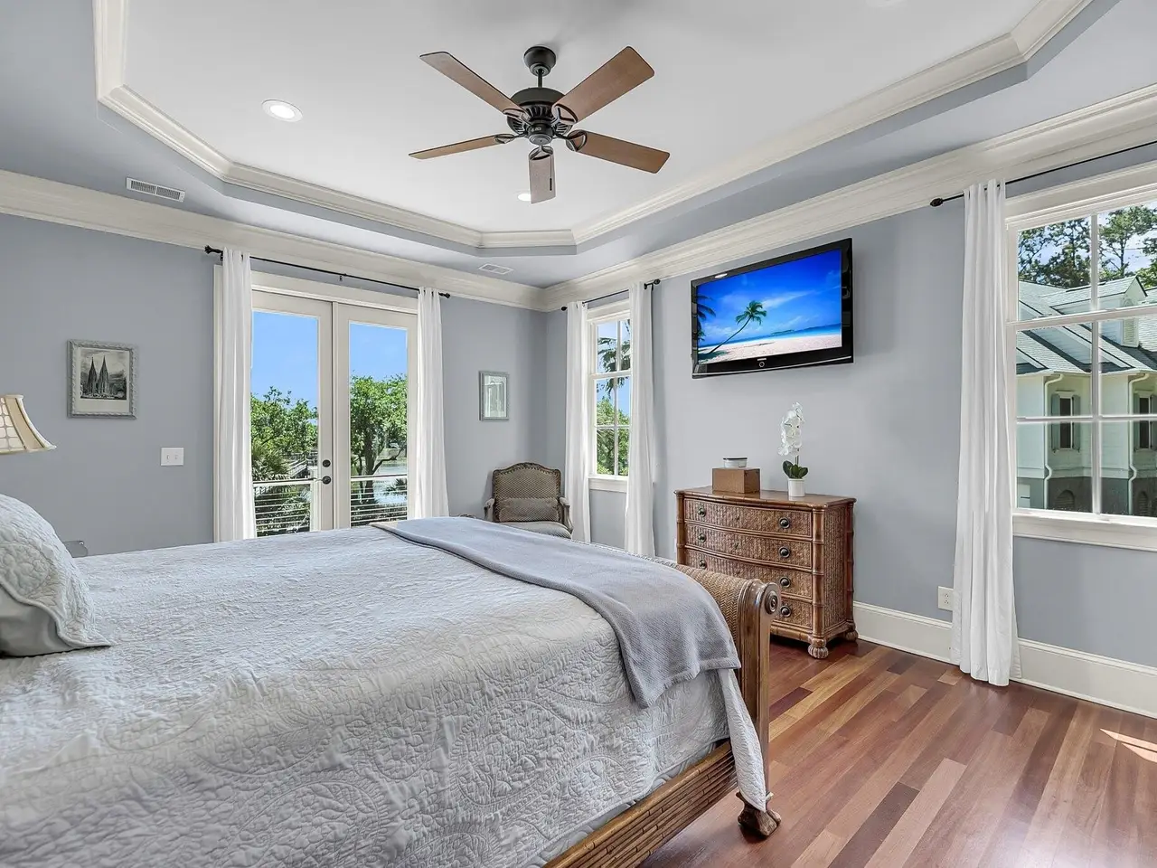 If you've been dreaming of panoramic waterfront views framed by swaying palms and a sparkling saltwater pool with spa, this custom designed Lowcountry retreat is your dream come true. From the moment you arrive, you're welcomed by a grand double staircase encircling a signature palm tree and custom-welded wrought iron railings. Gas lanterns frame a stunning solid mahogany entry door, setting the tone for the elegance and craftsmanship found throughout the home. Thoughtfully designed to capture the beauty of its setting, the open-concept main floor flows effortlessly from a dramatic double-story foyer into the great room, kitchen, breakfast area, and spacious primary suite--all opening to a large, screened porch with breathtaking views of the water and pool. A Butler's Pantry leads tothe formal dining room, and a walk-in laundry, pantry, and powder room complete the main living level. The great room features a coffered 10' ceiling, a gas fireplace with custom built-ins, and a wall of windows and French doors bringing the outdoors in. The gourmet kitchen boasts a large island, custom cabinetry, and premium Jenn-Air appliances including a 48" refrigerator, 6-burner gas cooktop, and beverage cooler. Enjoy waking every morning to a serene waterfront sunrise view from the expansive primary suite, complete with dual walk-in closets, a soaking tub, separate vanities, and a luxurious walk-in shower. Upstairs, four oversized bedrooms (two with ensuite baths, two with a shared Jack and Jill bath), a second laundry room, and a versatile bonus room with a private sun deck offer comfort and flexibility for family and guests. Outside, paradise awaits. The heated and cooled saltwater pool with integrated spa, sun shelf, fountains, and water features is a showstopper. The spacious patio invites sunbathing, entertaining, and peaceful relaxation, all while overlooking your private dock with boat lift and floater, perfect for swimming, fishing, or exploring the waterways by boat! The ground level offers a finished suite with full bath, large living area, second 48" refrigerator, additional storage closet, a walk-in storage room, enclosed workshop, and 3-car garage. Park West Amenities, paved walking paths throughout the community, 3 primary to middle schools, and a Mount Pleasant Recreation complex offer the perfect setting for families! Located in the heart of the Lowcountry, this home is a rare opportunity to own a waterfront sanctuary that seamlessly blends casual elegance, generous space, and the best of indoor-outdoor living!