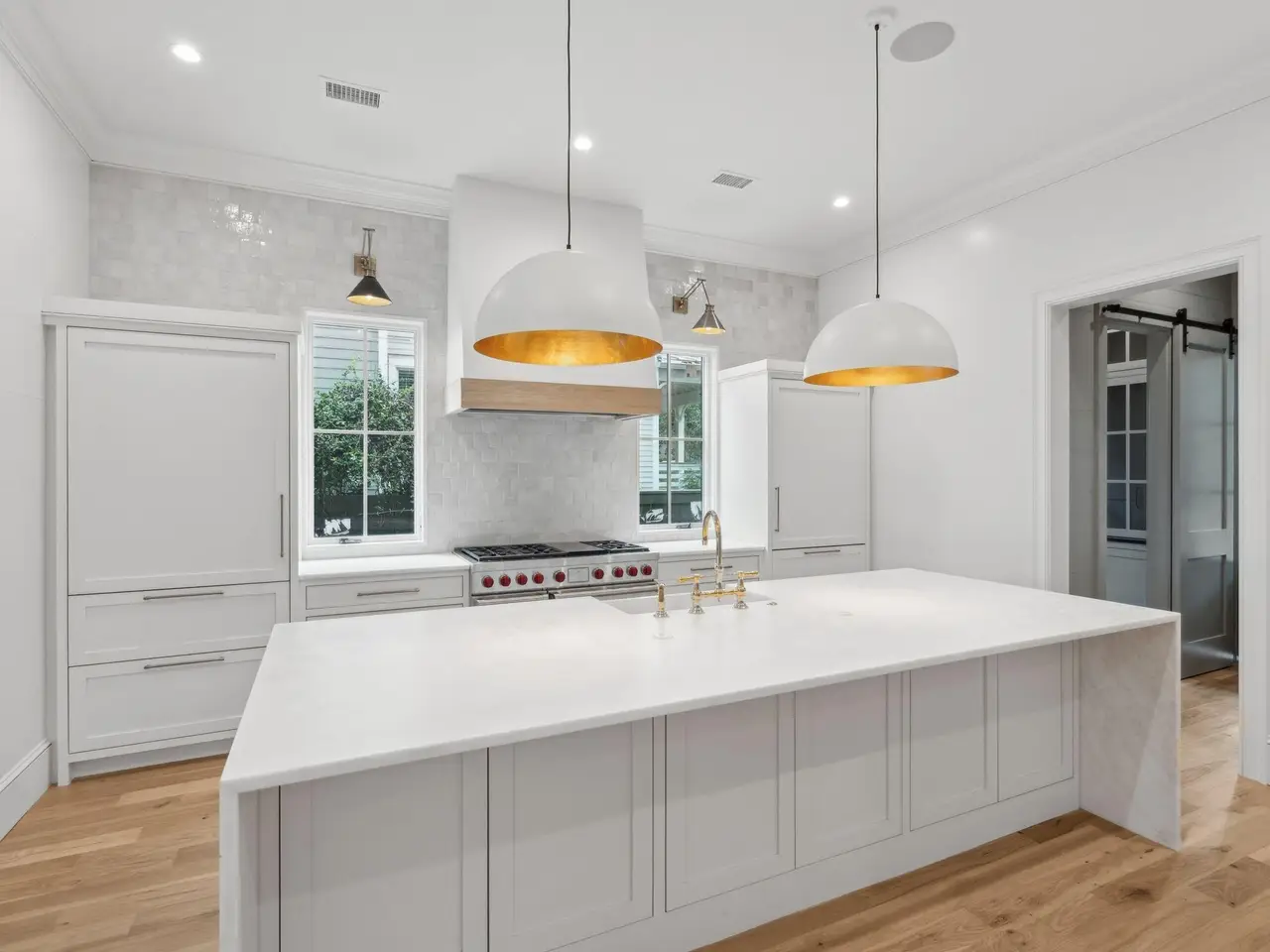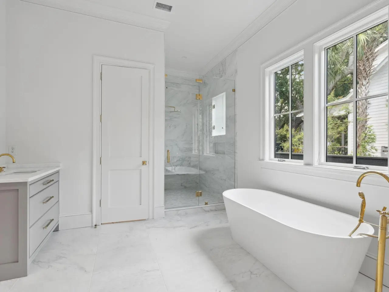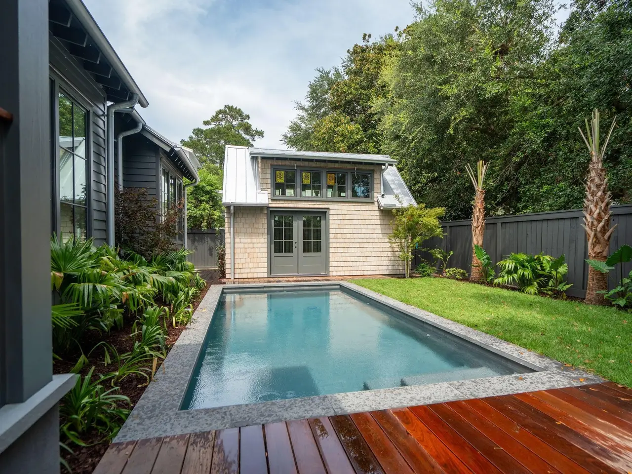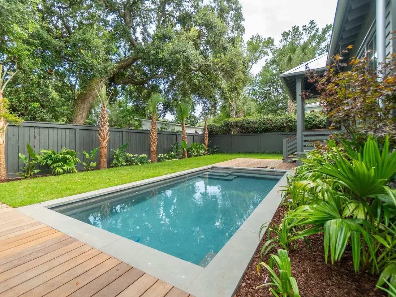Exciting, new construction of this Amber Aument designed home in Old Mt. Pleasant. This is another custom build by Peter Malanos of Arcadia Construction. Located within minutes of Sullivan's Island and Downtown Charleston, this home is just a walk, bike ride or golf cart away from the Pitt Street bridge, Alhambra Hall, ''downtown'' Old Mt. Pleasant Village and outstanding schools (MP Academy and Moultrie Middle). In addition, Post House and other fine restaurants are nearby. The home is located on a quiet cul-de-sac nestled among beautiful oak trees. Every detail of this high-end 4 bedroom, 4 1/2 bath home has been considered from floor plan to finishing details. First floor includes the primary bedroom suite with walk-in closet, cypress lined study with vaulted ceiling and fireplace,living/dining room with fireplace, gourmet kitchen with eat-in space, kitchen office, walk-in food pantry and separate laundry room all with custom cabinets. Butler's pantry features sink, under counter wine cooler and ice maker. Kitchen features include a 48" dual fuel Wolf range with 6 burners, griddle and 2 ovens, a 36" built-in SubZero refrigerator. On the second floor, there are 3 bedrooms with private full baths, plus an additional flex living space (media, play, bunkbeds or....). Exterior spaces include rear porch with exposed rafter vaulted ceiling and wood burning/gas fireplace overlooking in-ground pool. At poolside, there is an IPE deck adjacent to a 240 sf finished, temperature-controlled poolside accessory building with a half bath and outdoor shower stall. Extensive landscaping with automatic irrigation system and landscape lighting.