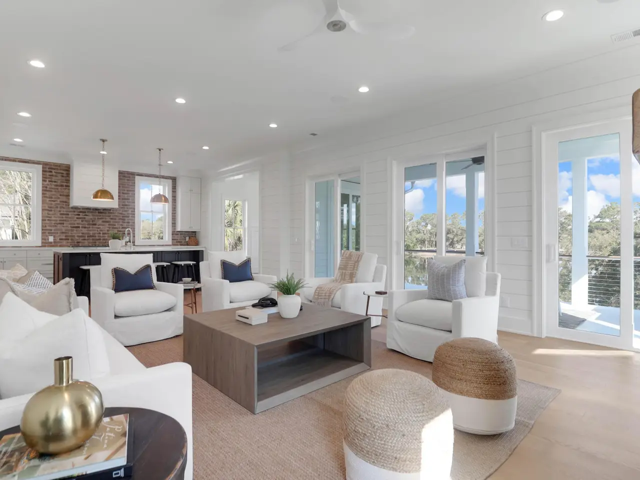 NEW CONSTRUCTION! Nestled in Victory Point, an established and quaint gated community of only 27 homes in Charleston National, this exquisite custom-built home is truly a work of art...a rare opportunity to own a home with the fine quality and unmatched craftmanship that Brier Inc is known for. The location is ideal, offering the privacy and serene setting you desire while being minutes away from downtown Charleston and the beaches of Sullivan's Island and Isle of Palms.Water views abound from this home with a marsh view out the front and a golf course and lake view from the rear. Only discerning buyers will notice the quality craftmanship and finishes this home offers. As you step into the foyer, you will be captivated by the floating antique wooden beams reclaimed 1920'sProhibition Era Boston Beer Racks, setting the tone for the exquisite craftmanship throughout. The kitchen is a chef's delight, featuring Thermador Professional Series appliances, custom cabinetry and a massive island with storage galore. The island is equipped with a 45" sink that takes functionality to a whole new level with dual level attachments that convert your kitchen sink into a full-fledged workspace. If that's not enough, there's an extra-large walk-in Butler's Pantry featuring antique reclaimed circle-sewn countertops and an additional Blomberg refrigerator/freezer. Extending from the kitchen is a large dining room offering abundant natural light and spectacular views of the lake and golf course on three sides. The family room is highlighted by a gas fireplace accented by a 75" Samsung Frame TV and flanked by custom built-in bookshelves. Three sets of glass French doors open from the living room to the back porch featuring a custom built-in Broilmaster Grill for outdoor grilling and entertaining. Your guests will love to powder their nose in the charming ½ bath, adorned with designer wallpaper and a floating vanity. Completing the main level is a large bedroom with an ensuite bathroom and walk-in closet. Whether you take the stairs or the 3-stop elevator, the spacious upstairs primary suite is sure to impress. With breathtaking views of the lake and fairways, the bedroom also features a covered walkout deck with IPE flooring panels and cable railing, overlooking the serene setting. The primary bath includes dual vanities, a beautiful soaking tub, an oversized walk-in shower, a wall of custom cabinetry and an exceedingly large walk-in closet. The 3rd and 4th bedrooms each have ensuite baths and walk-in closets. What's behind the walls of this well-constructed home is quite impressive - 2' x 6' exterior framed walls, impact windows, spray insulation, efficient heating and cooling system, tankless water heater with recirculating hot water, and a 50 year architectural shingled roof. Brier Inc.'s uncompromising commitment to quality construction is in every aspect of this home. Other fine features include designer lighting and hardware, ship lap, a premier home audio system, RING security system, and gorgeous tile throughout. The 3-car garage level is spacious enough for a workshop, extra storage, a golf cart, or multiple cars and opens to a custom lakeside patio with a built-in firepit and seating. Homes of such high quality and location rarely come available!