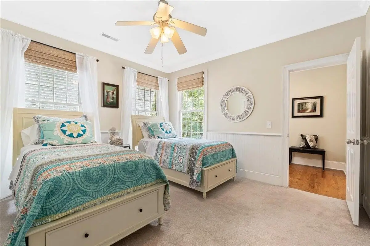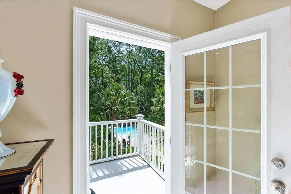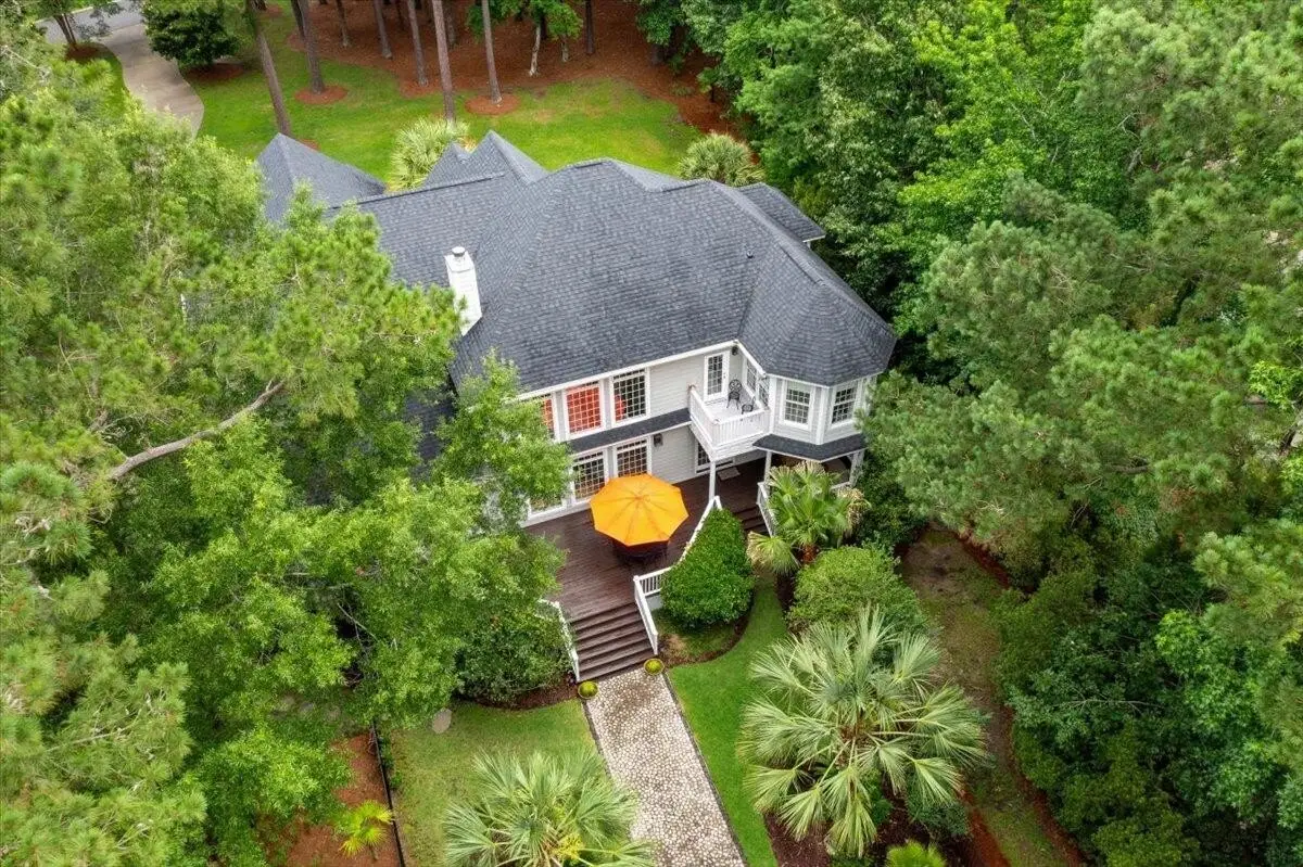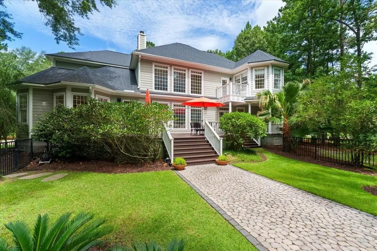 Welcome to your private sanctuary in the prestigious gated community of Dunes West. Perfectly positioned on 1.5 meticulously landscaped acres along the 17th hole of the acclaimed golf course, this custom-built estate offers the quintessential Lowcountry lifestyle--peaceful, gracious, and deeply connected to nature. A full front porch highlighted by classic double French doors sets the tone for the refined interiors beyond. Step into a spacious foyer flanked by a formal dining room and a versatile sitting room or office. At the heart of the home, a sun-drenched great room features floor-to-ceiling windows with sweeping views of the saltwater pool and its lush surroundings and a coffered ceiling. A dual-sided fireplace with marble surround seamlessly connects the great room and gourmet kitchen, an entertainer's dream, featuring a rich American Walnut Island with Cooktop, Double Ovens, Crema Delicatus granite countertops, Mother of Pearl backsplash, an additional large island with seating, a full-sized Wine Cooler, a cabinet high beverage cooler, a spacious pantry, and gorgeous pendant lighting! Retreat to the first-floor owner's suite, where spa-like serenity awaits with a soaking tub, dual vessel sinks, walk-in closet, and direct access to the poolside covered porch. A powder room completes the first floor. A luxurious second master suite awaits upstairs that features a spacious sitting room and opens to a private balcony overlooking your sparkling pool and lush landscaping. This master bath offers dual vanities, a large walk-in shower, a soaking tub, and marble flooring. Two additional bedrooms with ensuite baths, a spacious FROG with a full bath, an ideal guest suite, home gym, or playroom, a large walk-in Laundry Room with ample cabinetry and a sink are also located on the second floor. Outdoors, unwind in complete privacy. The saltwater pool is surrounded by a bluestone deck, an aluminum fence, and mature Lowcountry landscaping that offers tranquility and seclusion, even from the golf course. Residents of Dunes West enjoy exclusive access to resort-style amenities: two pools, walking trails, optional golf club membership, boat storage, and 24-hour manned security gates, all just minutes from Charleston's beaches, marinas, shopping and vibrant downtown. This is more than a home, it's a Lowcountry Lifestyle Redefined.
