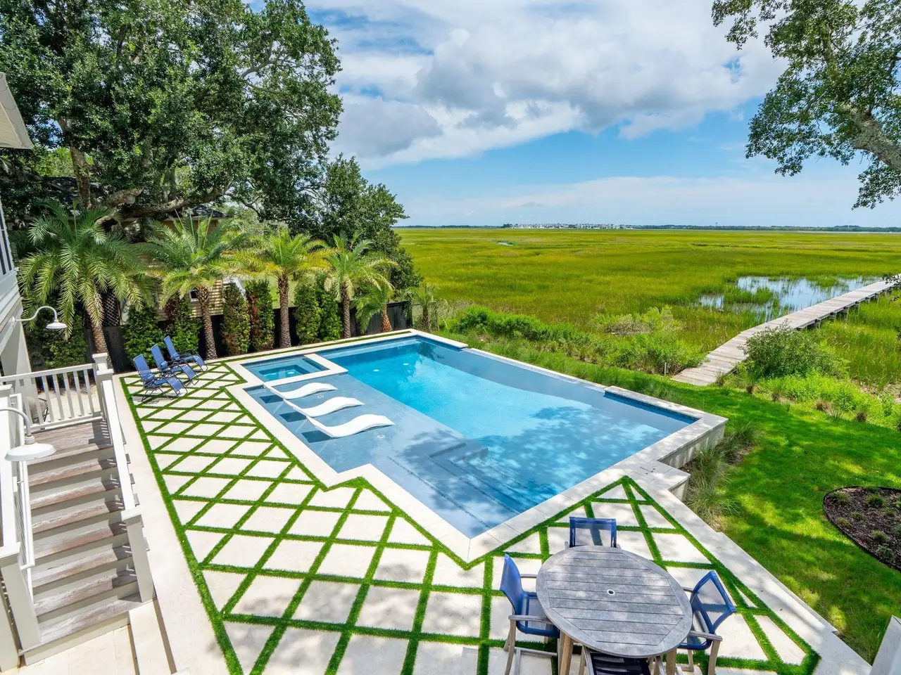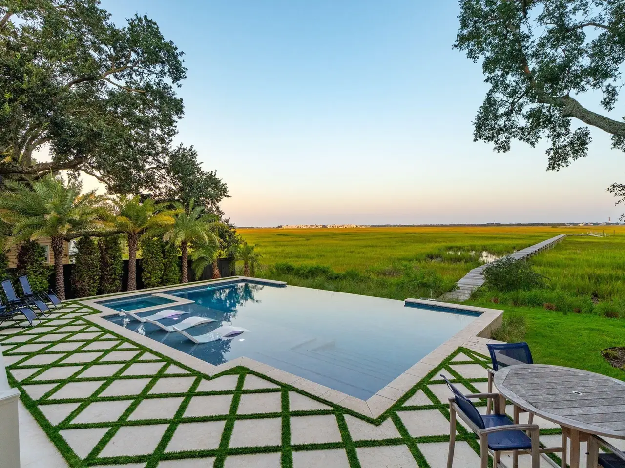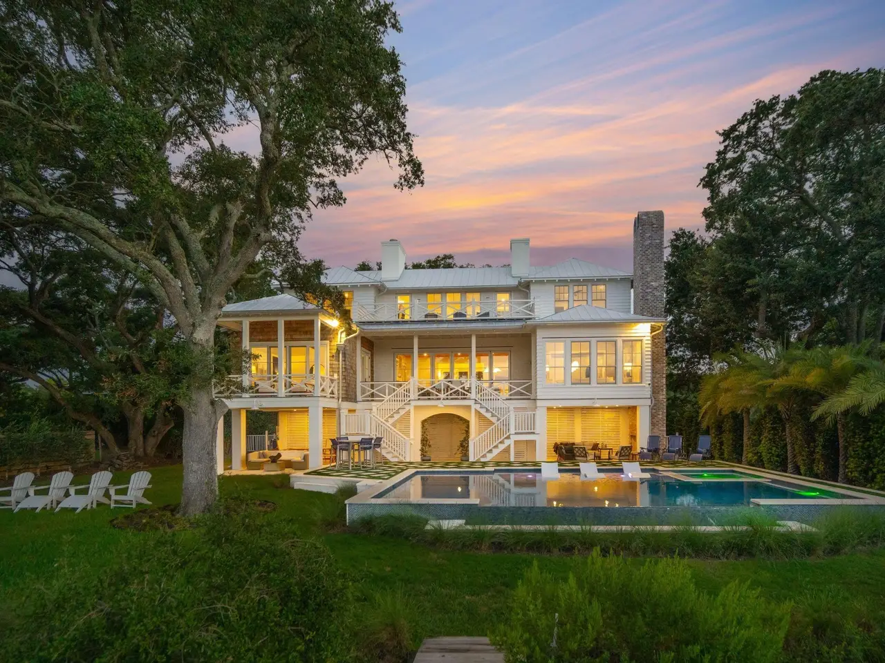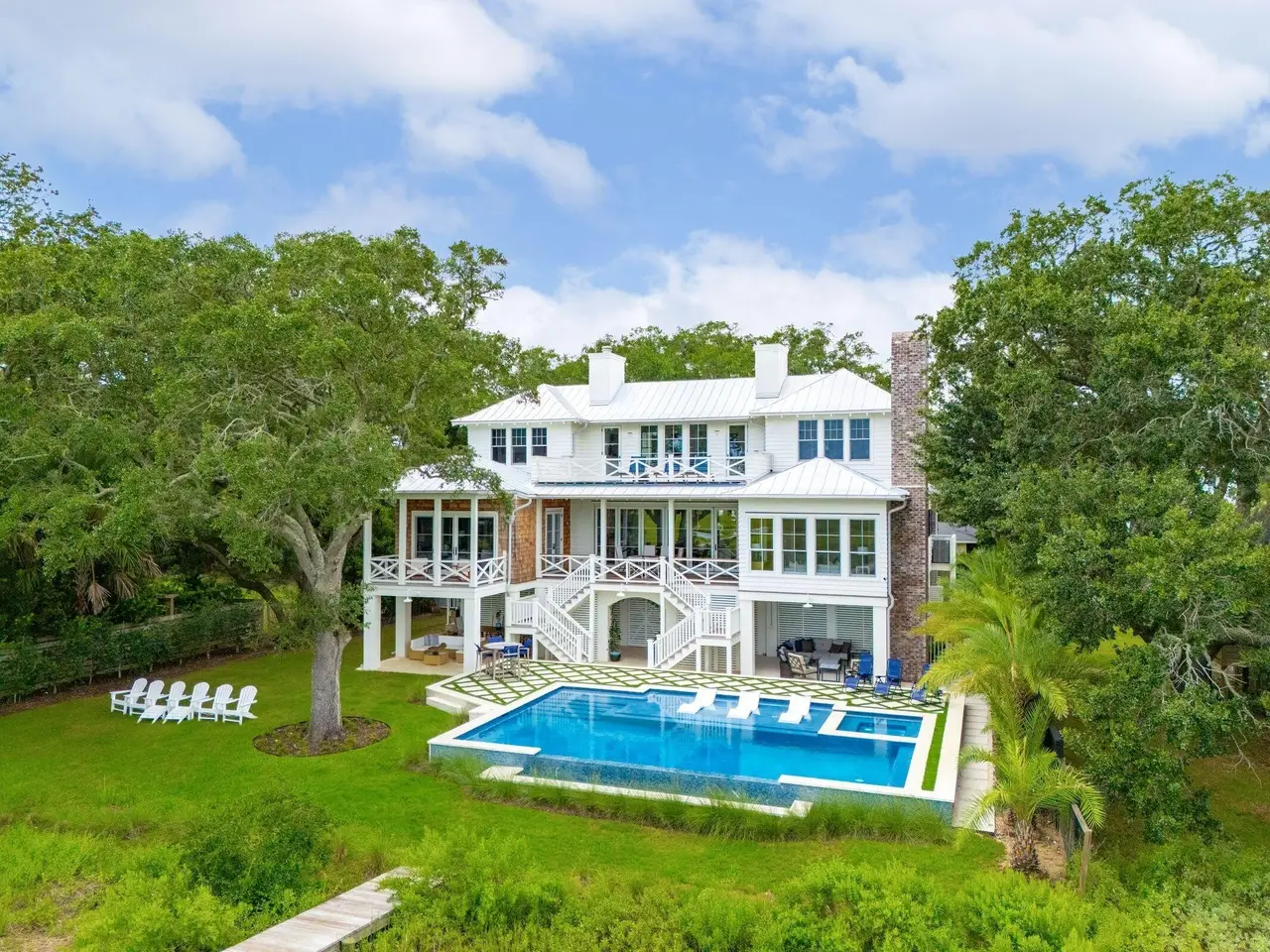 Welcome to Seven Oaks -- a newly completed (2024) generational estate tucked away on one of the most private lots in the Historic Old Village. Designed by Eric Daffron Architect, this waterfront retreat was crafted to capture sweeping views of Sullivan's Island, the Lighthouse, and the Intracoastal Waterway from nearly every room. A palm tree-lined drive sets the tone as you arrive at this sanctuary, where expansive marsh sunrises and timeless Lowcountry scenery surround you. Perfect for boaters, kayakers, and fishermen, the property offers rare direct water access from its private dock. At home, enjoy a resort-style infinity pool and multiple porches and terraces across three levels, all designed for outdoor living.Inside, the residence spans nearly 5,000 sq. ft. with 5 bedrooms, 5.5 baths, and an additional 2,300 sq. ft. of covered porches and decks. The main level centers on a light-filled open plan: living, dining, kitchen with scullery, and a keeping room. The vaulted primary suite offers its own private porch and spa-like bath. Also on the main floor are a study, mudroom/laundry, powder room, and a detached guest suite with ensuite bath. Upstairs, find a dreamy second living room with an expansive entertaining porch, three bedrooms, two baths, and a secondary laundry. An elevator connects every level, including the three-plus car garage. Throughout, the craftsmanship is unmatched herringbone white oak floors, bespoke millwork, and custom stonework elevate every detail. Set on an unusually large, high lot, Seven Oaks combines privacy, luxury, and rare deep-water access into one extraordinary Old Village offering.