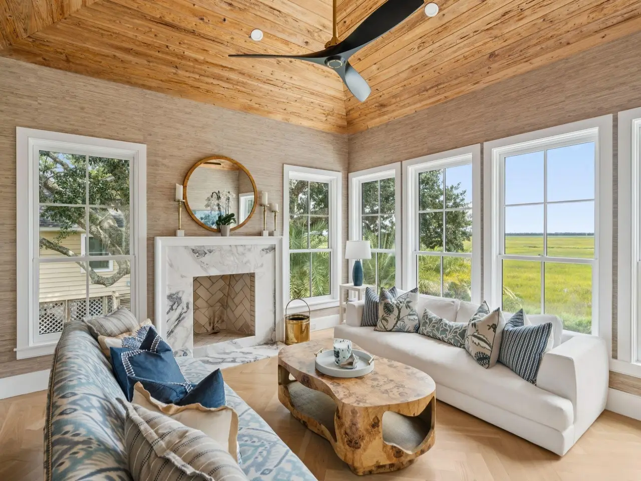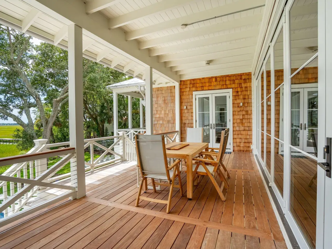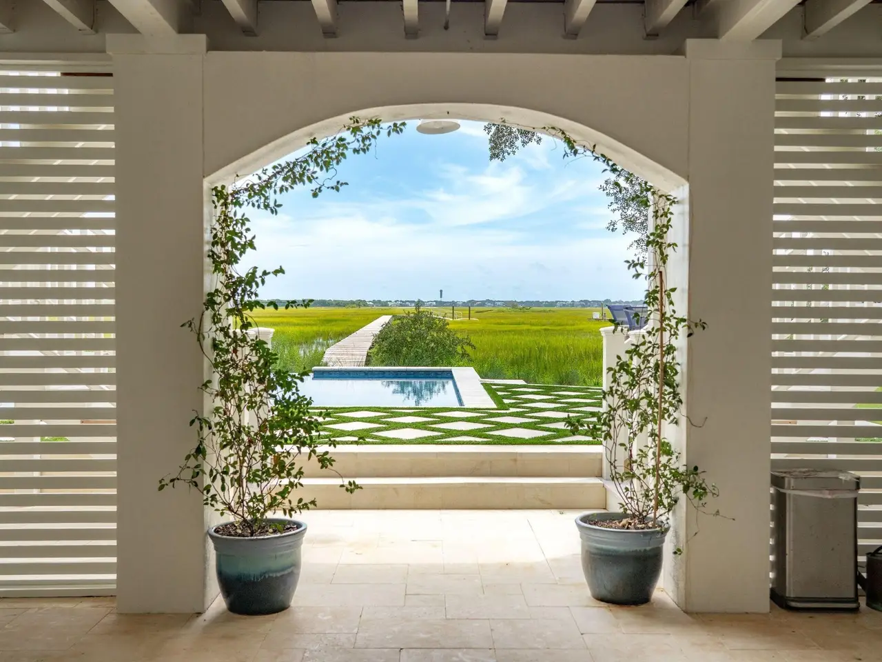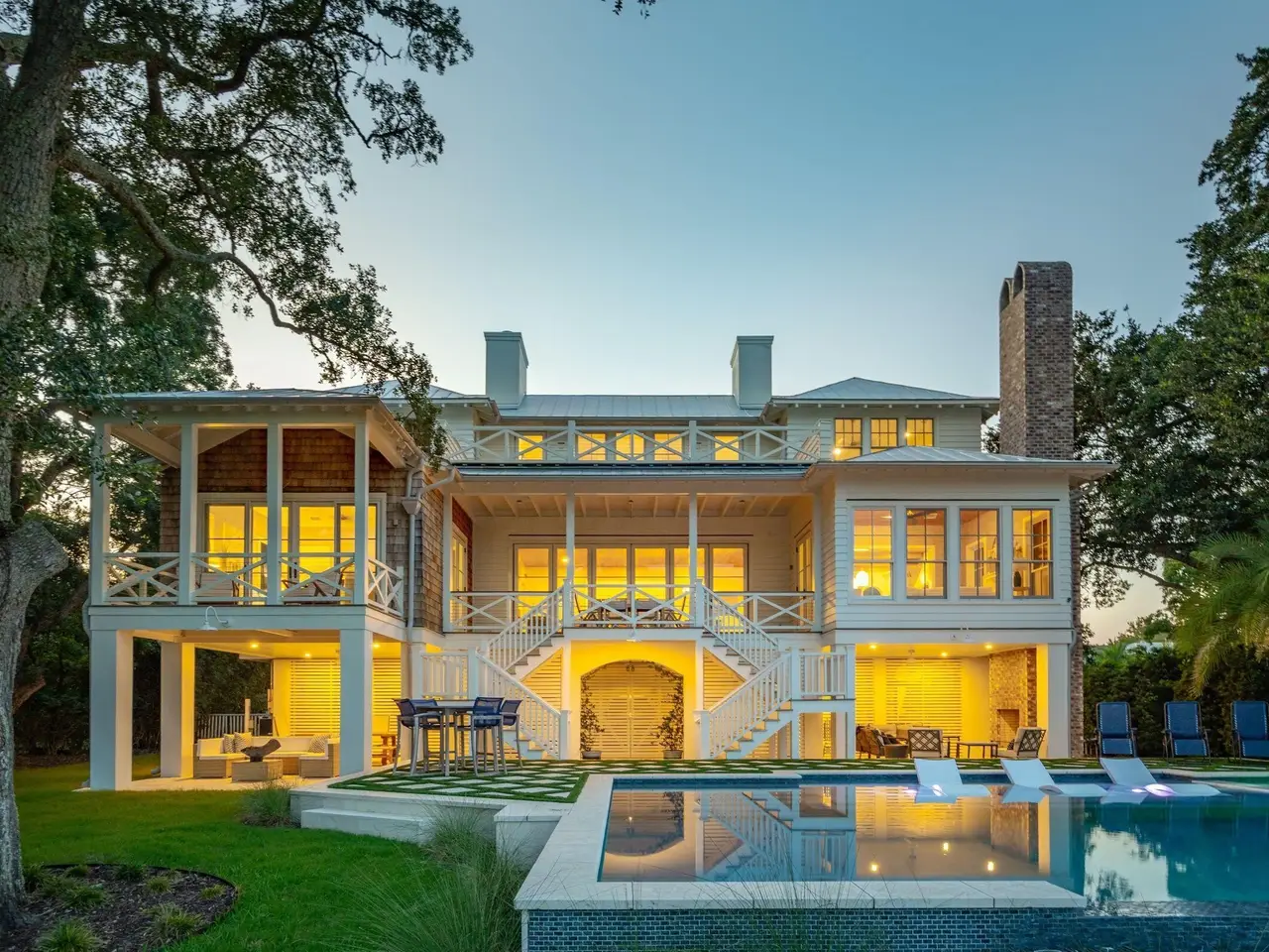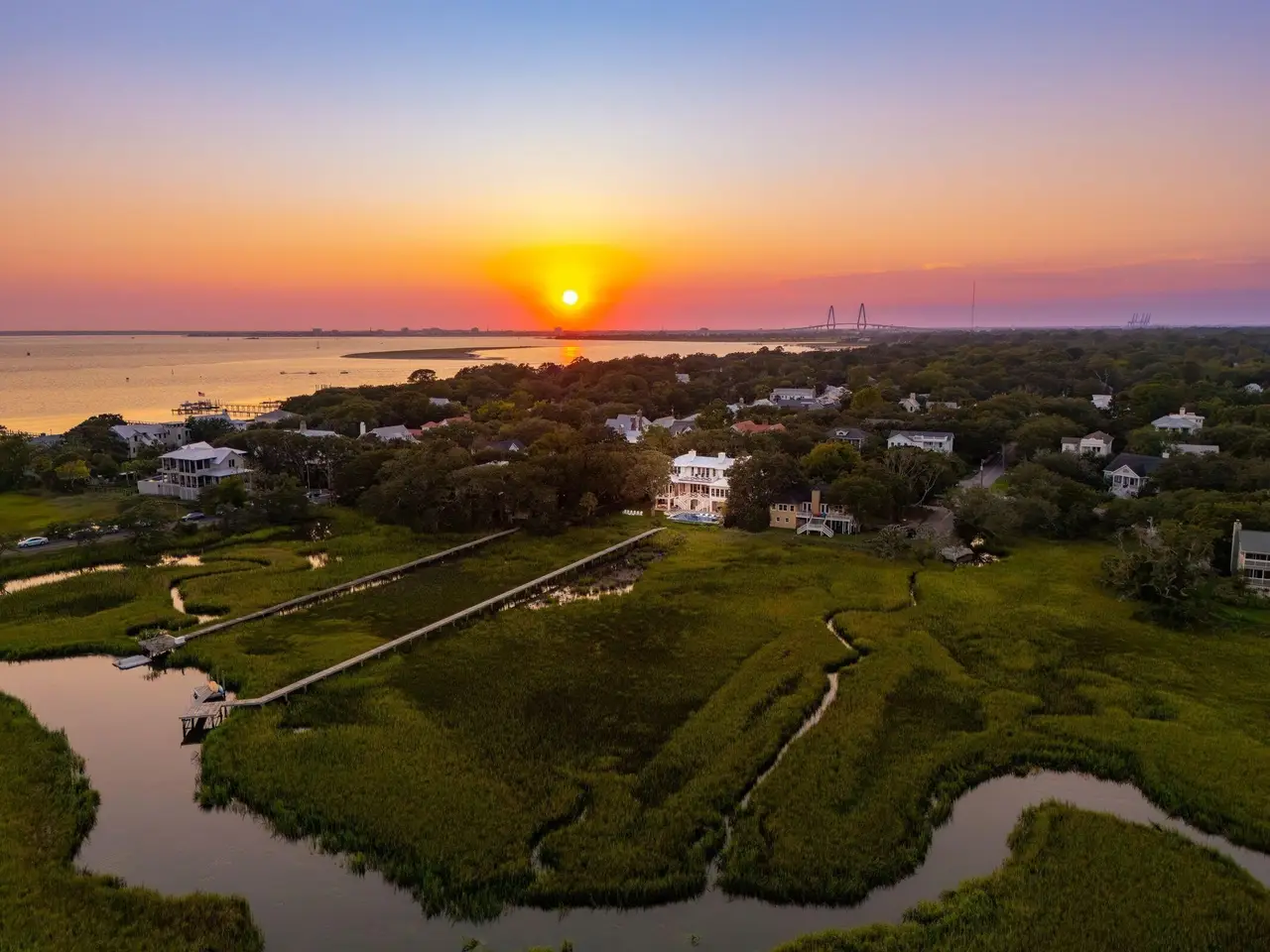 Welcome to Seven Oaks -- a newly completed (2024) generational estate tucked away on one of the most private lots in the Historic Old Village. Designed by Eric Daffron Architect, this waterfront retreat was crafted to capture sweeping views of Sullivan's Island, the Lighthouse, and the Intracoastal Waterway from nearly every room. A palm tree-lined drive sets the tone as you arrive at this sanctuary, where expansive marsh sunrises and timeless Lowcountry scenery surround you. Perfect for boaters, kayakers, and fishermen, the property offers rare direct water access from its private dock. At home, enjoy a resort-style infinity pool and multiple porches and terraces across three levels, all designed for outdoor living.Inside, the residence spans nearly 5,000 sq. ft. with 5 bedrooms, 5.5 baths, and an additional 2,300 sq. ft. of covered porches and decks. The main level centers on a light-filled open plan: living, dining, kitchen with scullery, and a keeping room. The vaulted primary suite offers its own private porch and spa-like bath. Also on the main floor are a study, mudroom/laundry, powder room, and a detached guest suite with ensuite bath. Upstairs, find a dreamy second living room with an expansive entertaining porch, three bedrooms, two baths, and a secondary laundry. An elevator connects every level, including the three-plus car garage. Throughout, the craftsmanship is unmatched herringbone white oak floors, bespoke millwork, and custom stonework elevate every detail. Set on an unusually large, high lot, Seven Oaks combines privacy, luxury, and rare deep-water access into one extraordinary Old Village offering.