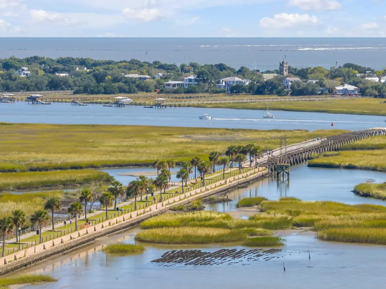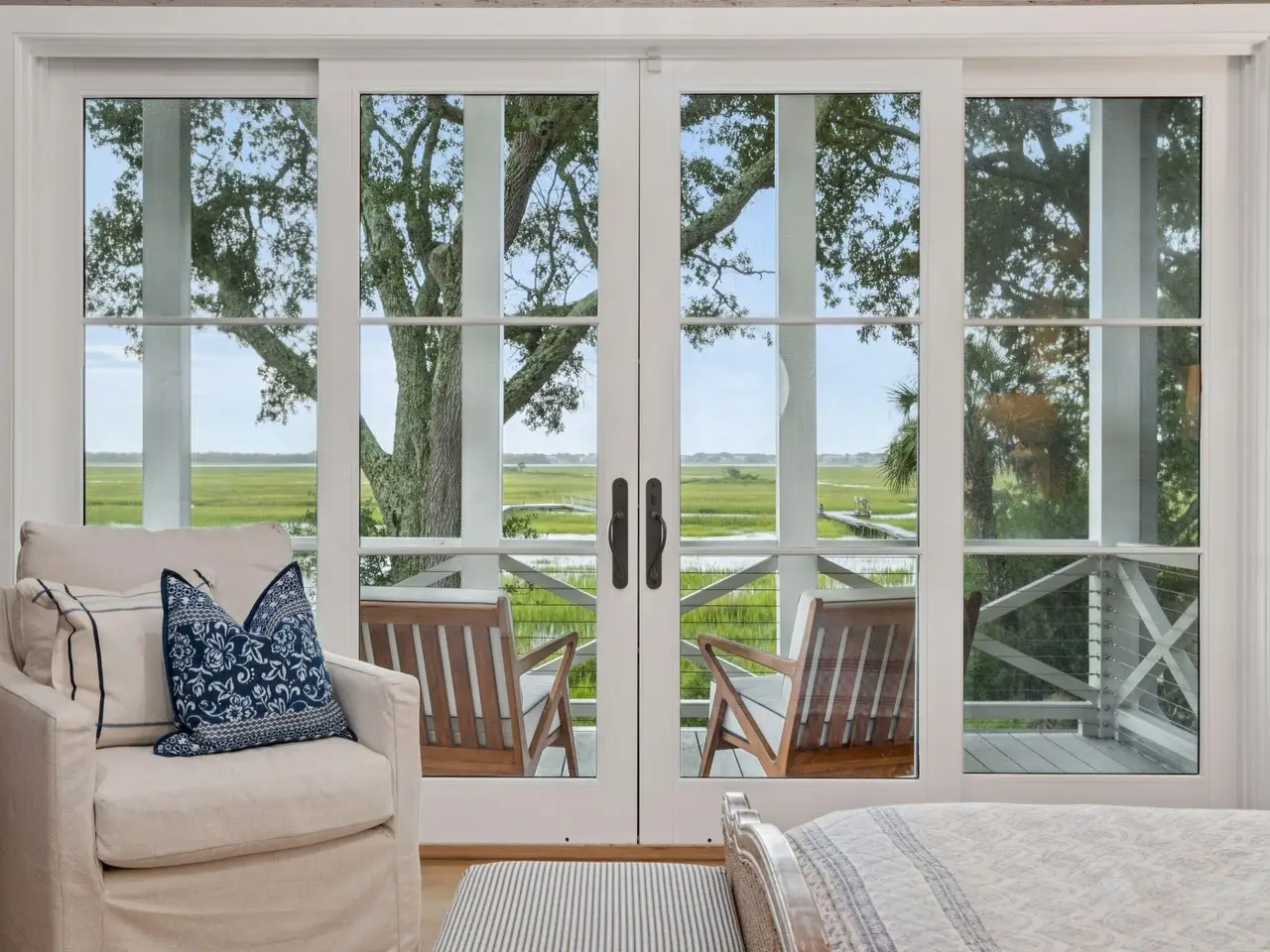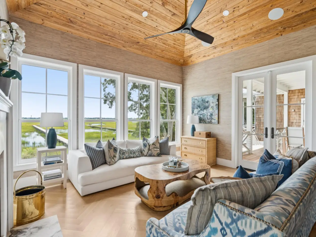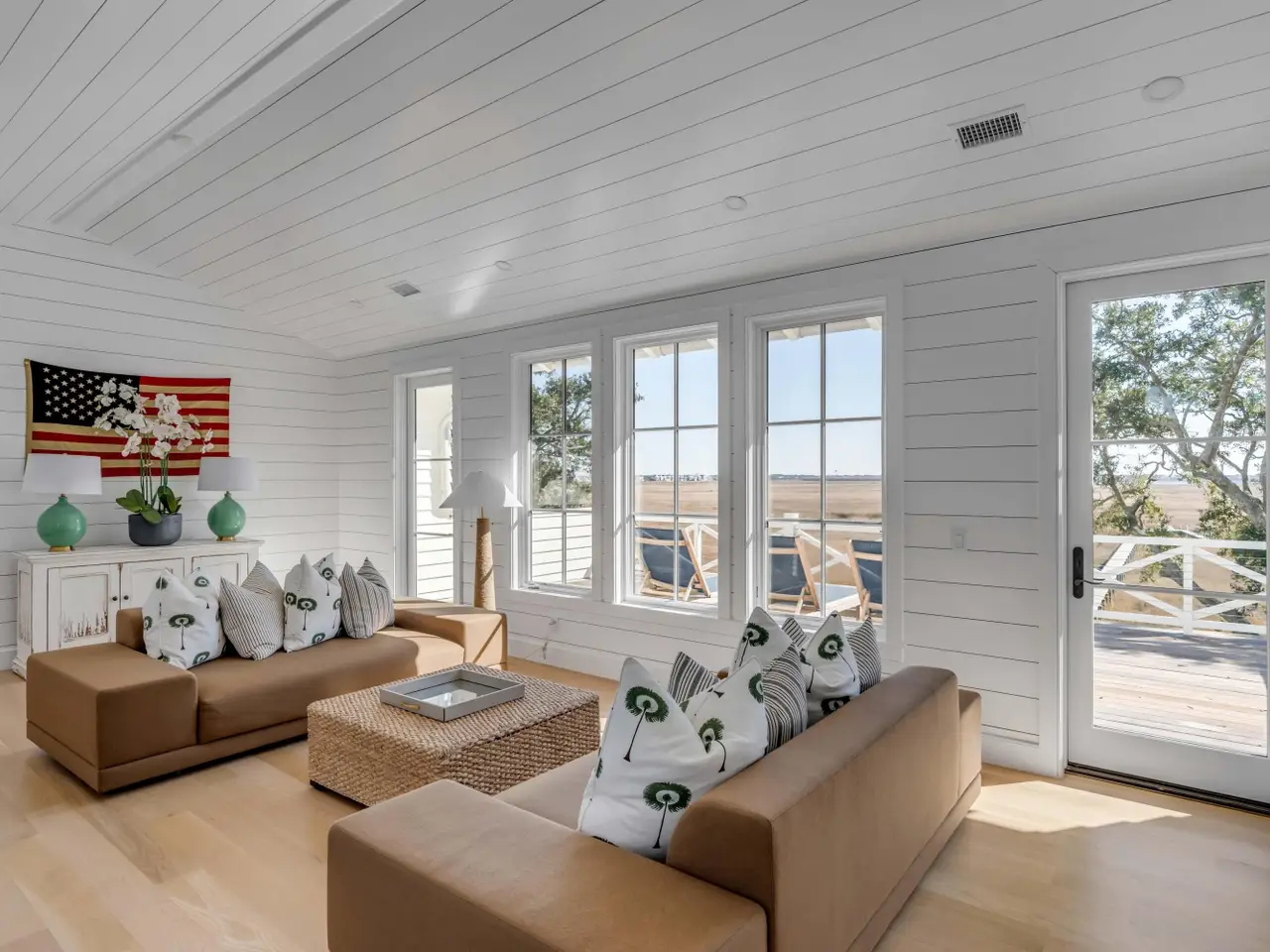 Welcome to Seven Oaks -- a newly completed (2024) generational estate tucked away on one of the most private lots in the Historic Old Village. Designed by Eric Daffron Architect, this waterfront retreat was crafted to capture sweeping views of Sullivan's Island, the Lighthouse, and the Intracoastal Waterway from nearly every room. A palm tree-lined drive sets the tone as you arrive at this sanctuary, where expansive marsh sunrises and timeless Lowcountry scenery surround you. Perfect for boaters, kayakers, and fishermen, the property offers rare direct water access from its private dock. At home, enjoy a resort-style infinity pool and multiple porches and terraces across three levels, all designed for outdoor living.Inside, the residence spans nearly 5,000 sq. ft. with 5 bedrooms, 5.5 baths, and an additional 2,300 sq. ft. of covered porches and decks. The main level centers on a light-filled open plan: living, dining, kitchen with scullery, and a keeping room. The vaulted primary suite offers its own private porch and spa-like bath. Also on the main floor are a study, mudroom/laundry, powder room, and a detached guest suite with ensuite bath. Upstairs, find a dreamy second living room with an expansive entertaining porch, three bedrooms, two baths, and a secondary laundry. An elevator connects every level, including the three-plus car garage. Throughout, the craftsmanship is unmatched herringbone white oak floors, bespoke millwork, and custom stonework elevate every detail. Set on an unusually large, high lot, Seven Oaks combines privacy, luxury, and rare deep-water access into one extraordinary Old Village offering.