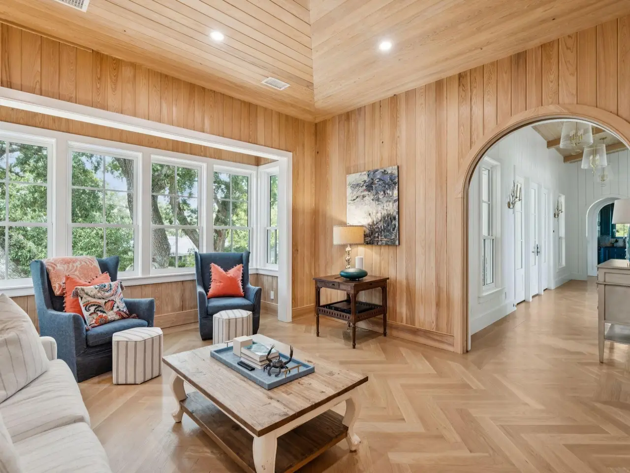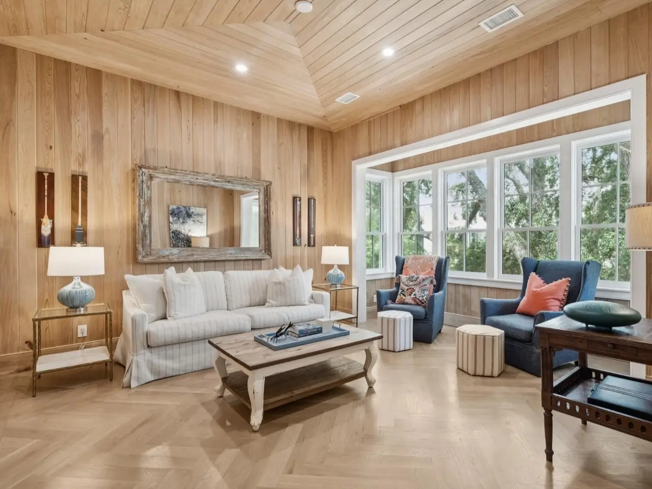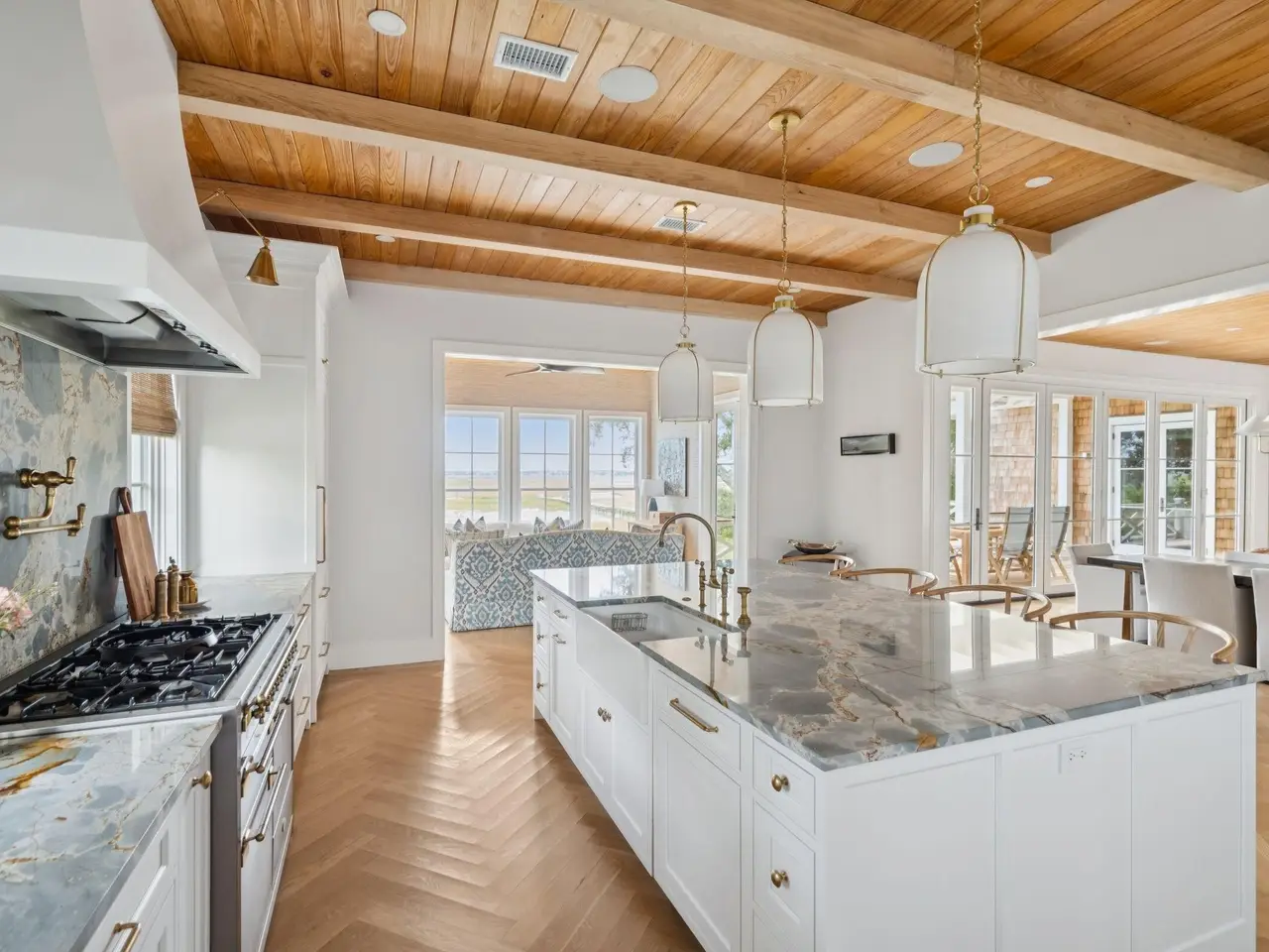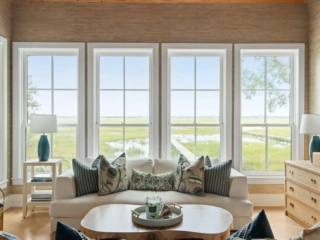 Welcome to Seven Oaks -- a newly completed (2024) generational estate tucked away on one of the most private lots in the Historic Old Village. Designed by Eric Daffron Architect, this waterfront retreat was crafted to capture sweeping views of Sullivan's Island, the Lighthouse, and the Intracoastal Waterway from nearly every room. A palm tree-lined drive sets the tone as you arrive at this sanctuary, where expansive marsh sunrises and timeless Lowcountry scenery surround you. Perfect for boaters, kayakers, and fishermen, the property offers rare direct water access from its private dock. At home, enjoy a resort-style infinity pool and multiple porches and terraces across three levels, all designed for outdoor living.Inside, the residence spans nearly 5,000 sq. ft. with 5 bedrooms, 5.5 baths, and an additional 2,300 sq. ft. of covered porches and decks. The main level centers on a light-filled open plan: living, dining, kitchen with scullery, and a keeping room. The vaulted primary suite offers its own private porch and spa-like bath. Also on the main floor are a study, mudroom/laundry, powder room, and a detached guest suite with ensuite bath. Upstairs, find a dreamy second living room with an expansive entertaining porch, three bedrooms, two baths, and a secondary laundry. An elevator connects every level, including the three-plus car garage. Throughout, the craftsmanship is unmatched herringbone white oak floors, bespoke millwork, and custom stonework elevate every detail. Set on an unusually large, high lot, Seven Oaks combines privacy, luxury, and rare deep-water access into one extraordinary Old Village offering.