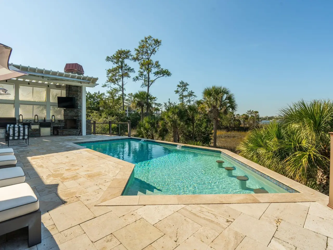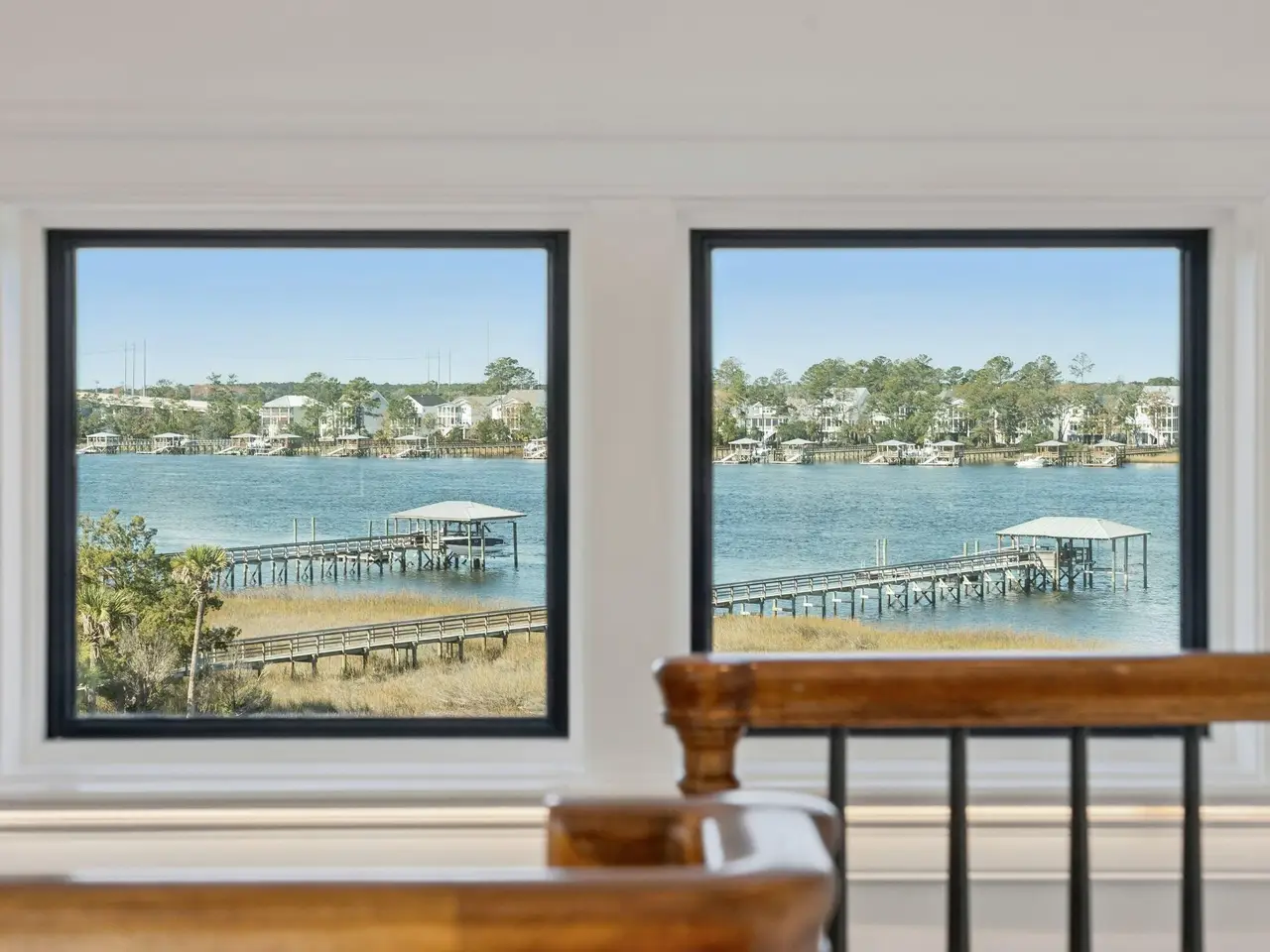 Experience the very best of Charleston waterfront living in this one-of-a-kind private estate. Nestled on a 1.55-acre lot along the Wando River within exclusive Dunes West, this breath-taking custom-built home blends modern elegance with the timeless charm of the Lowcountry. The property features a deep-water covered dock with a 10,000lb boat lift with a ''walk around'' platform, plus a large floater. Upon entering the home, you are immediately greeted by panoramic views of the Wando River. The interior features rich matte finished hickory floors and expansive windows that fil the space with natural light, creating a warm and inviting atmosphere.The gourmet kitchen is designed for both comfort and entertaining, showcasing a large center island, stainless steel appliances, a new 48-inch LG refrigerator, wine cooler, a Wolf gas range with double ovens, and an elegant wine bar - perfect for hosting gatherings or enjoying quiet evenings at home. The primary suite is located on the main level and features a gas fireplace and more breathtaking river views. The spa-inspired ensuite bathroom is complete with an oversized walk-in shower that opens to the dressing room. Recently updated, this impressive space includes a custom organizational system, designer lighting, and the convenience of in-suite laundry. Upstairs, you'll find three spacious bedrooms, each with its own private full bath and a second laundry room. From this level, a spiral staircase leads to a hidden loft-style retreat - a charming and versatile space ideal for reading, relaxation, or simply enjoying the views of the Wando River. The basement level features a media/game room with surround sound, a full bathroom, a custom mudroom, workshop, gym and climate-controlled storage. 3 car garage and an elevator to the above floors complete this level. Just off the main living room, step outside to your backyard oasis, where luxury and leisure meet. The expansive two-level terrace showcases a stunning heated saltwater pool surrounded by travertine tile, an outdoor kitchen with cooktop and gas grill for dining al fresco. A charming lit walkway leads directly to your private dock, completing this extraordinary waterfront retreat.