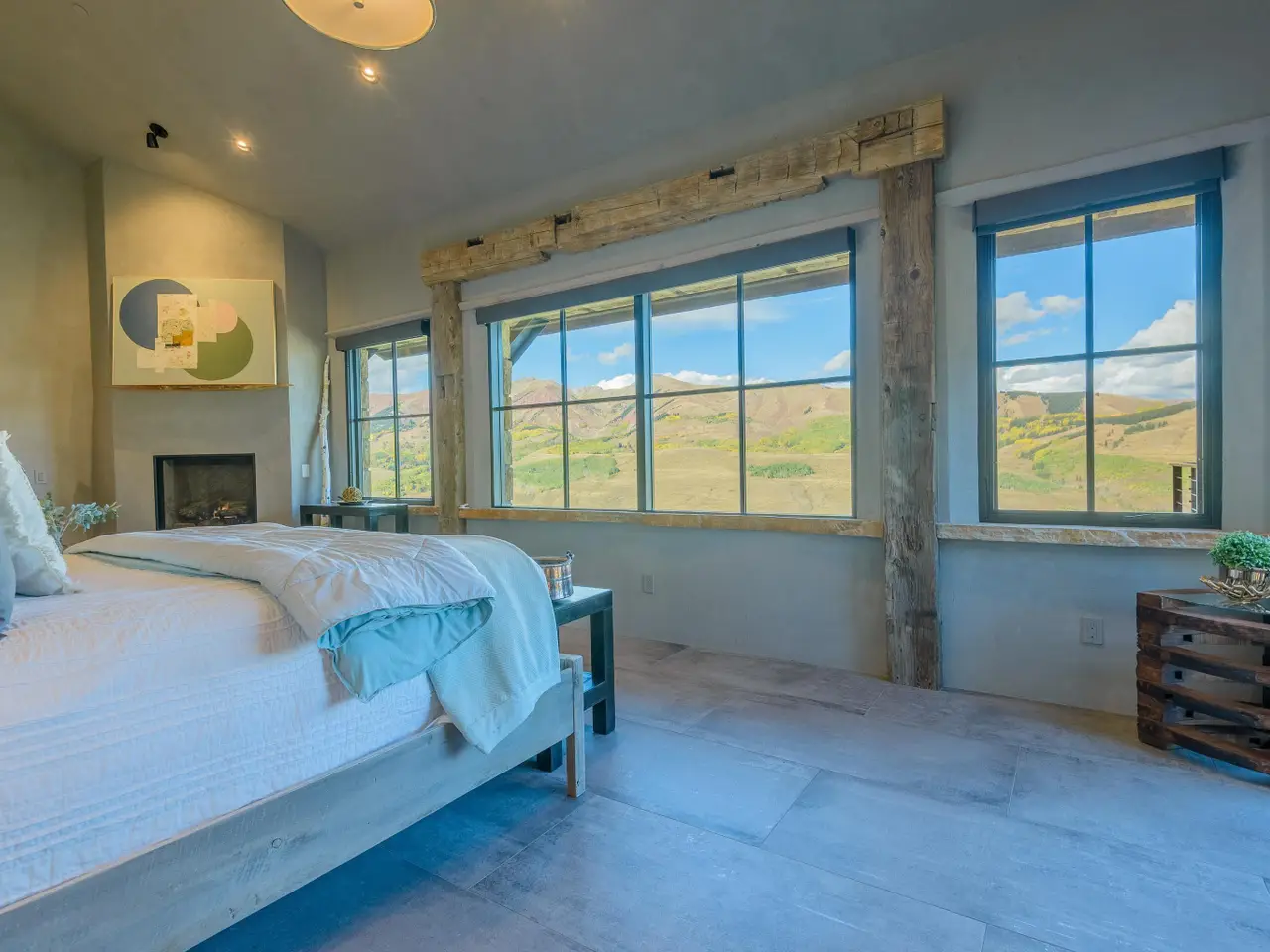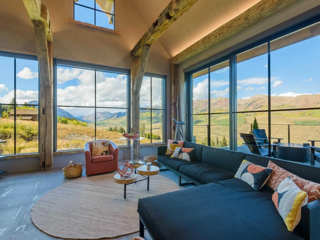 This home is a masterpiece created in the Prospect Subdivision and completed in 2020. Amazing views overlooking the East River Valley are highlighted from a wall of windows and the expansive decks. Beautiful rustic timbers and trusses are featured in the great room as well as throughout both levels. The kitchen boasts Wolf appliances, extensive refrigerator and freezer drawers slab countertops and a commercial hood system. The primary suite is located on the main level and features a fireplace, private deck, a walk through closet and wraparound windows. American Clay wall finishes are highlighted throughout the home as well as a fresh air recirculation system. There are three bedrooms each with an en-suite bath on the lower level as well as a sitting area, office and a family room that is currently being used as an art gallery and studio. There is a two car attached and heated garage with expansive storage space above. The homes's location in the ski-in ski-out subdivision of Prospect offers easy access to both ski trails in the winter and hiking and biking trails in the summer.