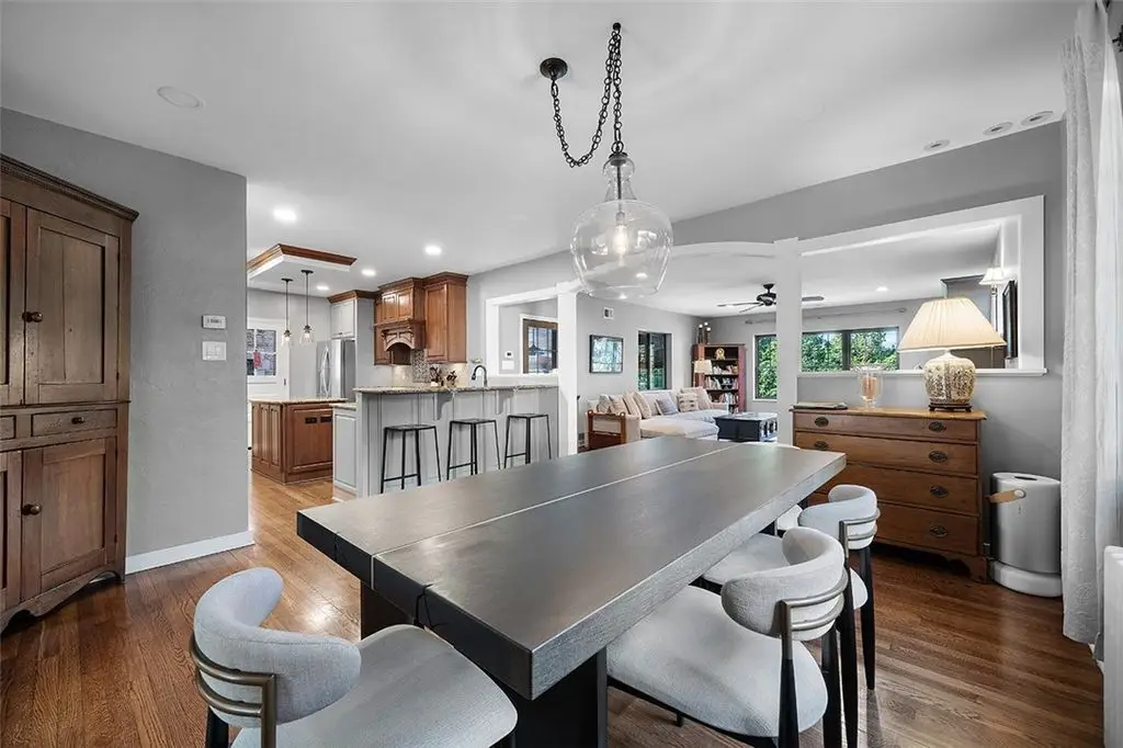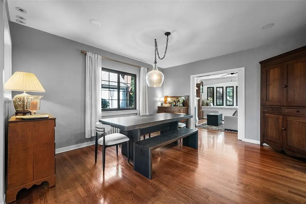 Charming brick Tudor sitting on a picturesque brick street offering 3 finished lvls of living space. Sun-filled rooms & timeless details include a 12' wdw seat tucked in a bowed LR wdw, HW that continue upstairs & wood-burning frpl. Pocket doors from LR lead to open concept DR & kit w/peninsula, isle & quaint corner desk- perfect for coffee or baking station. Sizeable family rm extends off the kit/DR highlighted by a huge triple window looking out to private, flat yard plus French door leading to 23x13 covered patio- ideal for outdoor entertaining. 3 comfortable 2nd lvl bedrms, including a primary ste w/updated en suite, 2 walk-in closets & 16x7 bonus space. Crisp white hall bath & sunny 12x6 den complete 2nd lvl w/landing leading to easily accessible 3rd floor w/bright & roomy 4th bedrm. Convenient powder rms on main & LL. Centrally located near schools, Uptown, shops & dining, this home combines character, comfort & convenience in one of the community's most desirable neighborhoods.