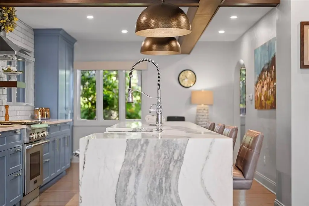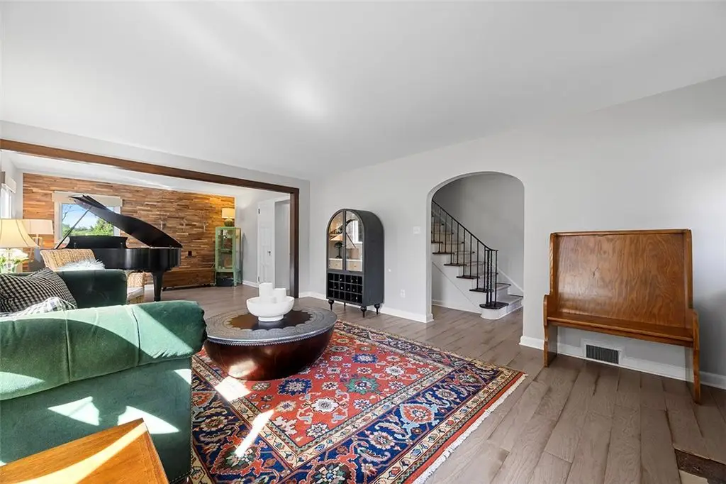 Charming Jr. Beam home in the heart of Mt. Lebanon, moments from schools, Uptown, dining, shopping & Rec Center! Modern fixtures & finishes blend beautifully w/original character - 8-panel doors w/glass knobs, plaster walls, hardwoods, archways, blt-ins & crown molding. Inviting LR features a stone fireplace flanked by built-ins & 12' opening to cozy den/lounge space, easily used as a DR. The show-stopping kitchen is a dream w/custom pale-blue cabinetry, quartz counters, floating shelves, 12' waterfall isle, beamed ceiling, hi-end appliances & coffee/beverage bar - all open to a spectacular family rm w/cathedral barrel ceiling, exposed brick, media wall, banquette dining space & French doors to spacious composite deck. Vaulted primary suite boasts a boutique-style en suite. Walk-out lower level ideal in-law or teen suite, gameroom, full bath, storage & mud rm/drop zone off 2-car garage. This remarkable home offers timeless charm, modern luxury and a prime Mt. Lebanon location.