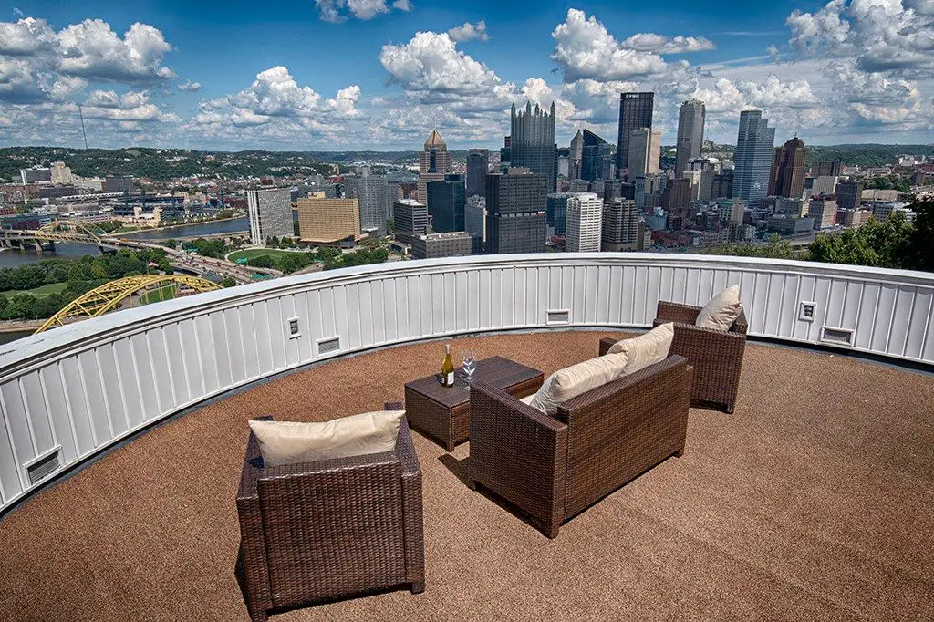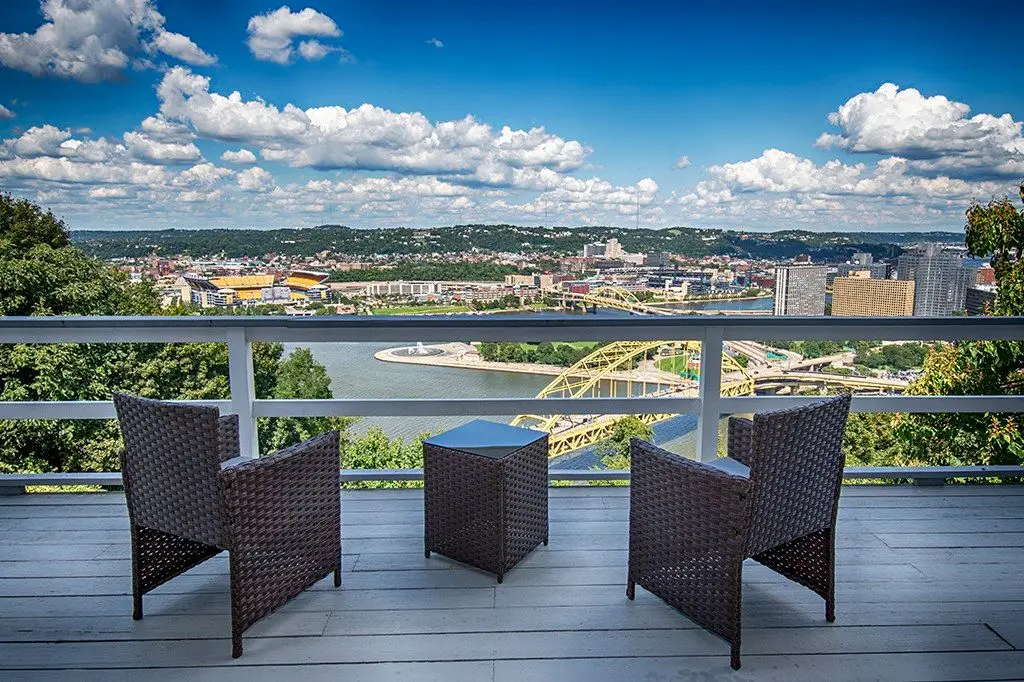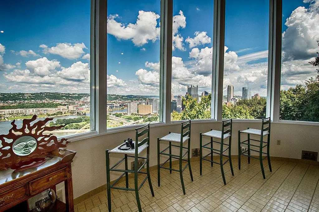 Perched above the Three Rivers with breathtaking, million-dollar views from every level, this remarkable home offers an unparalleled blend of city living and private retreat. Designed for entertaining, it boasts abundant parking, two semi-curved decks, and an open layout that brings the stunning skyline inside. The primary suite is a sanctuary with dual baths, a study, and generous closets. The updated kitchen features a raised dining area and breakfast bar overlooking Pittsburgh's sparkling lights. Gather by the dramatic floor-to-ceiling fireplace or relax in the spacious lower-level game room, perfect for a theater or hobby space. With over 3,300 sq ft, integral garage, and walkable access to the city's finest dining, cultural attractions, sporting events, and the incline, you truly have it all - right "behind the gates." This is your chance to own a unique city oasis where every day feels like a getaway and the iconic views are yours to savor forever.