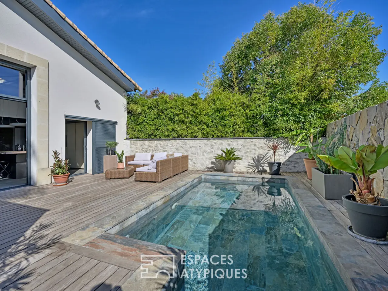 Located in Lattes, in a peaceful neighborhood surrounded by greenery and just minutes from the town center, shops, schools, and transport links, this fully renovated former winery offers 155 sqm of living space and combines authenticity with modern comfort. Upon entering, the living room impresses with its high ceilings and brightness. The open kitchen blends harmoniously into this cathedral-style space, ideal for sharing convivial moments. The unique character of the place is revealed in the stone walls, metal beams, and wood-burning stove, which create a warm atmosphere. A ground-level bedroom with a dressing room, a contemporary bathroom, a laundry room, and a glass-enclosed office complete this level. The upper floor features a mezzanine, two bedrooms with built-in storage, and a bathroom equipped with a shower, bathtub, and toilet. Comfort is enhanced by ducted air conditioning, aluminum double glazing, and excellent energy performance. Outside, a large south-facing wooden terrace extends towards a Balinese-style swimming pool, a real invitation to relax. A practical storage room and private parking spaces inside the plot complete the ensemble. Between historical character, quality renovation and contemporary atmosphere, this house seduces with its originality and its privileged setting, both calm and close to all amenities. ENERGY CLASS: B - 104 / CLIMATE CLASS: A - 3 Estimated average amount of annual energy expenditure for standard use, established from the energy prices of the years 2021, 2022, 2023: between EUR1150/year and EUR1620/year. Information on the risks to which this property is exposed is available on the Georisques website for the areas concerned. REF. 12597 Additional information * 5 rooms * 3 bedrooms * 1 bathroom * 1 bathroom * Outdoor space : 200 SQM * Parking : 4 parking spaces * 2 co-ownership lots * Proceeding : Non Energy Performance Certificate Primary energy consumption b : 104 kWh/m2.year High performance housing