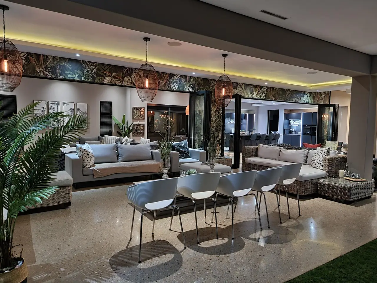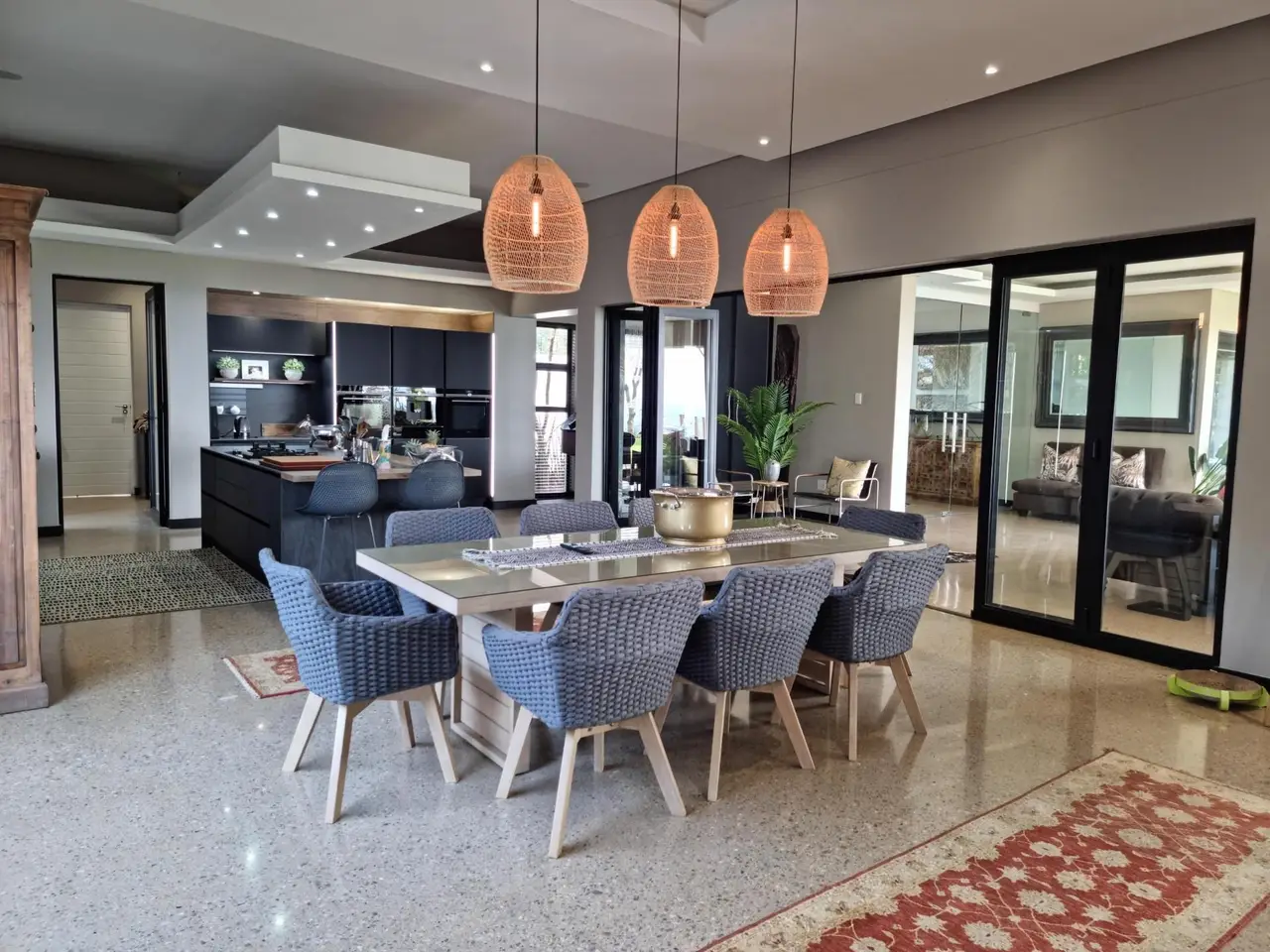 Nestled in the sought-after Mtunzini River Estate, surrounded by majestic views and stunning birdlife lies this splendid home. From the second you enter this marvel you are embraced and embroiled by its magnificent designs and features. The attention to detail and interior design is by far unrivaled. The kitchen was imported from Germany ensuring you the highest quality and finishes. Prepare your five-star meals in your personal built-in Chef's oven and enjoy your morning coffees prepared by your superlative fitted coffee machine. Each ultra-modern bedroom is surrounded by scenic and pool views, fitted with the finest open plan ensuite bathrooms. Entertain your family and friends in an entertainment area that will leave your guests speechless and amazed. Moreover, enjoy your personal cinema room fitted with only the finest equipment, and yet still surrounded by scenic views. Appreciate quiet walks down your personal staircase leading to your private deck, and the beneficial aspect of sustainability with your home powered by solar and the purest borehole water thanks to your reosmaosas plant. What better way to walk into your home on a Friday looking forward to the weekend. Contact me for a personal tour of this marvel to truly understand and grasp the concept of what this home has to offer, and make it your home.
