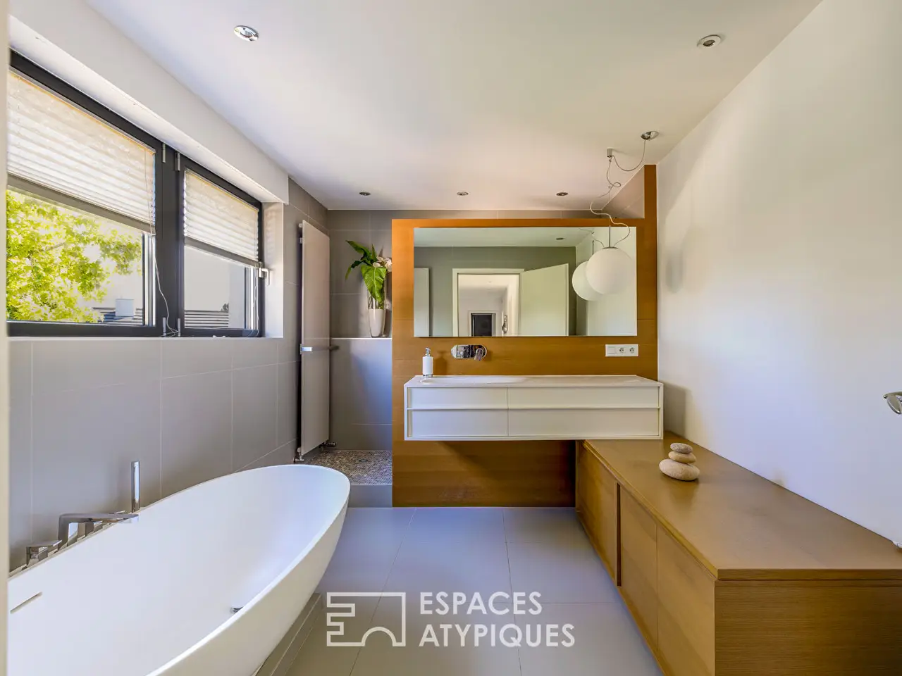In the heart of the sought-after Rebberg neighborhood, this 282 m2 family home sits on 12 acres of landscaped grounds. Built in a desirable residential area, it offers a rare balance between modern comfort and quality of life. Its generous proportions, abundant natural light, and high-quality finishes are immediately appealing. The swimming pool, tree-lined garden and exceptional location are rare assets on the local real estate market. The interior spaces are distinguished by their fluid and convivial layout. Upon entering, the ground floor reveals a vast, light-filled living room, extended by a welcoming dining room. A bedroom with an en-suite shower room offers a functional sleeping area that is suitable for everyday life as well as for entertaining guests. The separate kitchen, equipped with a pantry, combines practicality and storage space. A laundry room completes the ground floor. The first floor opens onto an elegant mezzanine that leads to a master suite with a dressing room and shower room, as well as three additional bedrooms, a bathroom, and a separate shower room. Each space is air-conditioned, ensuring comfort and well-being in all seasons. The exterior confirms the unique character of the property. The carefully maintained landscaped garden is a true haven of greenery, harmoniously integrating the swimming pool. The orientation and size of the plot offer privacy and tranquility, while maintaining close proximity to amenities. The Rebberg district, renowned for its calm and residential environment, offers schools, local shops, and walking areas just a few minutes away. A large cellar and a spacious garage complete the amenities of this property. Its unique character, combining contemporary comfort and timeless elegance, makes it a rare opportunity on the local real estate market. Shops 10 minutes' walk away Schools 5 minutes' walk away Transport (tram, bus, highway) 10 minutes' walk away REF. 1614 Additional information * 6 rooms * 3 bathrooms * Outdoor space : 1200 SQM * Property tax : 5 440 € Energy Performance Certificate Primary energy consumption c : 107 kWh/m2.year High performance housing