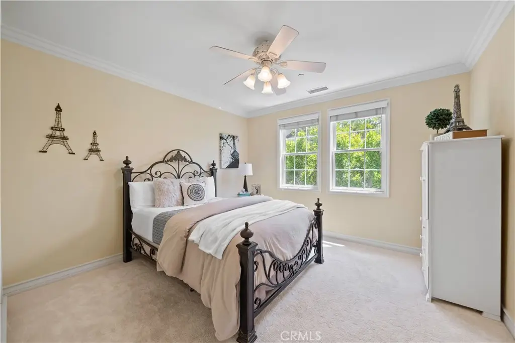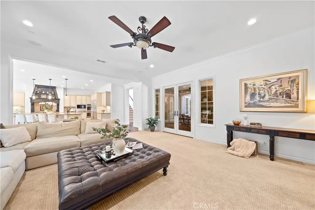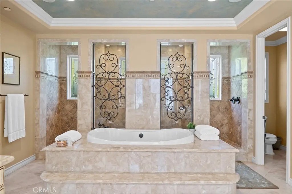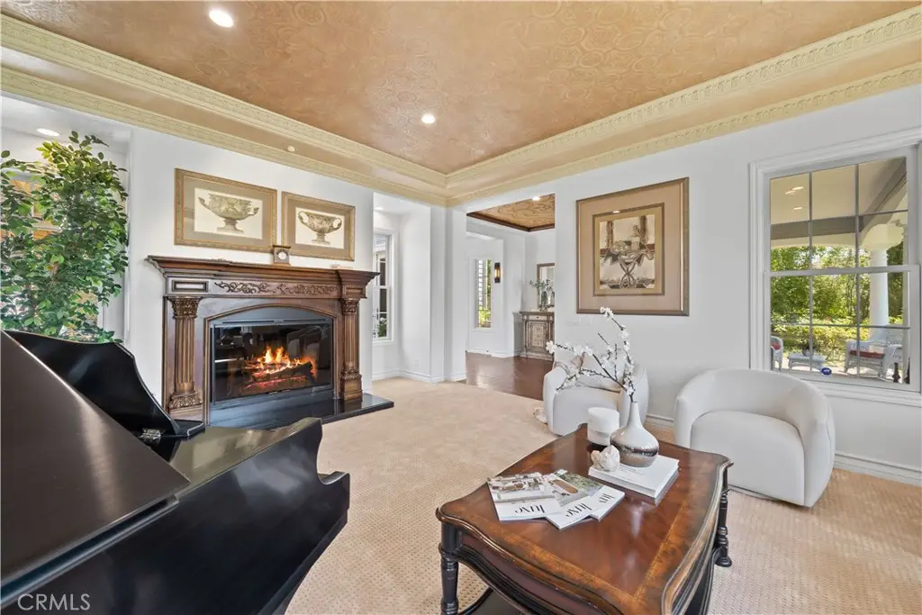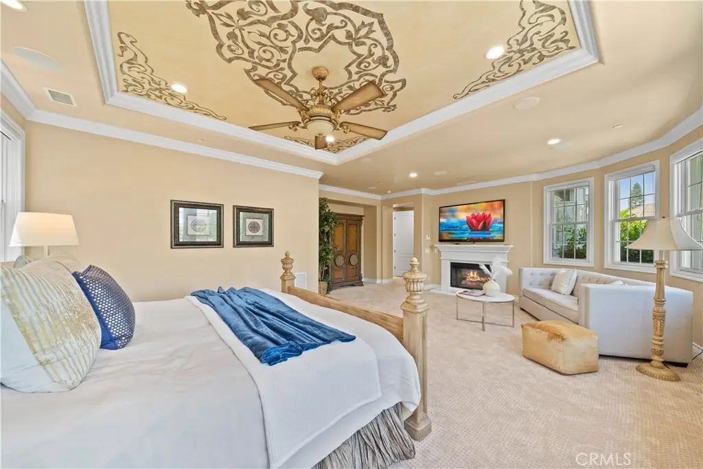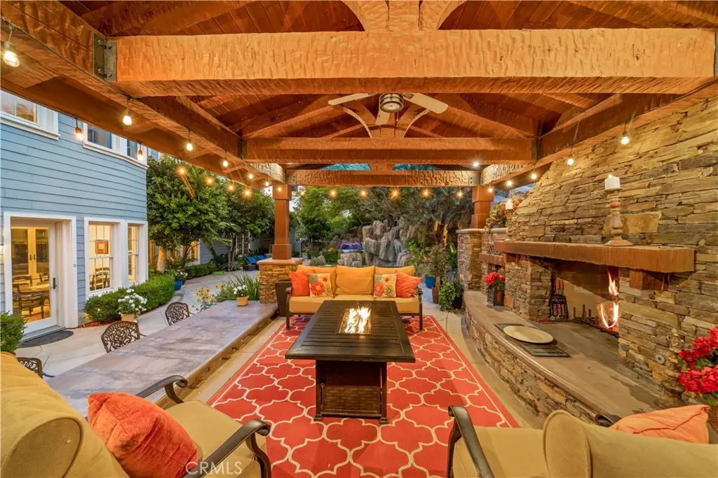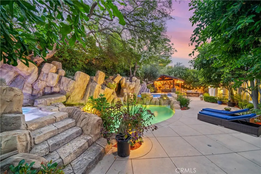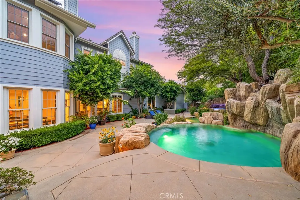 Nestled within the prestigious equestrian community of Nellie Gail Ranch, this meticulously upgraded residence is situated at the heart of a quiet, tranquil, pride of ownership interior cul-de-sac. Spanning nearly 6,000 square feet, this traditional estate offers five bedrooms, five and one-half baths, a dedicated bonus room, billiard parlor, and upper library, providing an exceptional breadth of living spaces for distinguished residents and their guests. The already expansive interior is complemented by a magnificent exterior designed for opulent entertaining and recreation. A private lanai, adorned with sophisticated stone accents and a charming fireplace, sets the stage for al fresco dining and relaxed evenings. Beyond the lanai, a resort-style rock pool captivates with cascading waterfalls, a thrilling 35-foot slide, and a walk-in kiddie pool, ensuring endless hours of enjoyment. French doors invite a seamless transition to private interior courtyards, creating an elegant flow ideal for both intimate gatherings and grand celebrations. The billiard parlor provides a setting for engaging games, while the upper bonus room offers a secluded space for cinematic indulgence. Culinary artistry flourishes in the gourmet kitchen, equipped with a custom mastery stove hood, a spacious seating island, stainless steel appliances, abundant granite countertops, a convenient butler's pantry, and an integrated desk. The lavish primary suite serves as a serene retreat, featuring a romantic fireplace and a spa-inspired primary ensuite with its own private deck, perfect for peaceful morning escapes. Throughout the residence, exquisite interiors are a testament to superior design, showcasing coffered ceilings with custom details, Venetian plastered walls, elegant crown molding, designer paint, bespoke built-ins, sophisticated custom lighting, and stunning wood flooring, among numerous other refined elements. Beyond the boundaries of this exceptional property, residents of Nellie Gail Ranch enjoy an unparalleled lifestyle enriched by world-class amenities. The community boasts access to 25 miles of equestrian trails, a community clubhouse, tennis center with 12 championship courts, a swimming pool, and numerous parks and green spaces perfect for picnics and relaxation. Nellie Gail Ranch's convenient Laguna Hills location provides the tranquility of a semi-rural setting with easy access to the various vibrant attractions beloved by Orange County residents. Welcome home!