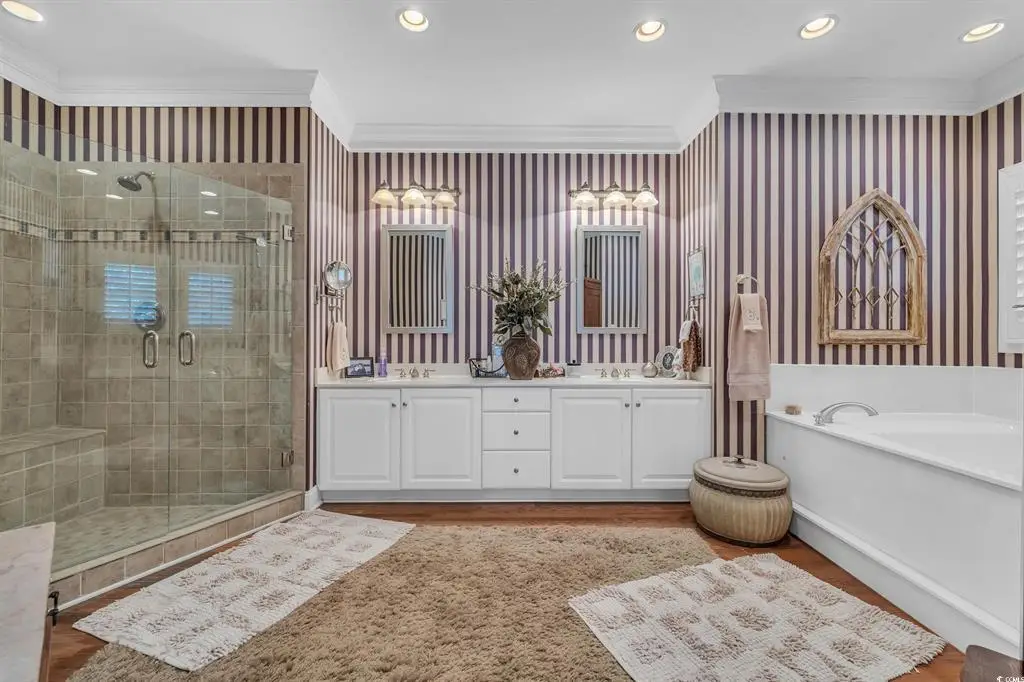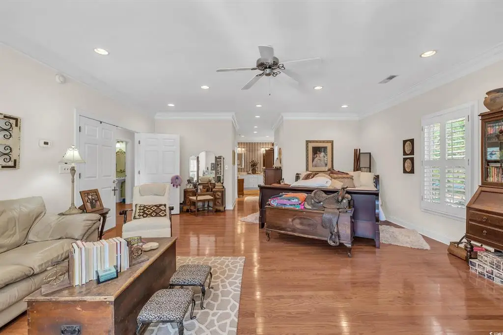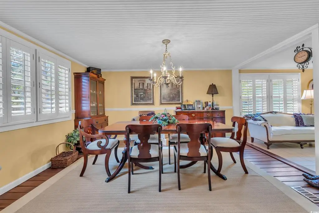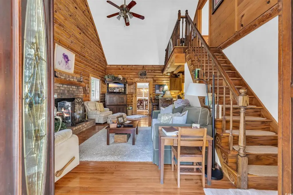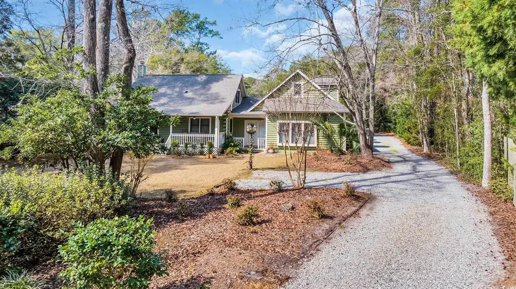 Tucked away in a gated, secluded area, this beautifully maintained 4-bedroom, 4.5-bath log cabin blends Lowcountry charm with modern convenience. Originally built in 1982 and thoughtfully expanded in 2002 using timber from the property, this home sits on a serene one-acre lot surrounded by majestic oaks and mature landscaping. Inside, plantation shutters throughout enhance the home’s rustic elegance. The spacious owner’s suite features a propane fireplace, two walk-in closets, walk-in shower and a luxurious soaking tub. The unique layout offers two separate upstairs areas, one with a bedroom and half bath, and another with a spacious loft, bedroom, and full bath, providing versatile living space. This home boasts two distinct sitting areas, offering both functionality and flexibility. One serves as a cozy retreat, perfect for relaxing by the fire, while the other is ideal for gathering and entertaining. A generous laundry room and ample storage throughout add to the home's convenience. Out back, a detached mother-in-law suite with a full kitchen and bath provides a private space for guests or extended family. The property also features a large built-in wall safe, ensuring extra security and peace of mind. The oversized two-bay garage is perfect for RV or boat storage, a workshop, or additional storage needs. Ideally located just minutes from Wacca Wache Marina, the Marsh Walk, Huntington Beach State Park, and Brookgreen Gardens, this one-of-a-kind log cabin offers both privacy and easy access to the best of Murrells Inlet.