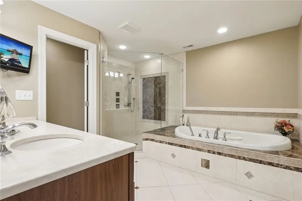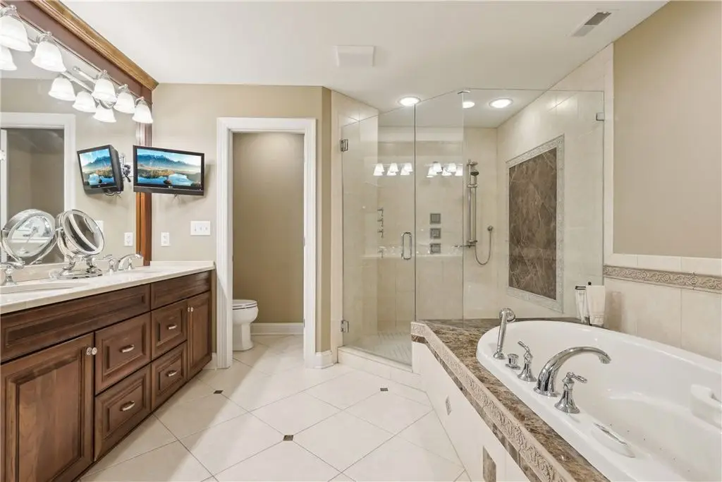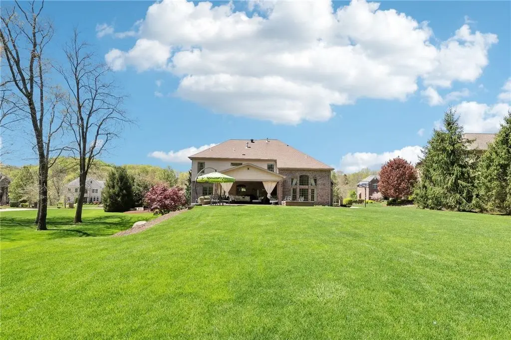 Beautiful brick 2 story home by award winning Suncrest Homes. Built on a level 1.2-acre park-like yard. Large exterior patio (22x20 is under roof) with an outdoor fire pit and hot tub pad. The first floor features: beautiful hard wood flooring, chef's fully equipped kitchen with Wolf range, 2 dishwashers and island seating. The living and dining room are off the stunning foyer. The den/5th bedroom has an adjoining full bath. Large family room with gorgeous fireplace and 14ft ceiling. The second floor is where you will find the master bedroom with gas fireplace, large ensuite bath with custom step in shower, jetted tub, generously sized master closets, and another room that would make a great nursery or awesome closet/ dressing room. Bed 2 has its own ensuite bath, beds 3 and 4 share a jack n jill bath. Finished ll w /full bath, office and game room with built ins, fireplace, wet bar, walk out basement. Oversized 3 gar garage. Minutes from Route 22, the schools, shopping & restaurants.