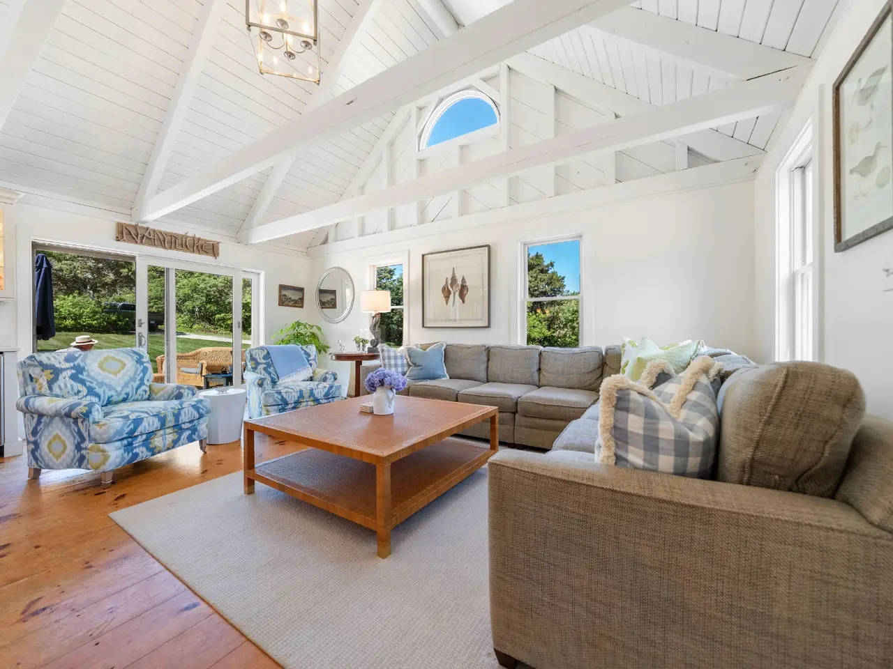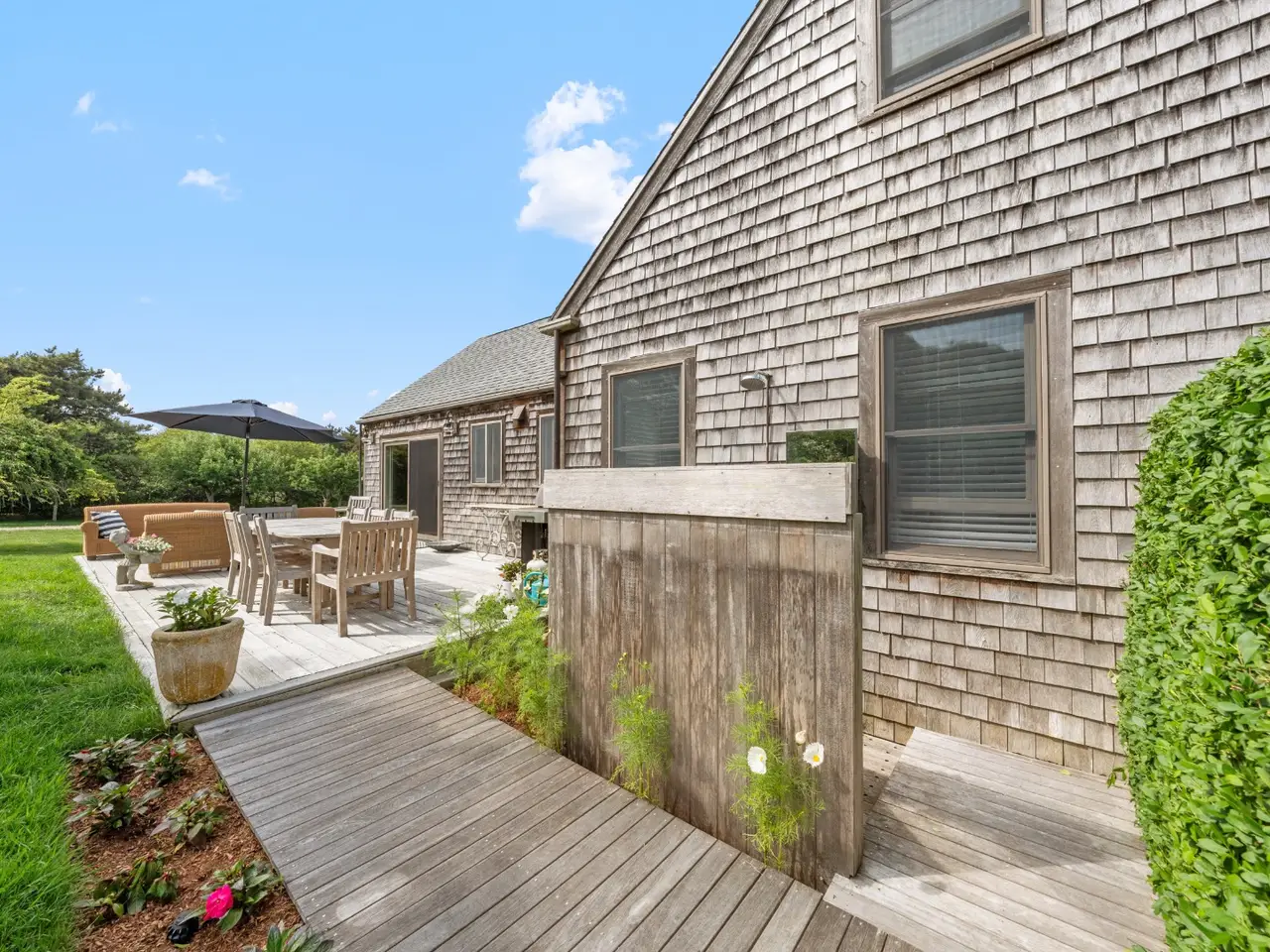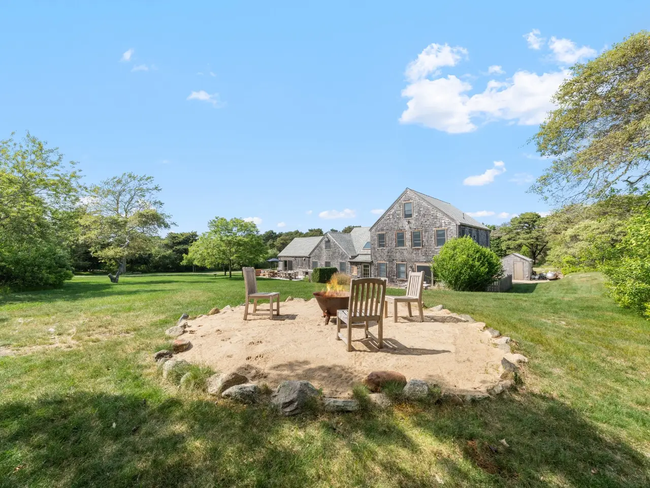 Minutes away from NGC, and including 2 complete homes. 12 Longwood Dr. is a magical property surrounded by manicured lawns and mature natural vegetation. The long winding driveway passes the 2 bedroom Guest Cottage before continuing down a slight grade to the expansive 4 bedroom Main House site. The Main House has an open floor plan with a cathedral ceiling living room, connected to a long hallway, creating privacy for the bedrooms. At the end of the hallway is the TV room. Two outdoor decks, a fire pit, and an apple orchard that produces different varieties, as well as a fruit-bearing pear tree, add to the special ambience of this property. A private path leads to the milestone bicycle path and easy access to Sconset Village. Across Milestone road are hundreds of acres of conservation land, cranberry bogs and miles of trails to walk or bike. Multiple locations available for a pool and a pool cabana or Tennis court.
