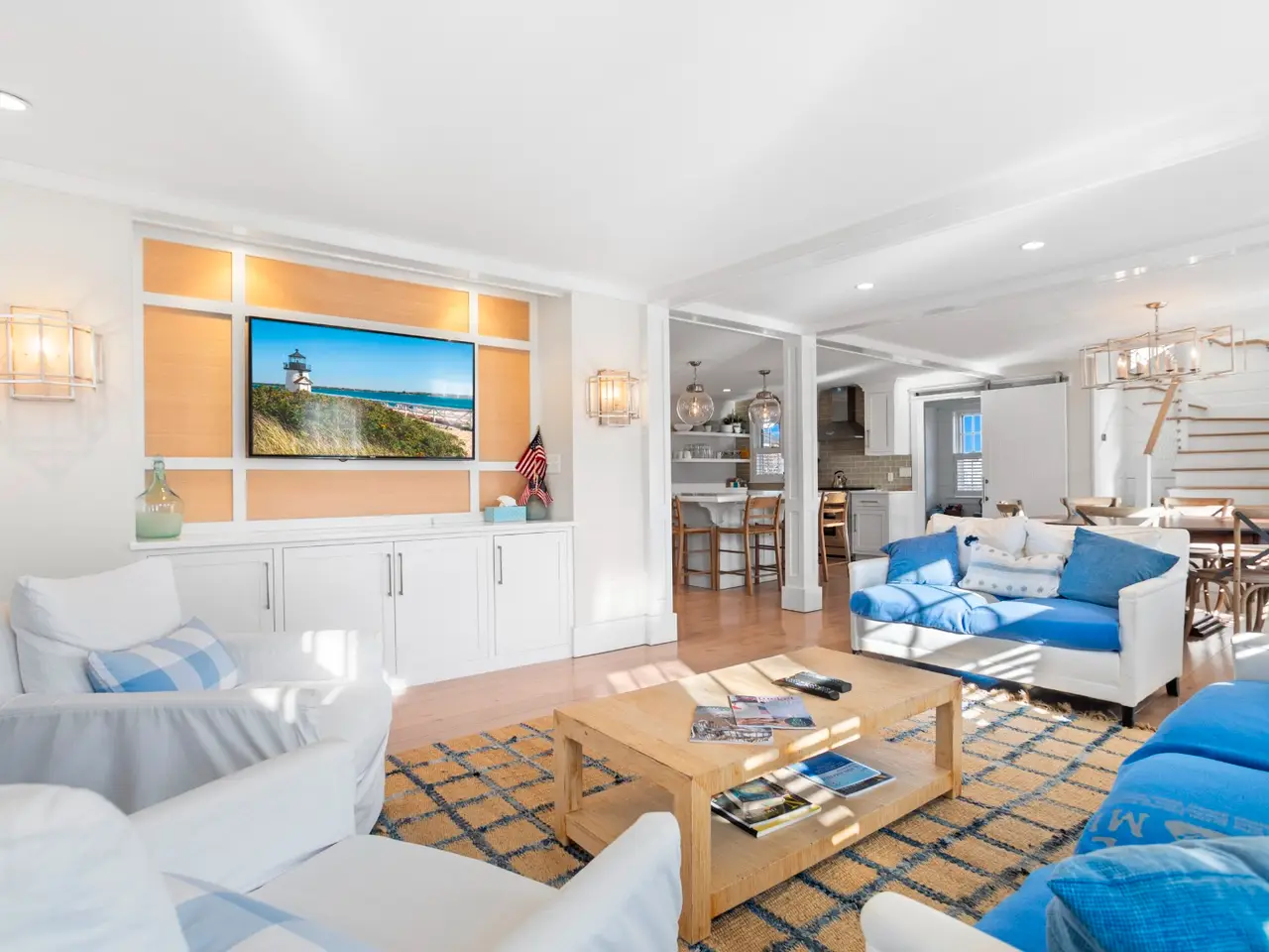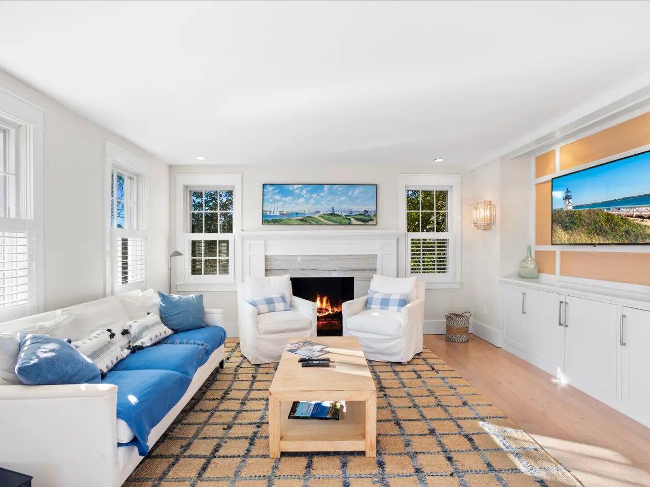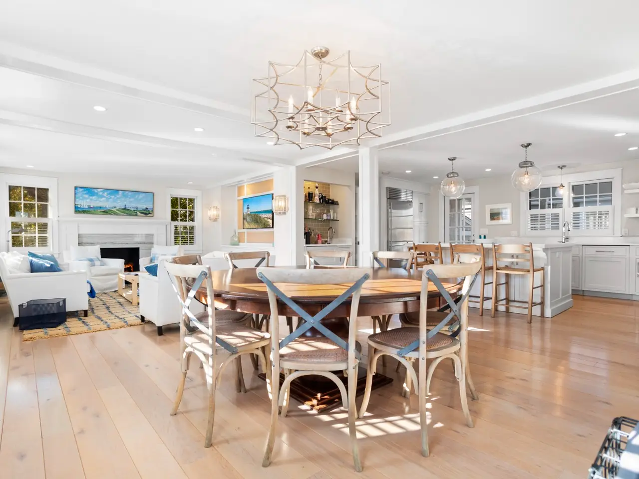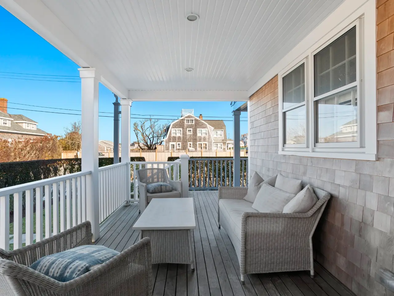 Situated in stunning Brant Point, this idyllic area boasts picturesque harbor views and is conveniently located across from the iconic White Elephant and next to downtown Nantucket. Both the main house and adjacent cottage are beautifully renovated blending classic Nantucket charm with modern design. The main house is four bedrooms with en-suite baths plus mudroom and powder room and a surprise sleeping nook with full bath. The first level features an open floor plan flooded with sunlight. A comfortable living room with ample seating orients around a fireplace and flows into a spacious dining area û creating a seamless space for entertaining. The kitchen acts as the central gathering area with bright, White Rino marble countertops, a large eat-in center island, fully equipped bar and top-of-the-line appliances. Open shelving and tiled accent walls add character and a touch of color. A deck is accessed off the kitchen with seating that flows down to a bluestone patio for additional outdoor entertaining. The "Love Shack" guest house is ideal for company overflow with a one-bedroom, beautiful ensuite bath and a quaint yet modern cottage kitchen with eat-in island and open seating area.