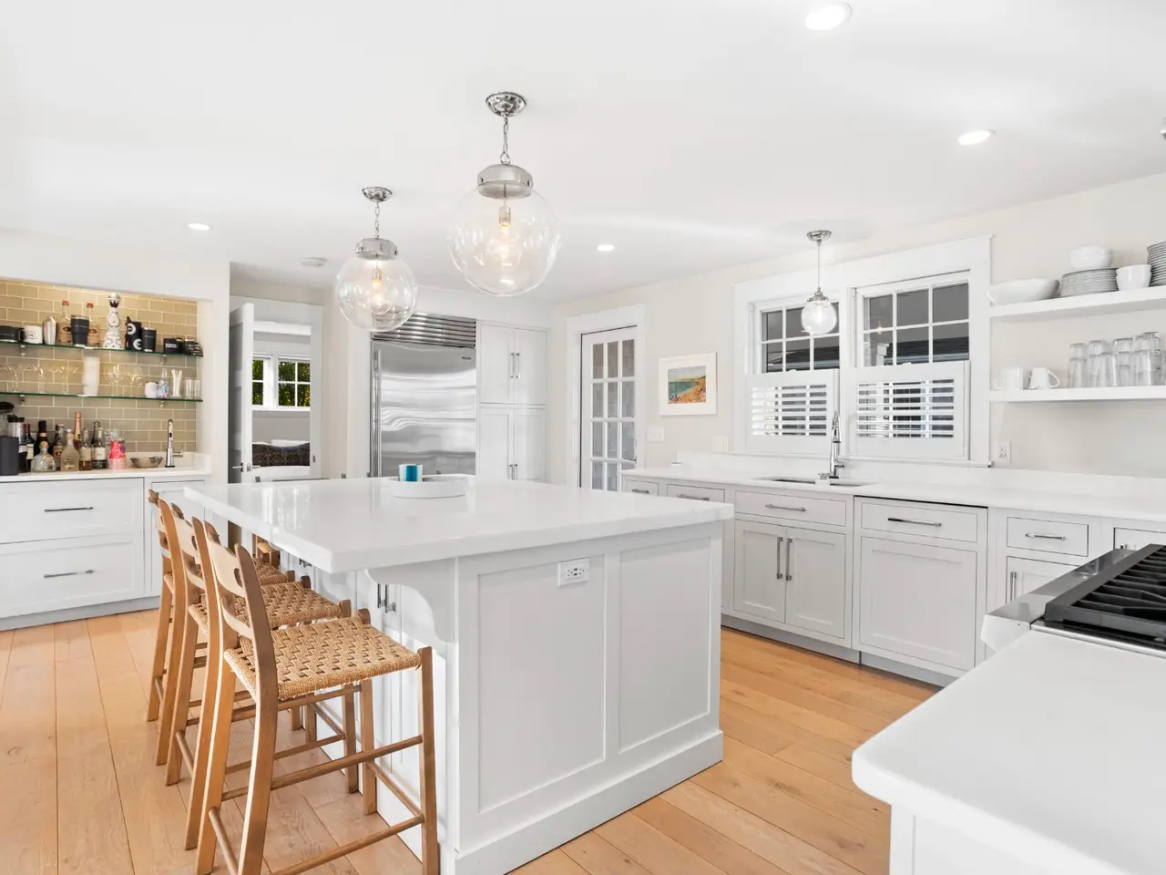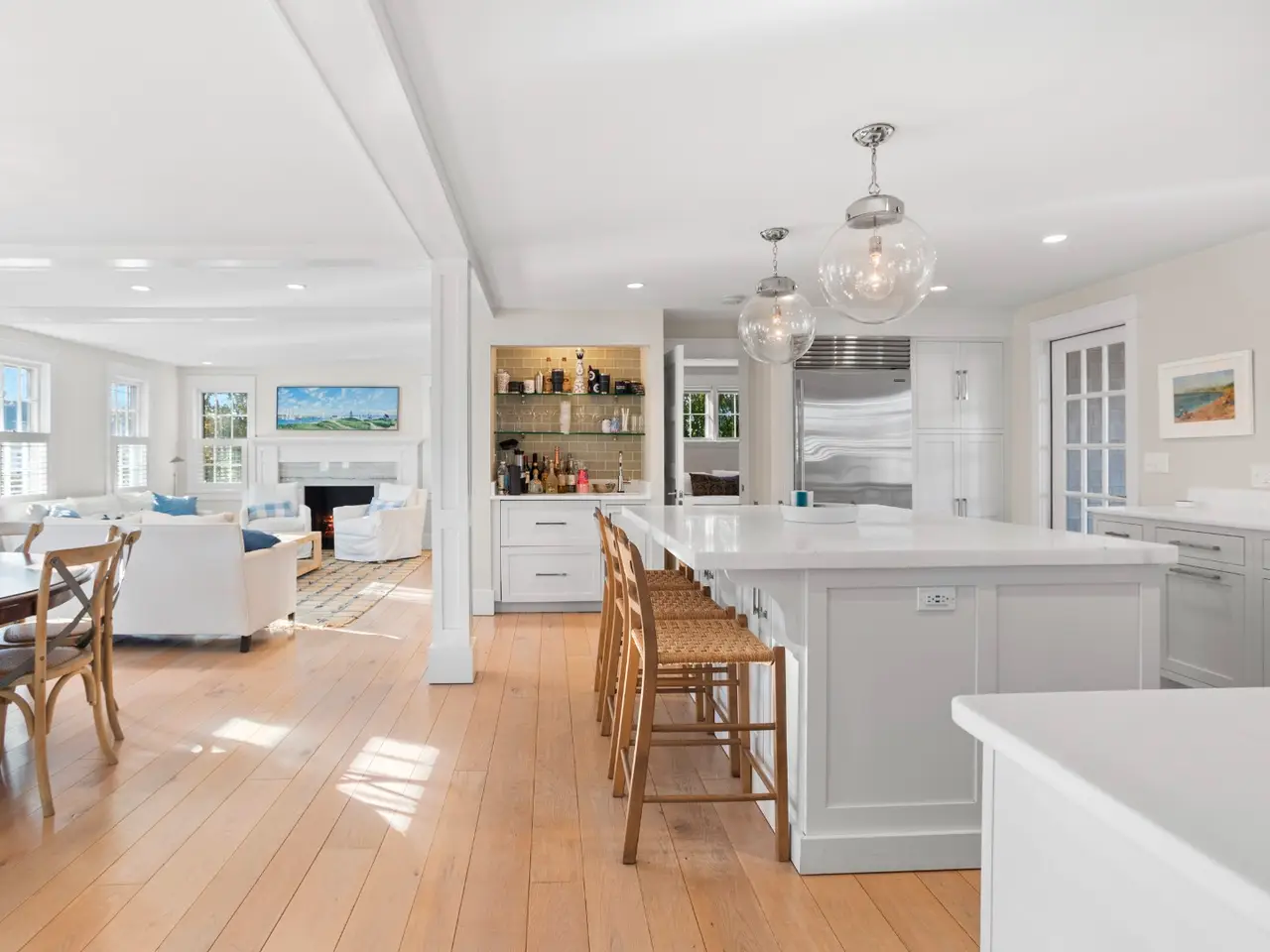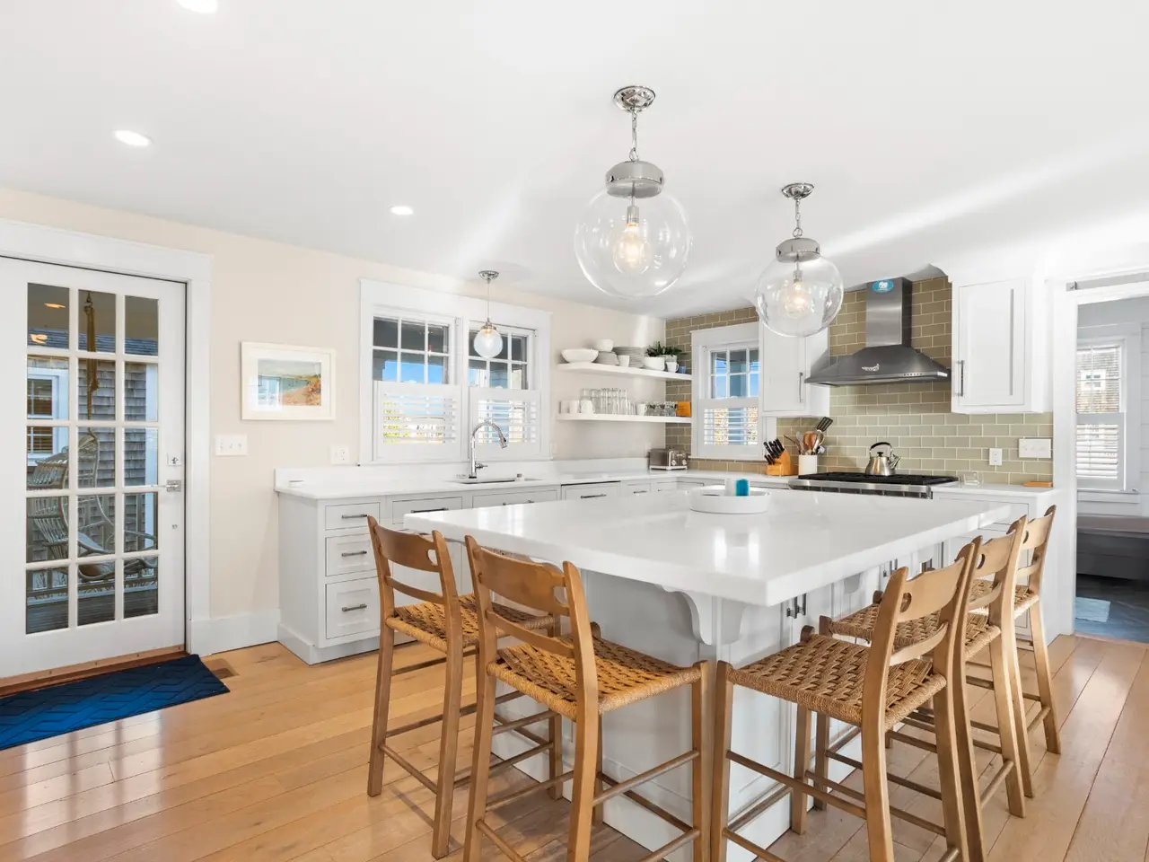 Situated in stunning Brant Point, this idyllic area boasts picturesque harbor views and is conveniently located across from the iconic White Elephant and next to downtown Nantucket. Both the main house and adjacent cottage are beautifully renovated blending classic Nantucket charm with modern design. The main house is four bedrooms with en-suite baths plus mudroom and powder room and a surprise sleeping nook with full bath. The first level features an open floor plan flooded with sunlight. A comfortable living room with ample seating orients around a fireplace and flows into a spacious dining area û creating a seamless space for entertaining. The kitchen acts as the central gathering area with bright, White Rino marble countertops, a large eat-in center island, fully equipped bar and top-of-the-line appliances. Open shelving and tiled accent walls add character and a touch of color. A deck is accessed off the kitchen with seating that flows down to a bluestone patio for additional outdoor entertaining. The "Love Shack" guest house is ideal for company overflow with a one-bedroom, beautiful ensuite bath and a quaint yet modern cottage kitchen with eat-in island and open seating area.