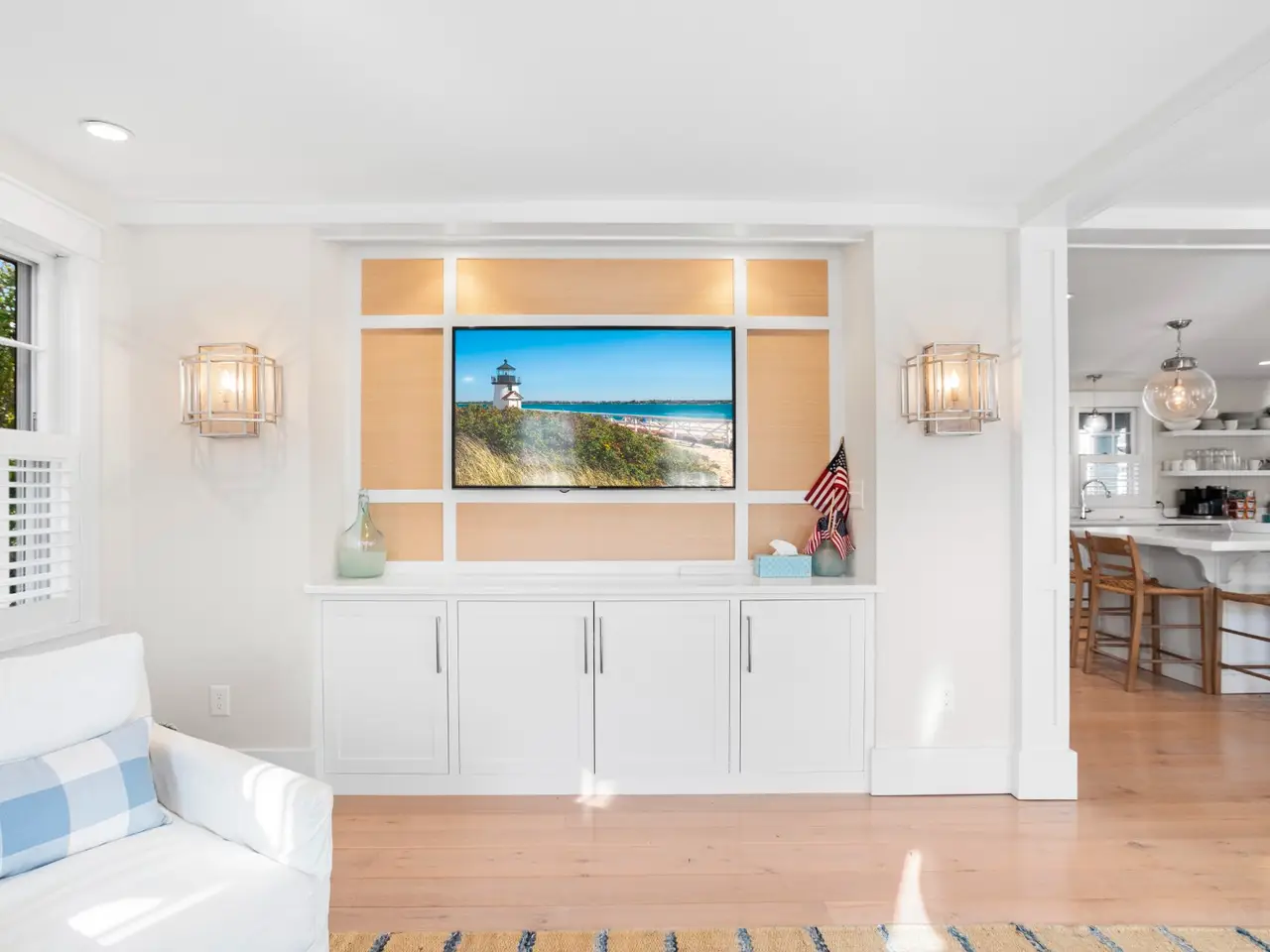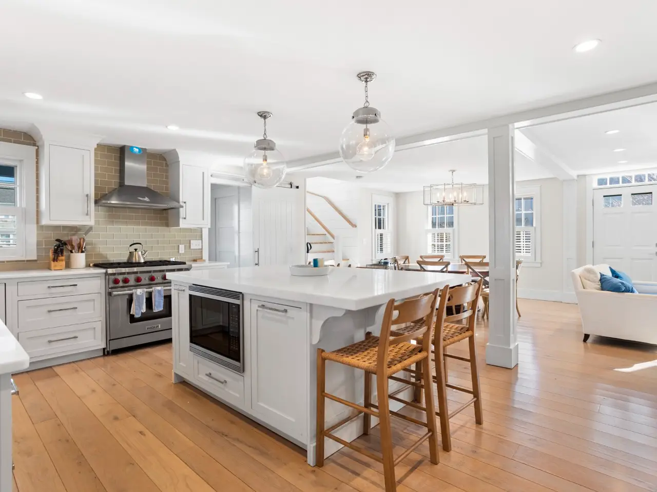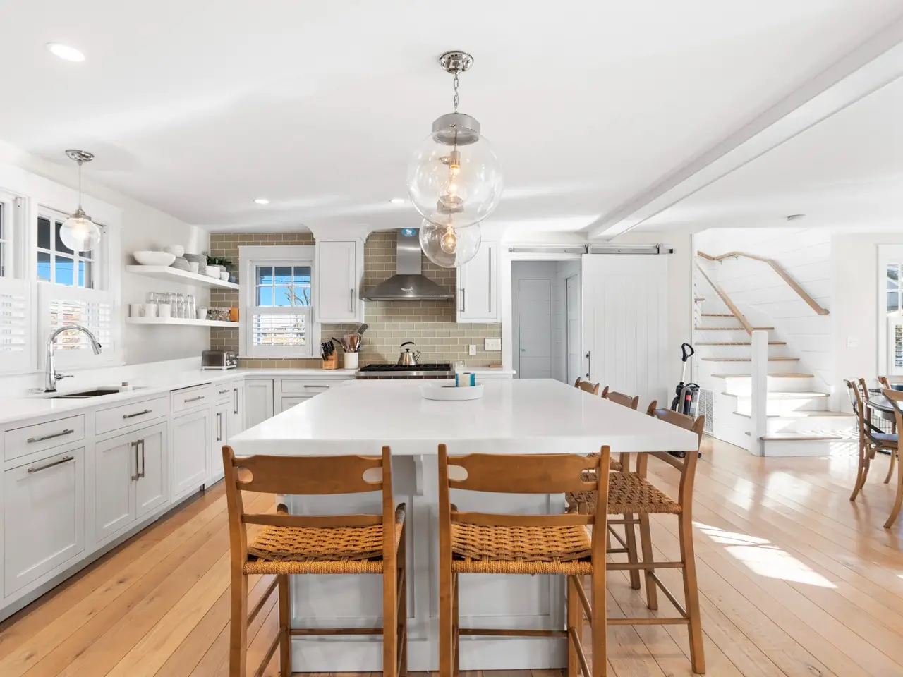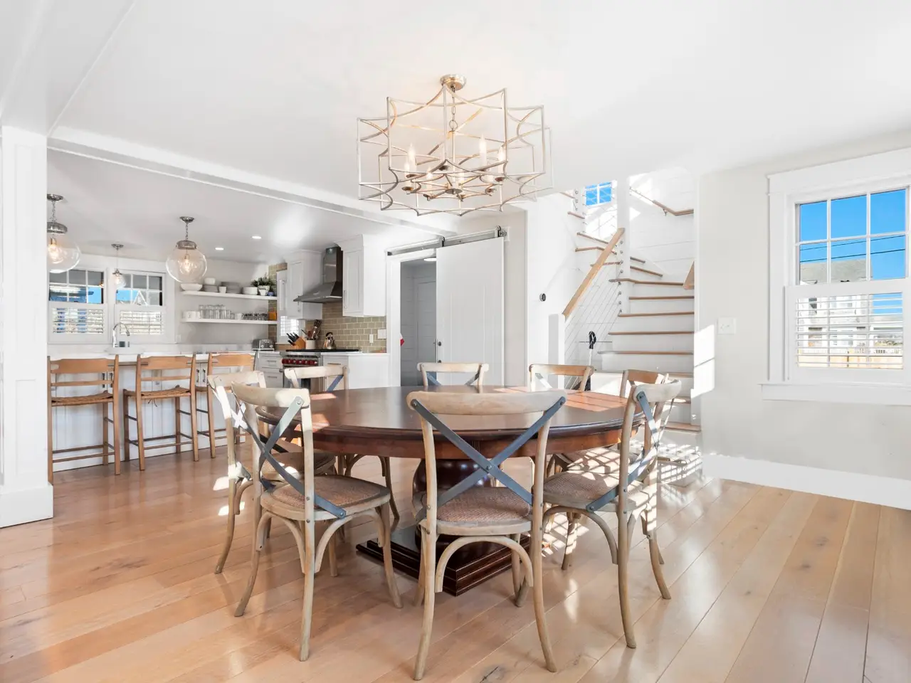 Situated in stunning Brant Point, this idyllic area boasts picturesque harbor views and is conveniently located across from the iconic White Elephant and next to downtown Nantucket. Both the main house and adjacent cottage are beautifully renovated blending classic Nantucket charm with modern design. The main house is four bedrooms with en-suite baths plus mudroom and powder room and a surprise sleeping nook with full bath. The first level features an open floor plan flooded with sunlight. A comfortable living room with ample seating orients around a fireplace and flows into a spacious dining area û creating a seamless space for entertaining. The kitchen acts as the central gathering area with bright, White Rino marble countertops, a large eat-in center island, fully equipped bar and top-of-the-line appliances. Open shelving and tiled accent walls add character and a touch of color. A deck is accessed off the kitchen with seating that flows down to a bluestone patio for additional outdoor entertaining. The "Love Shack" guest house is ideal for company overflow with a one-bedroom, beautiful ensuite bath and a quaint yet modern cottage kitchen with eat-in island and open seating area.