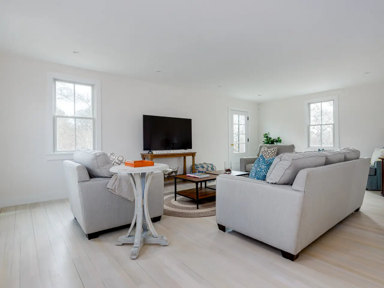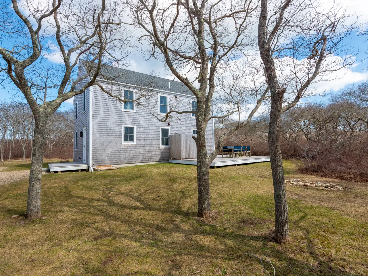 Set on one of the most picturesque lots in Tom Nevers East, this newly renovated 4-bedroom, 2.5-bath home offers the perfect blend of comfort, privacy and natural beauty. Surrounded by a tree-covered lawn and backing up to 28 acres of protected Land Bank property, the 1.1-acre parcel provides space to unwind and room to breathe. Yes, there IS room for a pool!! Inside, youÆll find gleaming hardwood floors, new Anderson 400 Series windows and a fresh, modern feel throughout. The spacious mahogany deck and outdoor shower invite you to soak in the Nantucket lifestyle, whether youÆre entertaining guests or enjoying a quiet moment outdoors. This home has never been used as a vacation rental, giving you the rare opportunity to be the first to create lasting memories in a space that feels brand new. Residents of Tom Nevers East enjoy access to community tennis courts and are just minutes from the stunning beaches along the South Shore. Whether you're looking for a peaceful year-round retreat or a summer escape, this property delivers laid-back island living at its best.