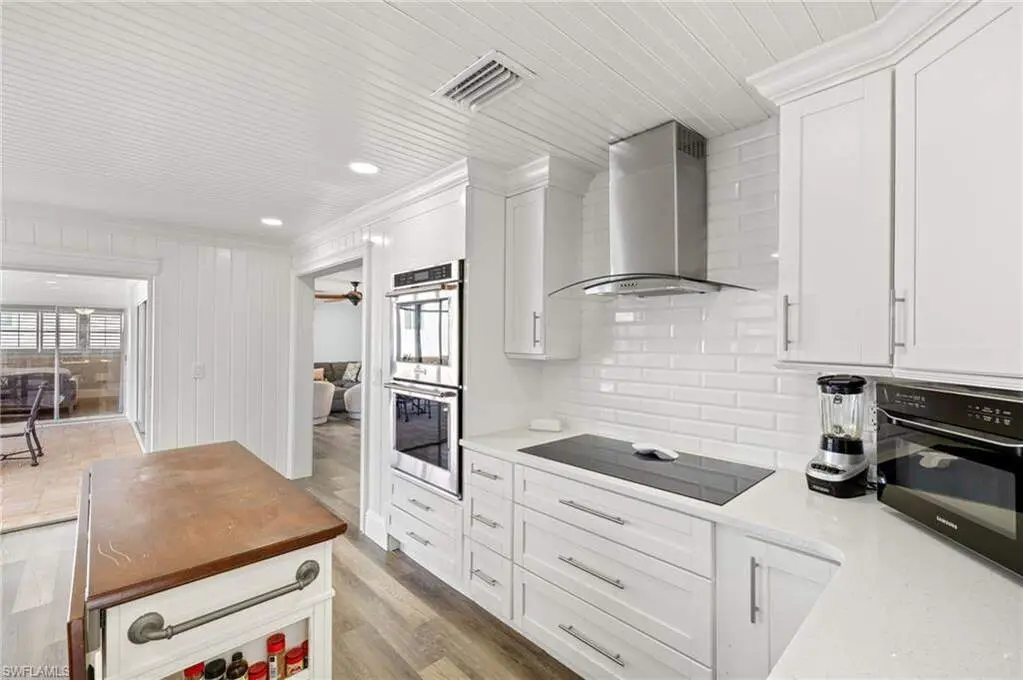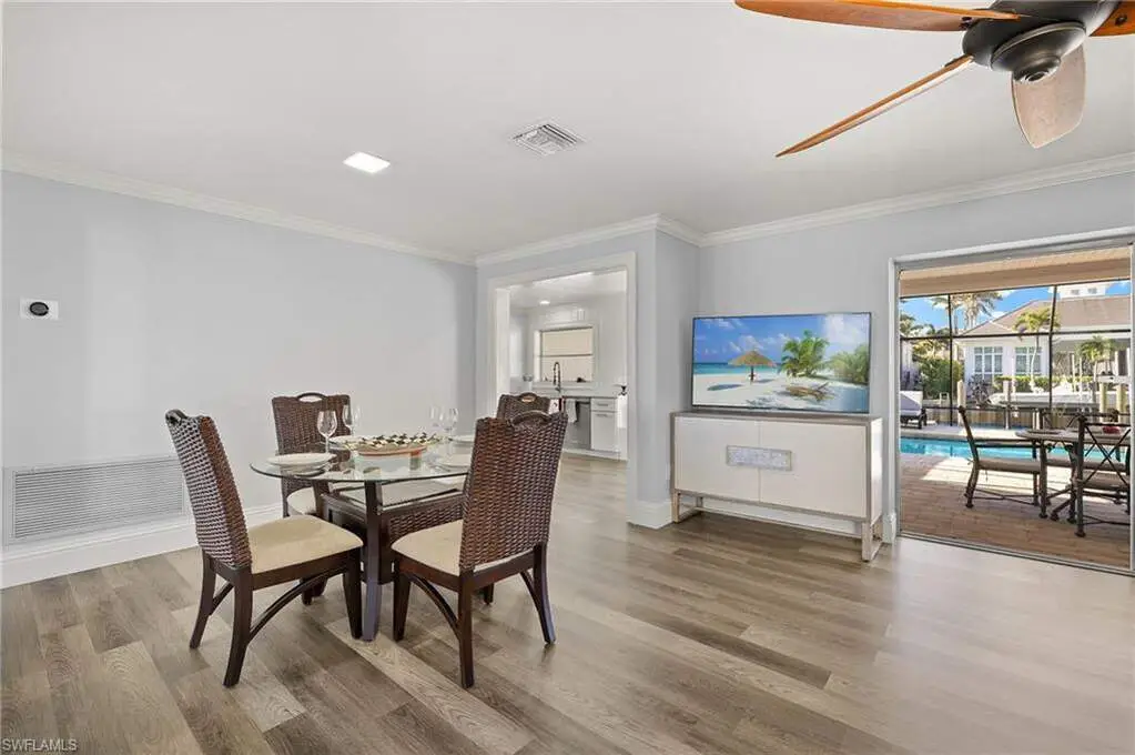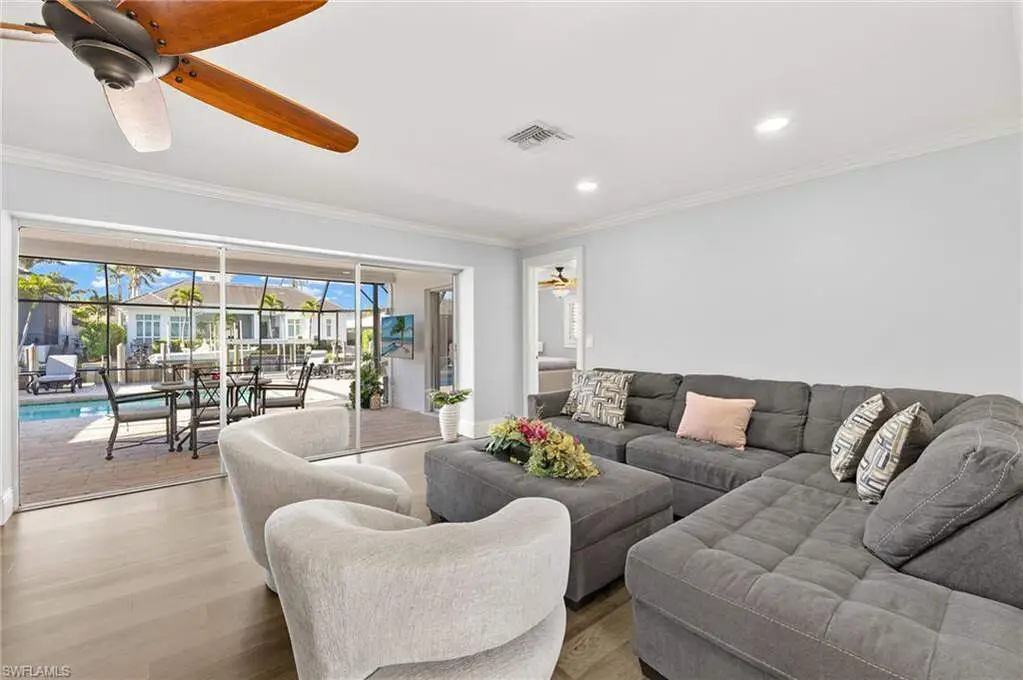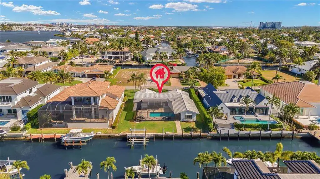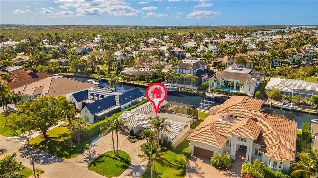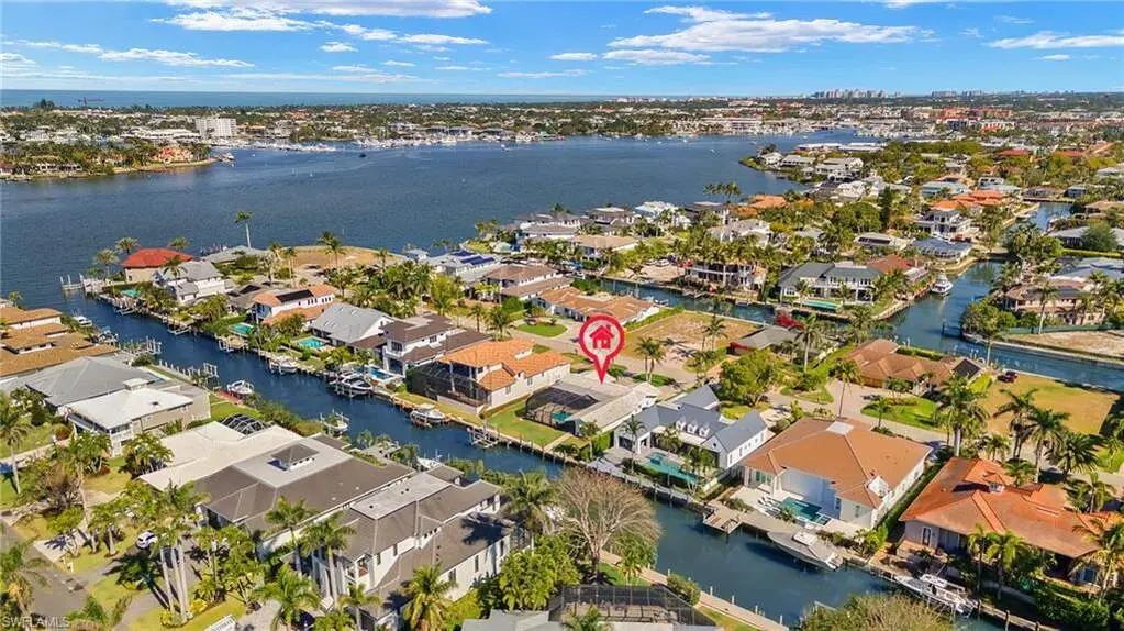 Discover your perfect oasis in this prime Marlin Drive location, just six lots from the beautiful Naples Bay. With a sun-drenched pool and highly coveted south-facing exposure, this property offers a luxurious and relaxing lifestyle. 15,000 on lift! Situated on a low-traffic street with easy access to Naples Bay, this home has been thoroughly updated in 2021 with a host of modern amenities. Upgrades include a new electrical panel, new AC unit, all new electric fixtures and switch plates, a fully renovated kitchen with stylish quartz countertops, induction flat surface stove top, new double oven and high-end appliances, including a large washer and dryer. Enjoy the convenience of new plumbing, a new hot water heater, fresh paint, crown molding, and custom wall woodwork including bead board ceilings. The property boasts a striking paver circular driveway and spacious outdoor living area with paver pool deck. The heated pool was resurfaced, with coping/edging and vibrant colored lighting. Boaters will love the quick, no-bridge access to the Gulf of Mexico, and the dock features new pilings, and new lift as of 2021. The interior of the property features modern design and decor throughout with beautiful white quartz countertops, modern white cabinetry, stainless appliances, and an open floor from the interior living to the outdoor living space Enjoy partial Bay views and marvel at sunsets or fireworks from Naples Pier during the Fourth of July. This is one of the last opportunities on Marlin Drive to own a south-facing lot with potential to build your dream home in the future. Ideally located just minutes from downtown 5th Avenue South and 3rd Street South's fine dining, world-class shopping, entertainment, and white sand beaches, this home offers the best of Naples living. Don't miss this chance to own a slice of paradise!