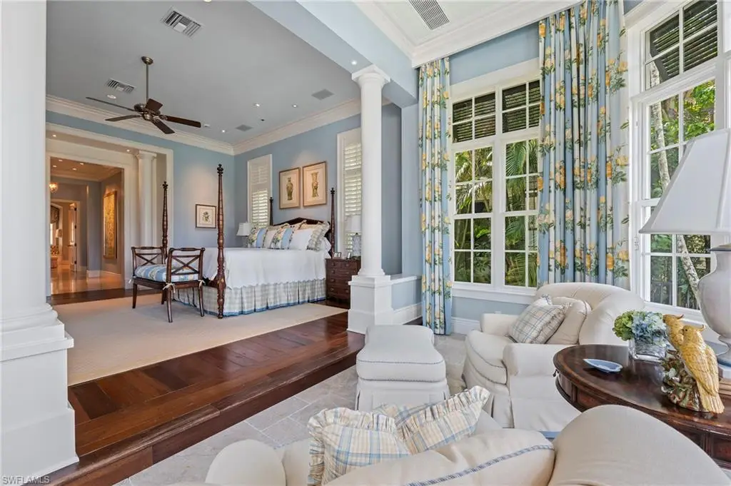 This incomparable, classic home in the Estuary at Grey Oaks is a work of art. Boasting over 8,100 square feet of luxury living space, it was meticulously designed and built for the current owners with artisan level millwork and detail. A deep veranda spans the front of the house along the drive court and delivers you the elegant entry hall. The atmosphere is that pervades is one of absolute quality and elegance. Inside, your gaze is immediately drawn through the French doors to the broad rear veranda, the infinity edge pool, lake and fairway beyond. The main hall leads you to the bar area and then into the enormous chef's kitchen fitted with custom cabinetry, Wolf, Sub-Zero and Miele appliances. A massive, light-filled pantry flanks the kitchen. In the adjacent family room, two entire walls of glass disappear creating an enormous entertaining space with the lanai for true indoor-outdoor living. On the lanai is a large outdoor kitchen and bar and beyond that is a luxurious guest cabana and bath. The opposite end of the first floor holds a formal study and grand principal suite complete with private sitting area and morning kitchen. Upstairs are three lavish guest suites, a huge media/game room and a deep, covered veranda. Completing the offering is an oversized three-car garage with golf cart space. The grounds are highlighted with lush landscaping and lighting. 1437 Nighthawk Point simply has to be experienced. It is being sold completely furnished with minor exclusions.