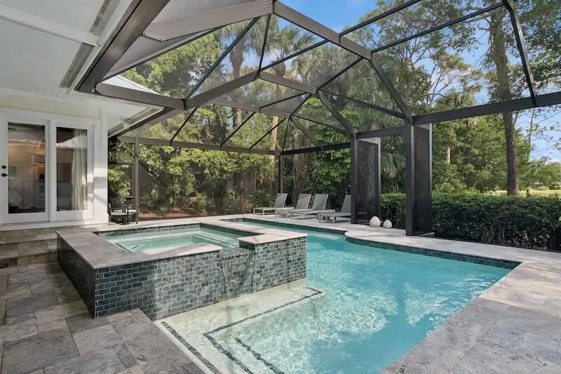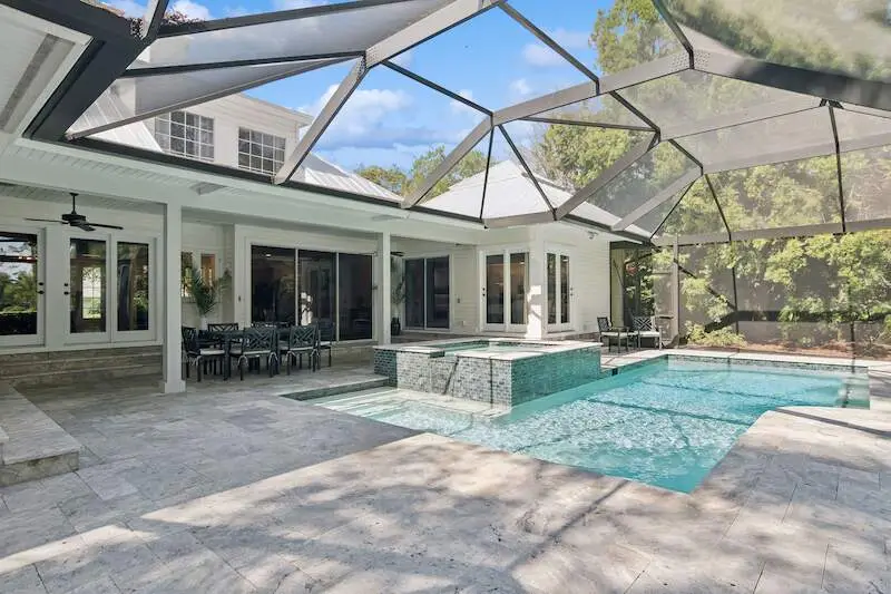 Beautifully remodeled 4 bed plus den home on a large lake front lot ....enjoy privacy & lovely lake views with this pool & spa home....large patio area ...with new structural cage. .....Remodeled baths and kitchen, vaulted ceiling, New roof. Fantastic western skyline sunset views. Private lot, in-town location across from Grey Oaks. Low HOA fees. No hi Club fees....Guard gated. Must see to appreciate. Make sure to see the drone pictures.