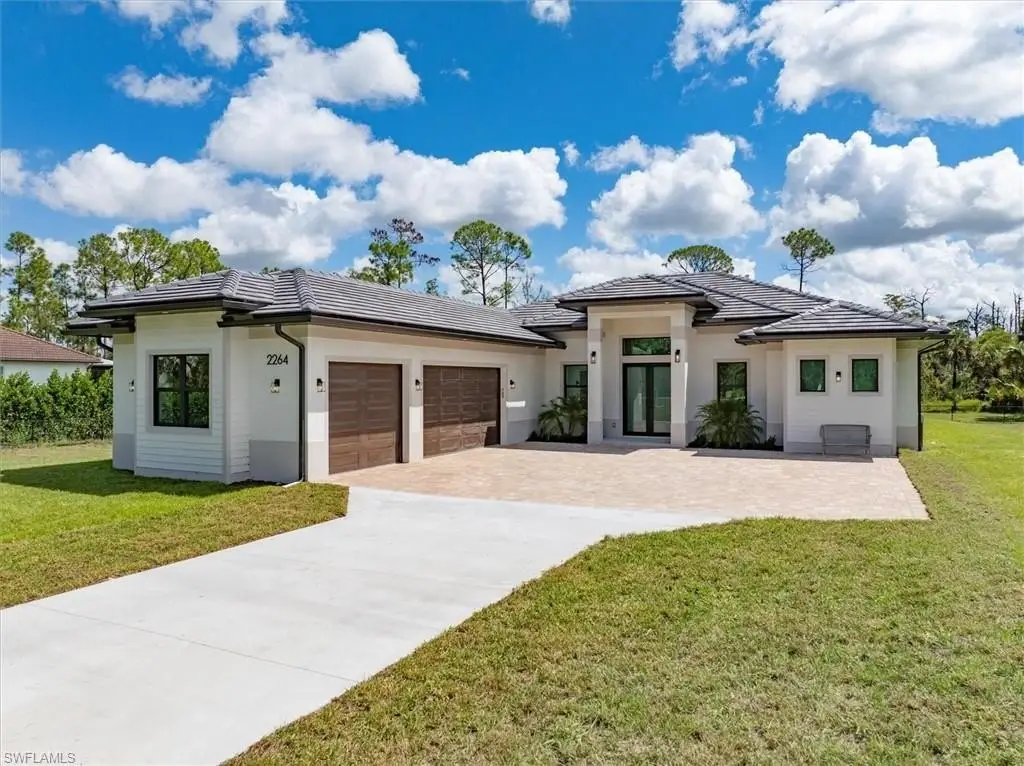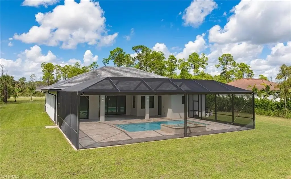 Welcome to 2264 Wilson Blvd N – New Construction 2025 Experience modern luxury and comfort in this brand-new 4-bedroom + den, 3-bath home set on an upland 2.34-acre lot in one of Naples’ most sought-after locations. Offering 3,663 sq. ft. total (2,500 sq. ft. under air), this residence combines elegant design, premium finishes and thoughtful upgrades throughout. Property Highlights: whole-home reverse osmosis system for pure water everywhere, sparkling heated pool & spa with panoramic screen enclosure, concrete driveway with paver front entry and pool deck, oversized 3-car garage with epoxy floors, custom outdoor kitchen, perfect for entertaining, two-level exterior lighting for ambiance and security, 7-zone irrigation system for lush landscaping, energy-efficient LED lighting throughout, sleek custom glass shower enclosures, spacious dual-tone modern kitchen with island, wrap-around quartz countertops & stainless steel appliances and much more. The property is fenced,designer fence and gate for the front are being permitted and will be installed within the selling price. All this with no HOA and plenty of space to expand (guest home, workshop, etc.). Located on Wilson Blvd N, this home offers quick access to top-rated schools, shopping, dining, and the world-renowned Naples beaches. Don’t miss the chance to own this 2025 new-build, where luxury, functionality and location come together seamlessly.