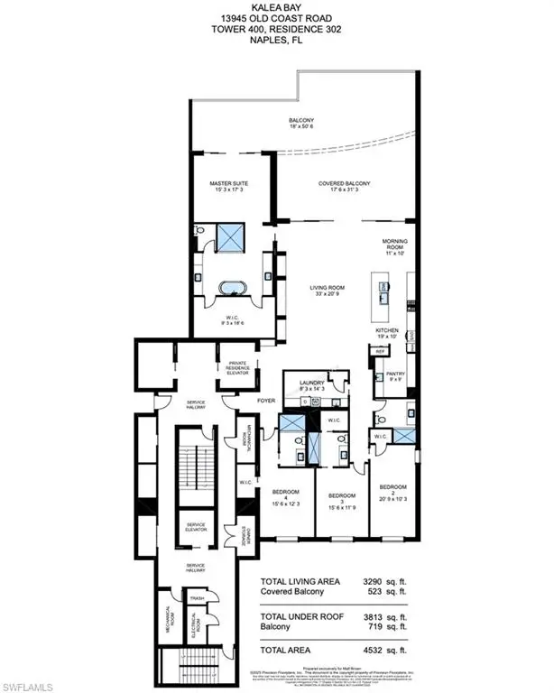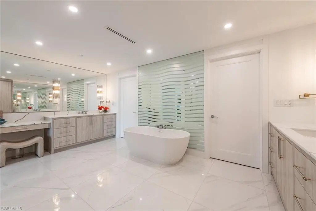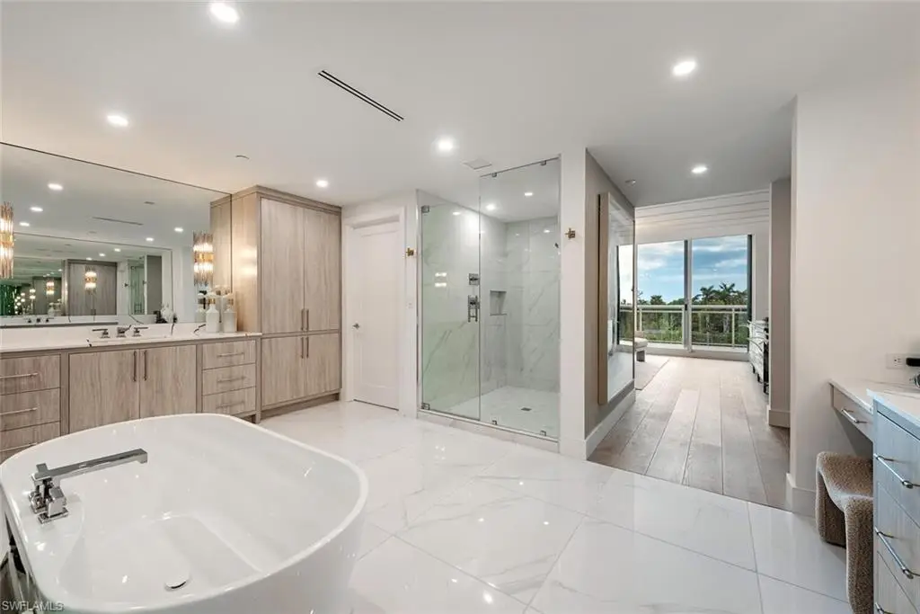 Welcome home to unit 302 in Tower 400, recently completed and beautifully finished, this Kalea Bay residence provides all the conveniences of living in a brand-new luxury condominium and a 5-star amenities center, a combination that has made Kalea Bay one of the most successful and desirable communities in Naples. This residence features a wall of sliding glass doors leading to a unique expansive extended terrace totaling 1,242 square feet including 523 square feet of covered outdoor living plus 719 square feet of open balcony area. The interior of the unit lives like a single-family home with 3,290 square feet of living space including 4 bedrooms and 4 full bathrooms including spectacular primary suite with a massive custom closet. Highlights include stunning wall decor throughout plus impressive built-in units in the great room and the media room including back-lit wall panels that can be dimmed for movies. The lighting fixtures are fabulous and eye catching as you enter the home and accentuate the finishes including wide plank oak wood floors, custom cabinetry and designer touches throughout the home. The open gourmet kitchen features a Wolf gas cooktop and wall ovens, Sub-Zero refrigerator and full height wine cooler and a butlerÆs pantry with ample storage. The building features a rooftop terrace with a pool and spectacular sweeping views, an open-air fitness center, BBQ grills and an open-air lounge all ideal spots to take in stunning sunsets. Tower 400 is located directly across from the Club at Kalea Bay and provides easy access to 80,000 square feet of exceptional modern amenities, including a wellness center with a state-of-the art gym, spin room, Pilates, spa services plus 3 resort style pools, 2 open-air poolside bars, fine and casual dining options, outdoor fire pits, a kidsÆ game room, 8 pickleball and 4 tennis courts, guest cottages and more. Kalea Bay Residents also have the option to join the annual Beach Card Program, based on availability, which grants access to the private Beach Club at Moraya Bay at Vanderbilt Beach for dining both indoor and outdoor as well as beach service including food, beverages, chairs and umbrellas.