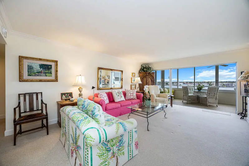 Discover Harborside West, where coastal charm meets modern comfort! This spacious three bedroom, 2.5 bathroom condominium encompasses over 1,700 square feet of living space with breathtaking views of Venetian Bay. Step inside to an expansive living room and glass-enclosed lanai, both showcasing stunning postcard-worthy views of the sparkling bay. The bright galley-style kitchen has been thoughtfully updated with modern cabinetry, countertops, appliances, and tiled flooring. The residence features two primary suites, each with en-suite baths and generous closet space, while the versatile third bedroom can serve as a guest room, home office, or den. The lanai, with stackable glass windows, offers year-round enjoyment-perfect for relaxing while watching boats glide by or dolphins play. For added comfort and ease, this unit includes an attached garage and a private storage closet! Convenient beach access is located just across the street, making coastal living a breeze. Residents of Harborside West enjoy a host of amenities, including a recently renovated social room, fitness center, hobby room, library, barbecue and picnic areas, fishing pier, resort-style pool, and ample storage facilities. The community also provides bike storage, a vehicle wash area, and sidewalks for leisurely strolls. Located in the sought-after Moorings neighborhood, this condo is steps away from Naples' pristine beaches and just moments from upscale shopping and dining at Venetian Village. Embrace the best of Florida living in this move-in-ready residence!